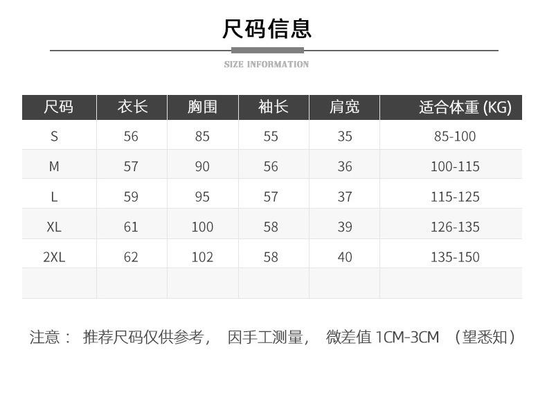 S fit for 42.5-50kg, M fit for 50-57.5kg, L fit for 57.5-62.5kg, Xl fit for 62.5-67.5kg, 2xl fit for 67.5-75kg