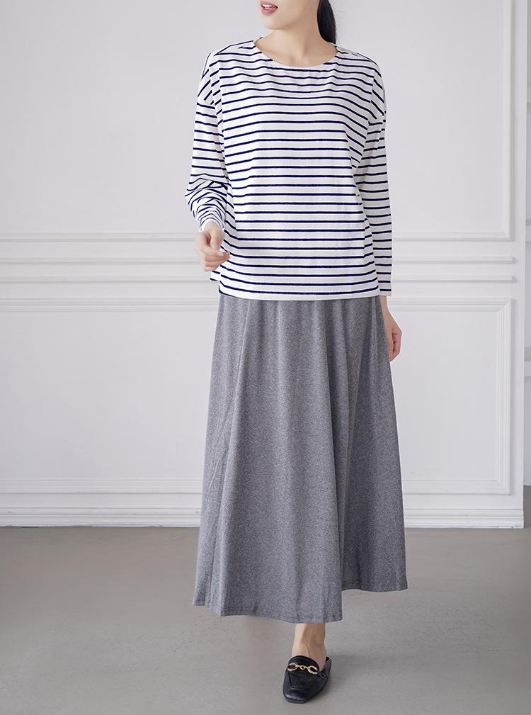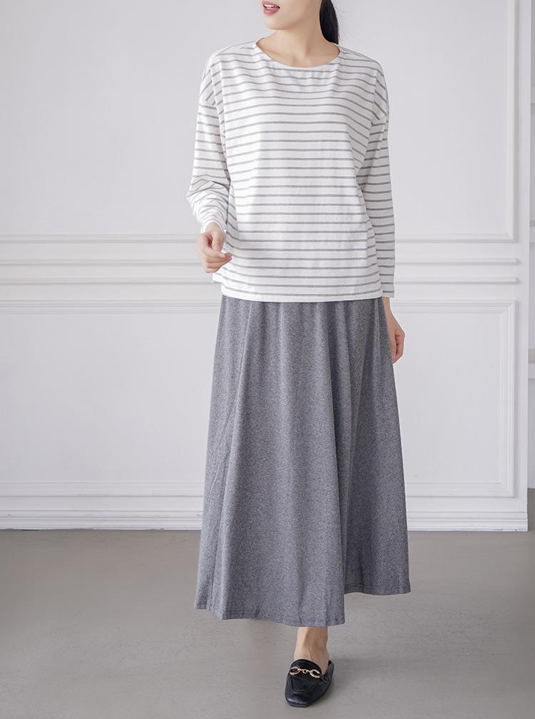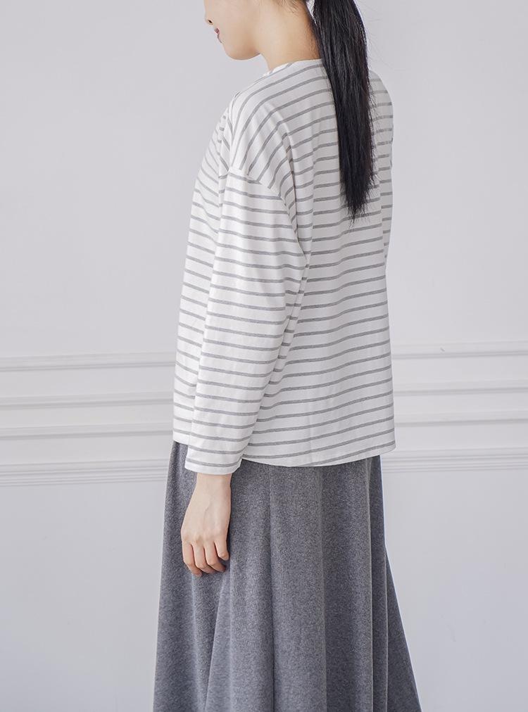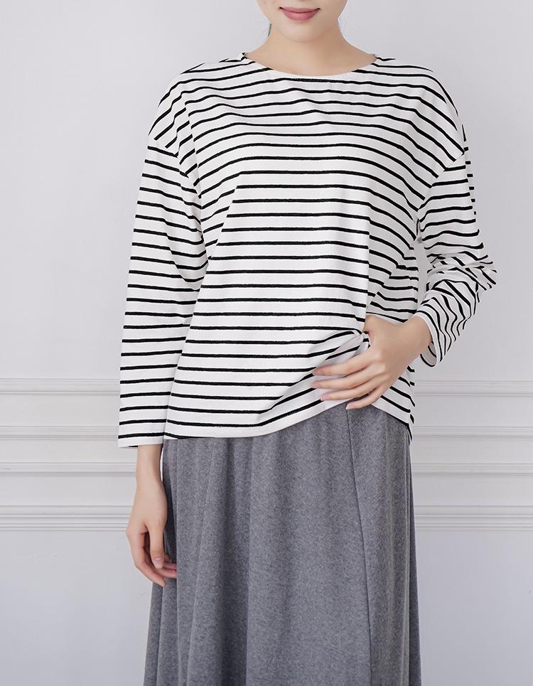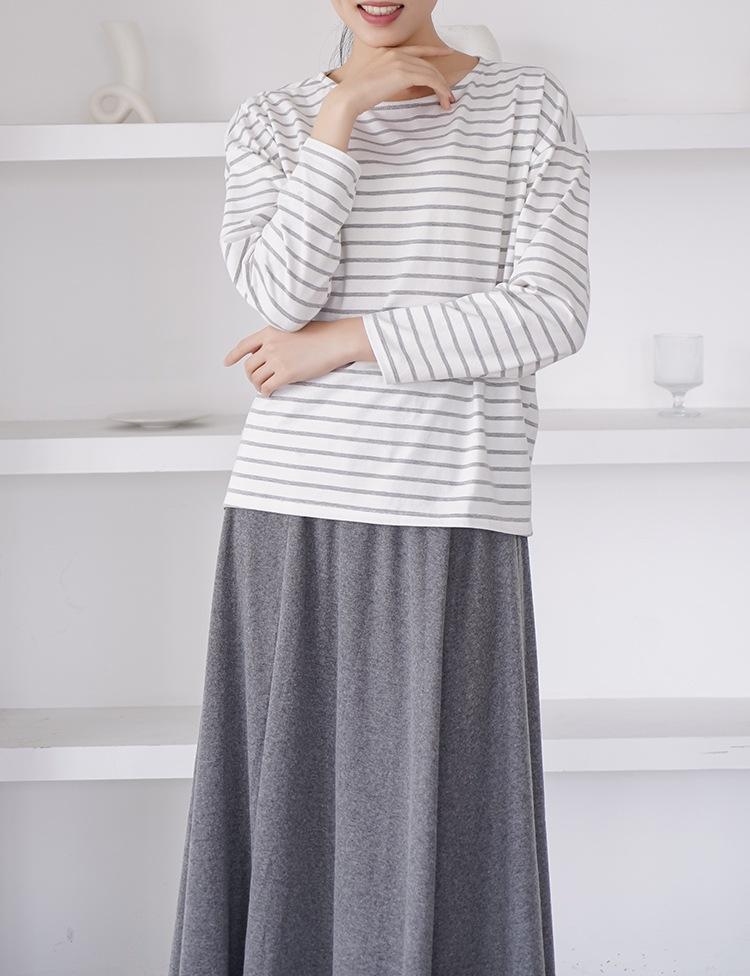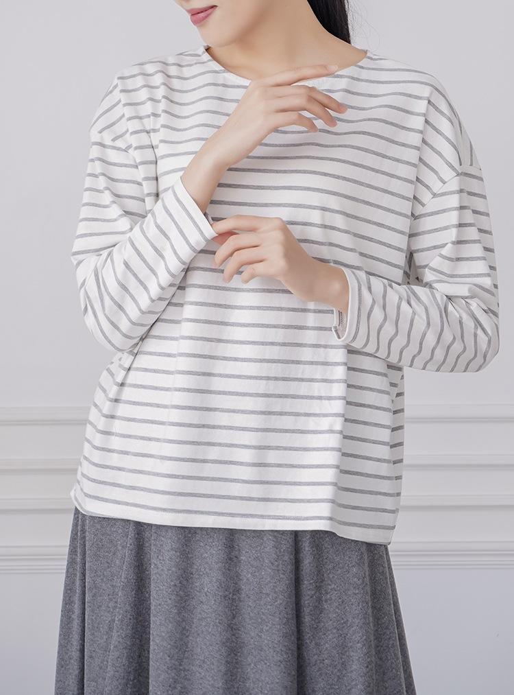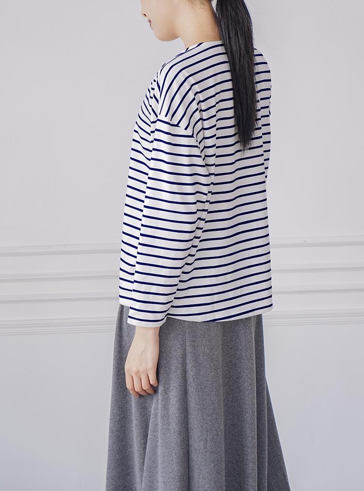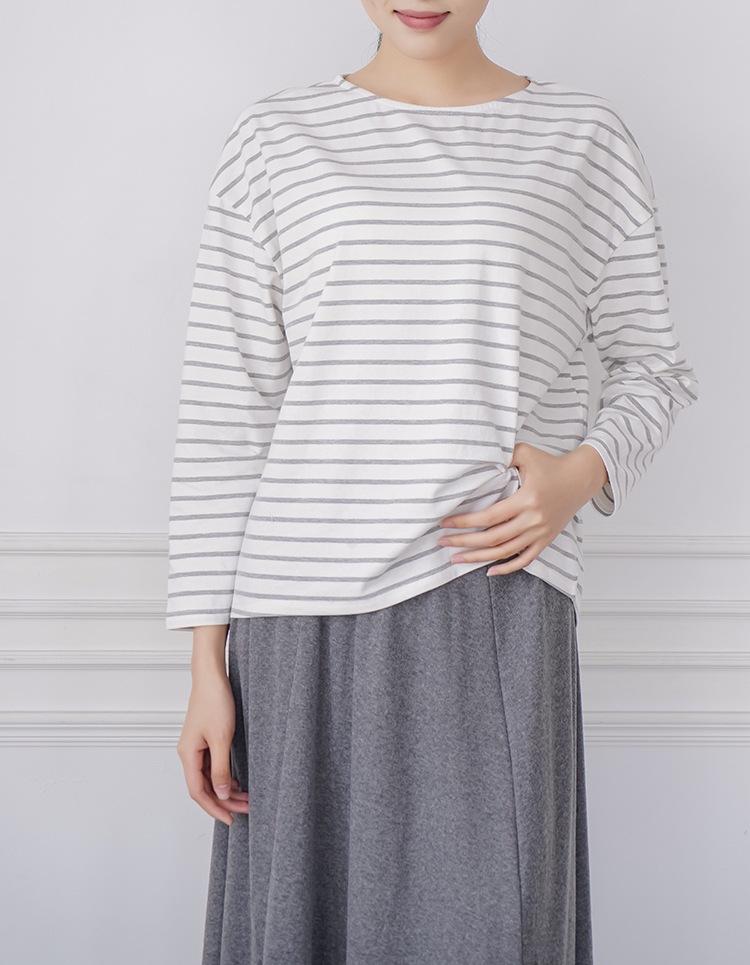 Camiseta japonesa de manga larga a rayas para mujer, jersey sencillo y combinable, cuello redondo holgado, para otoño e invierno.