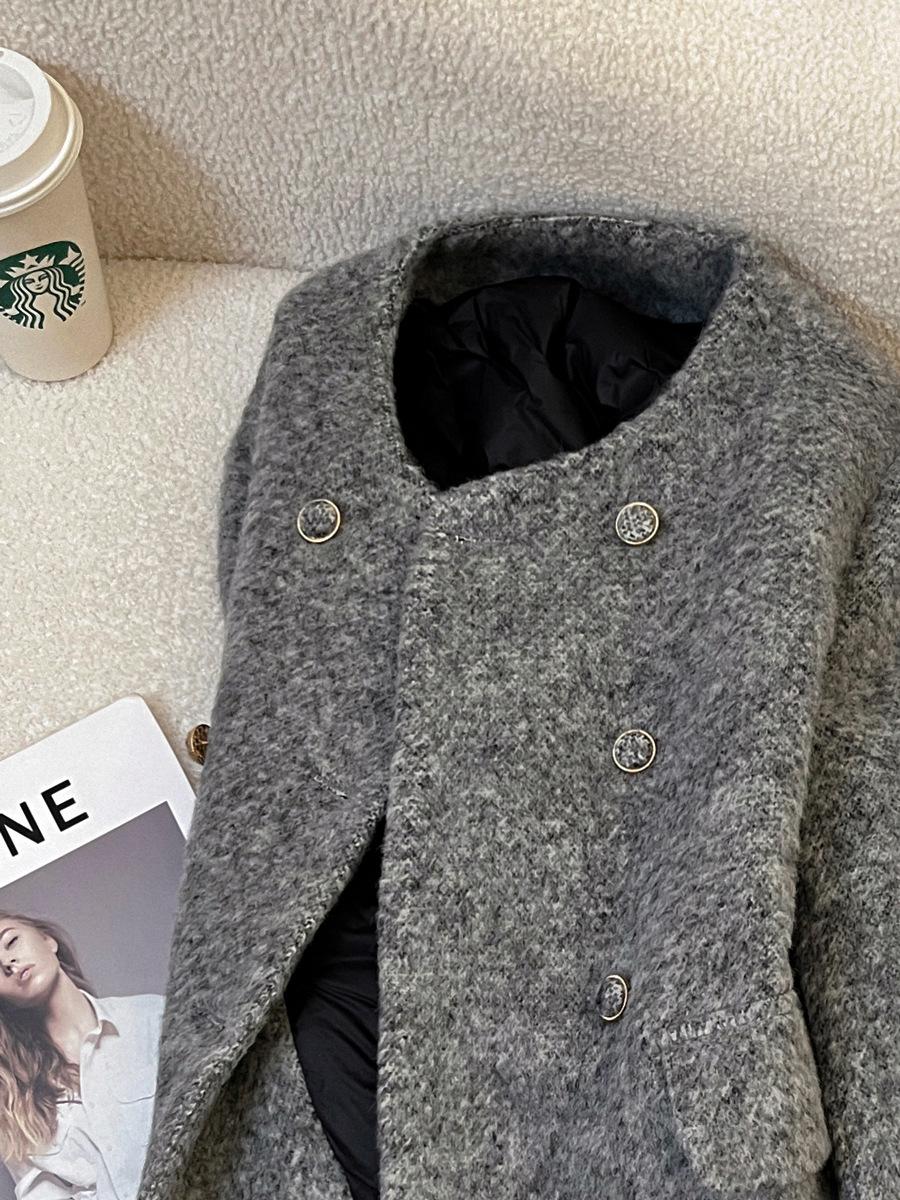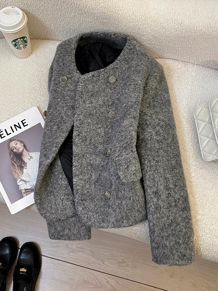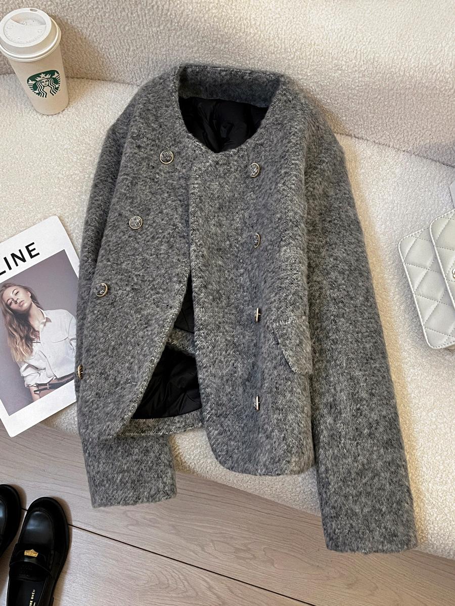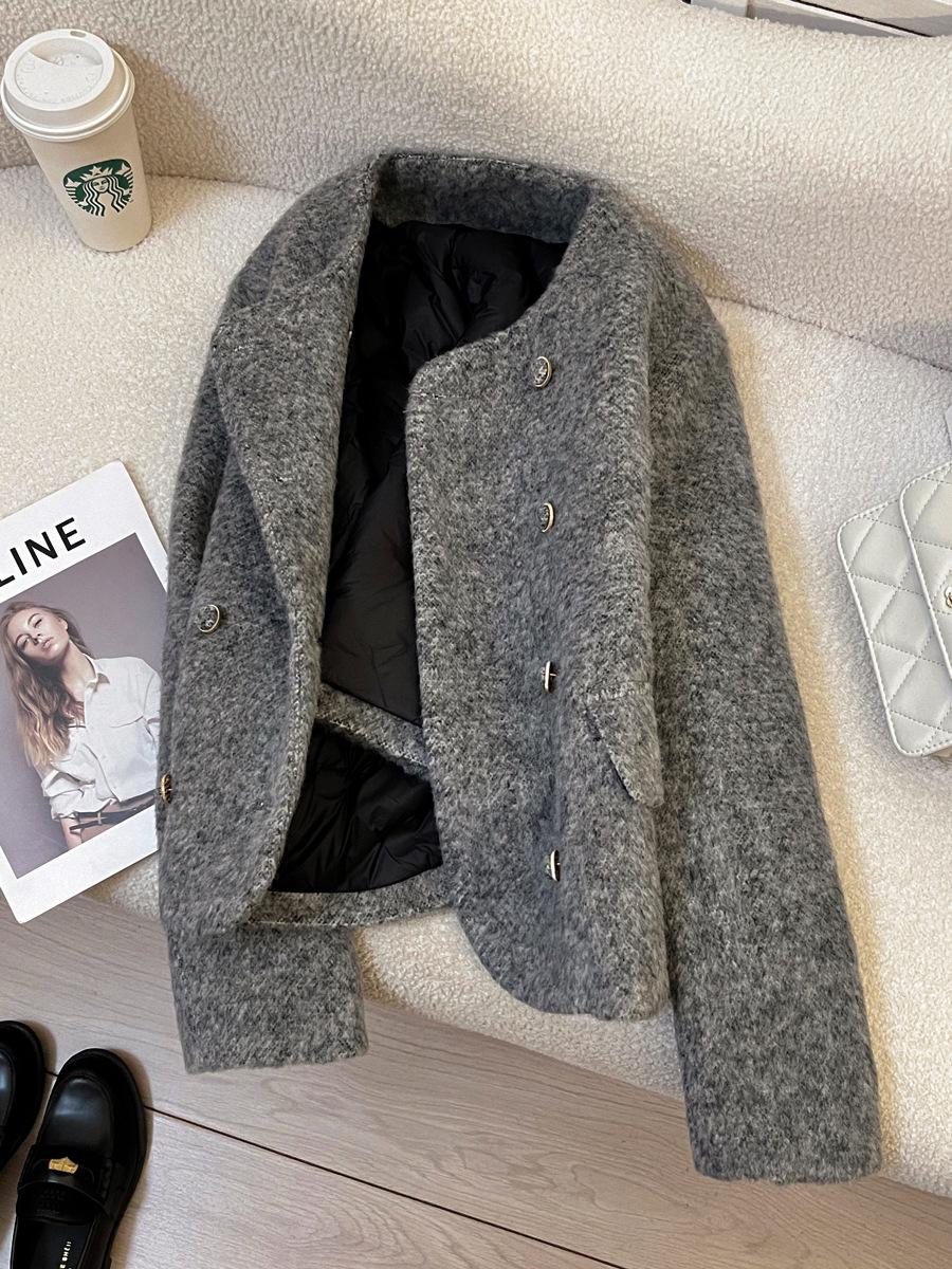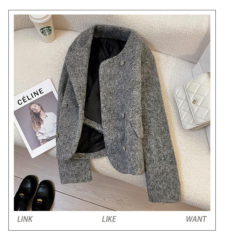 Abrigo corto de lana estilo Chanel con plumón gris para mujer, invierno 2024, nuevo abrigo retro de alta gama y cálido.