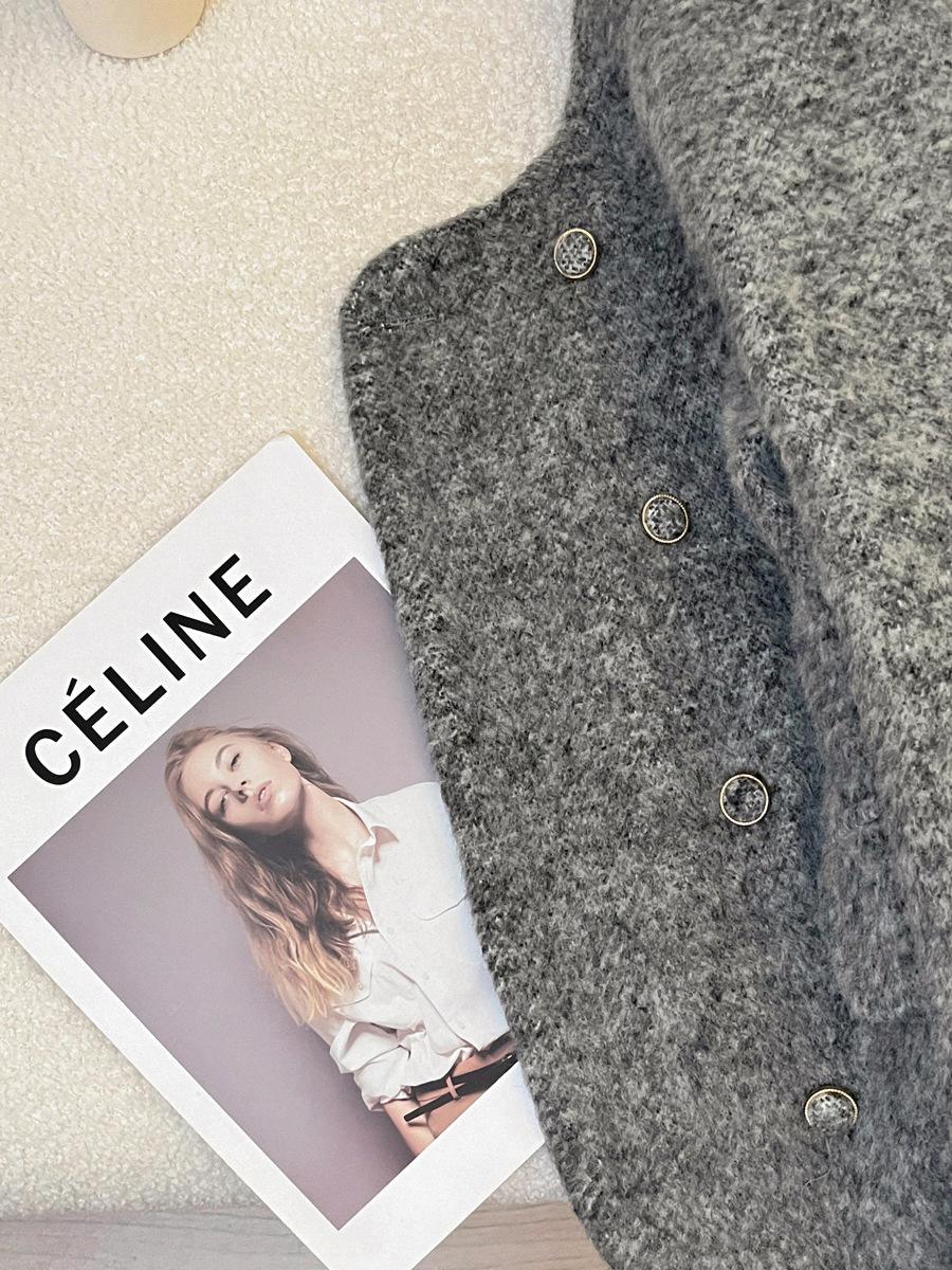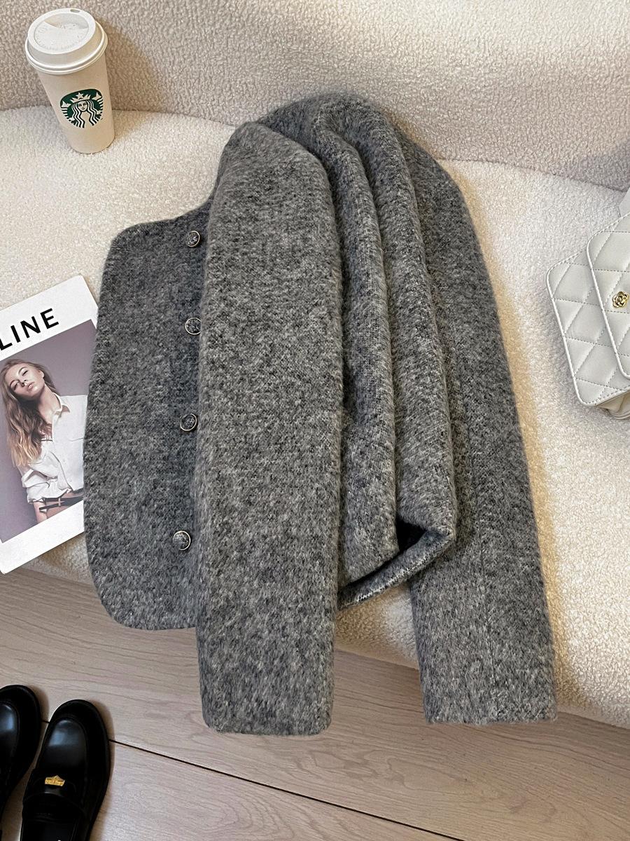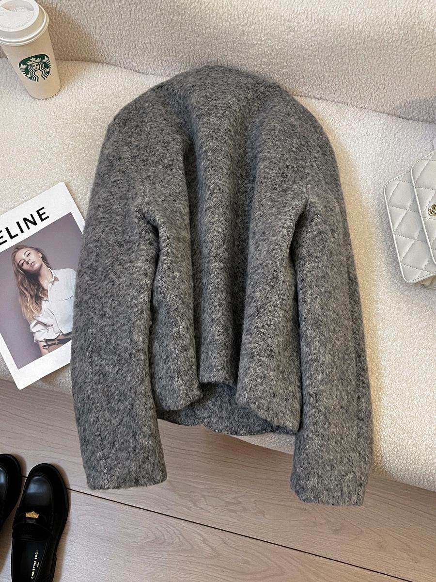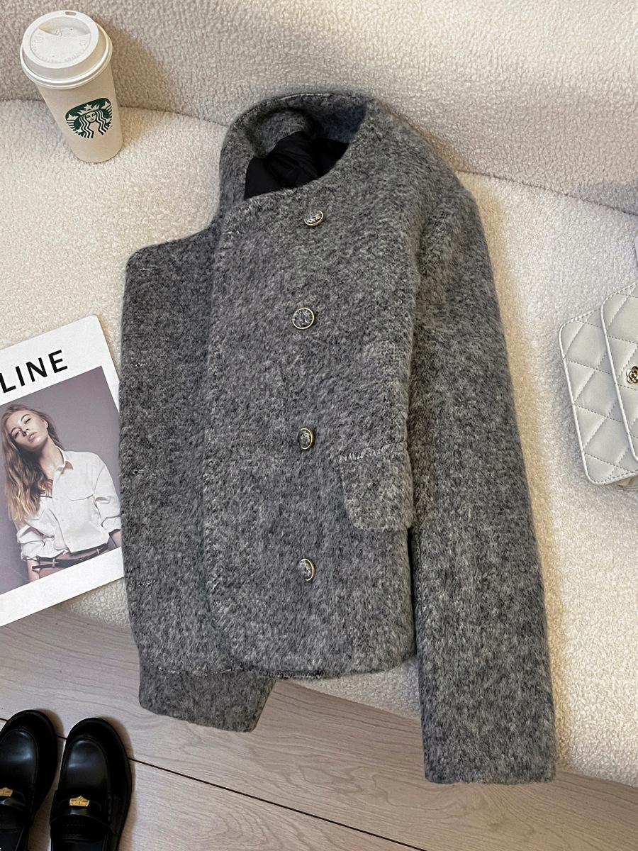 Abrigo corto de lana estilo Chanel con plumón gris para mujer, invierno 2024, nuevo abrigo retro de alta gama y cálido.