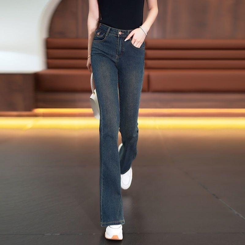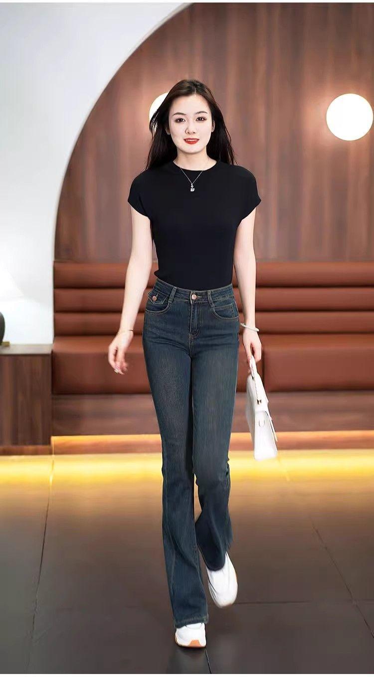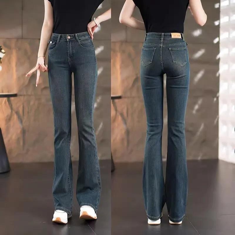 Pantalones vaqueros blancos de cintura alta para mujer, nuevos, elásticos y versátiles, para primavera y otoño.