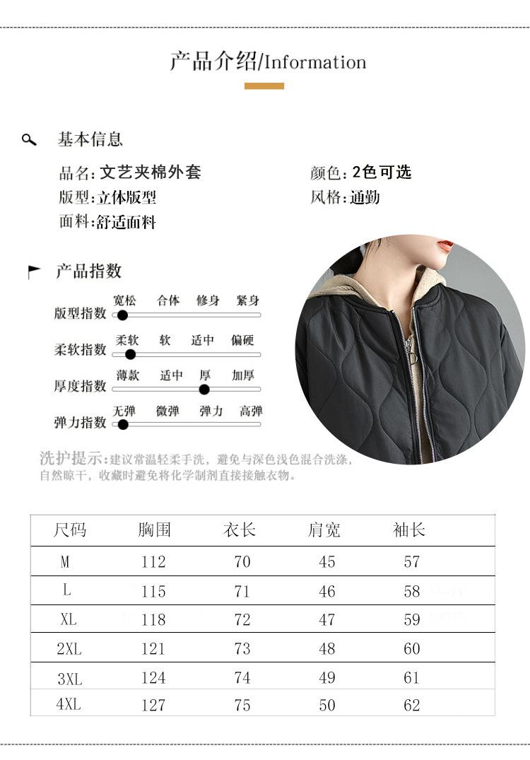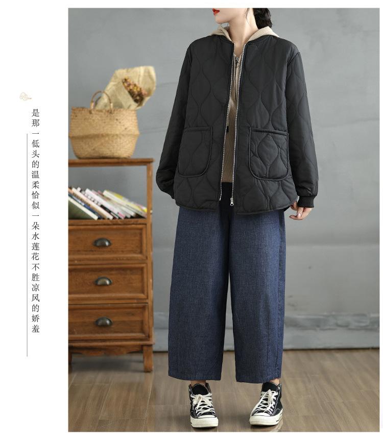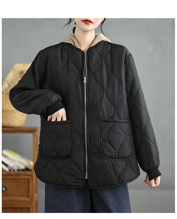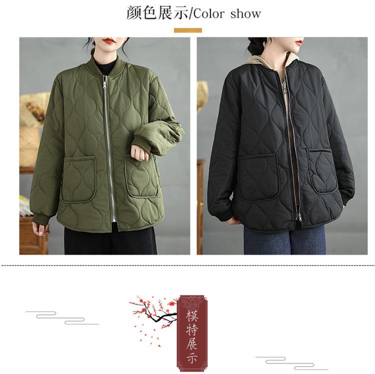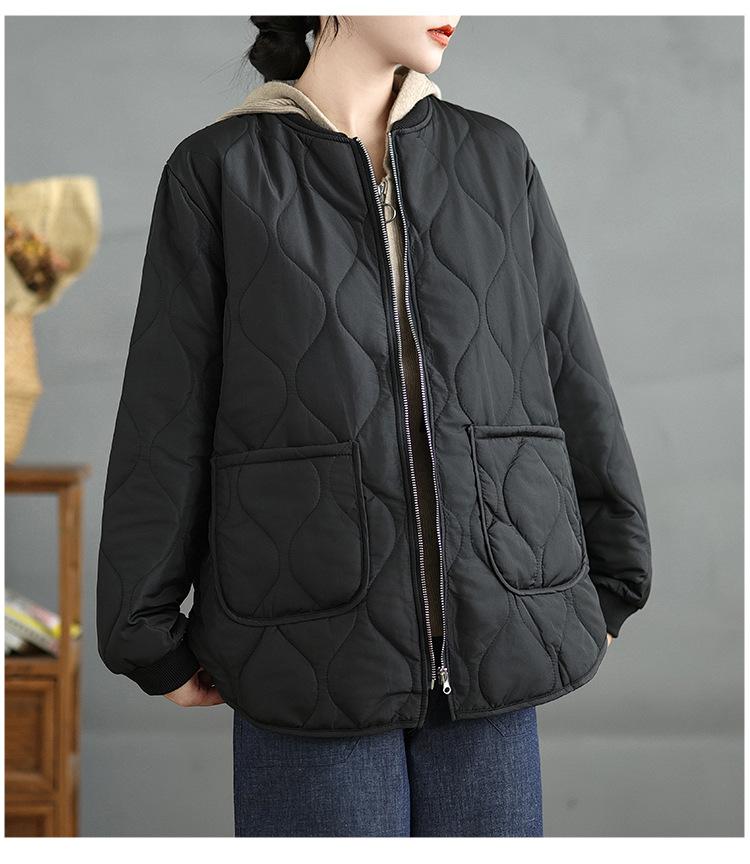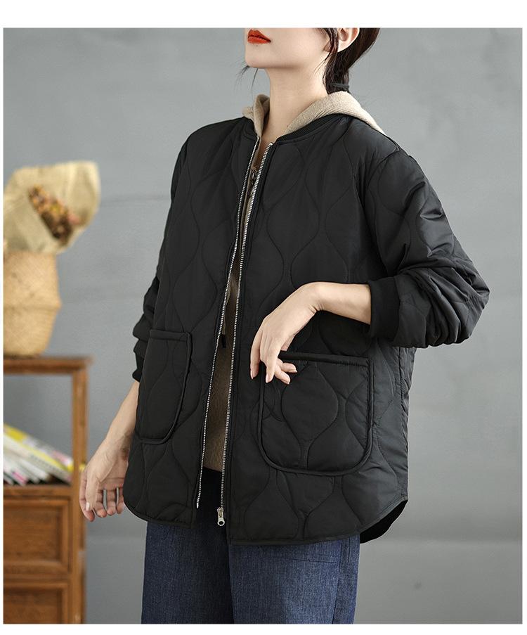 Chica gordita talla grande Suelta Plumón Algodón Corta Ligera Chaqueta Acolchada de Algodón