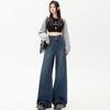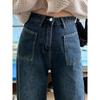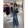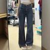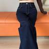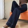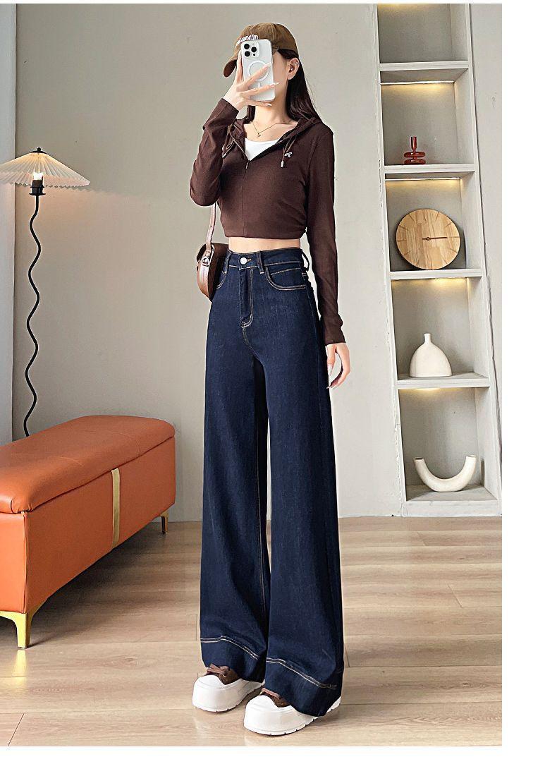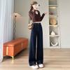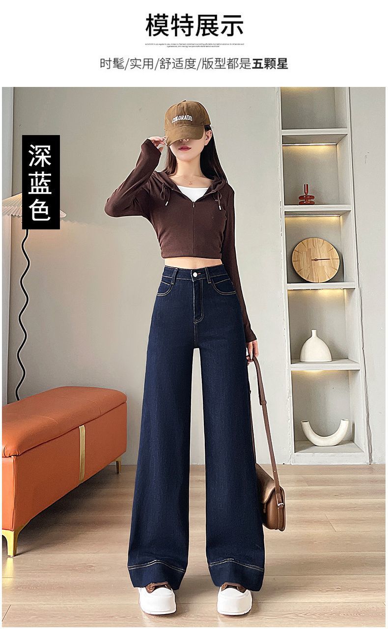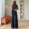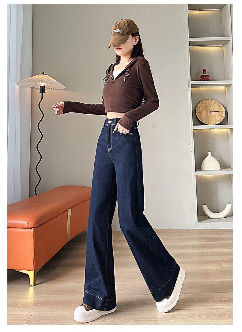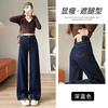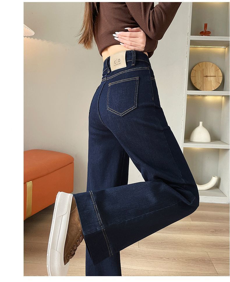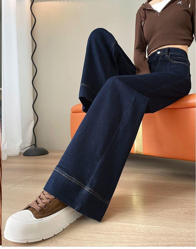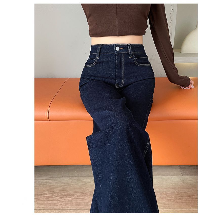 Vaqueros azul oscuro de cintura alta y pierna ancha para mujer, otoño e invierno 2022, nuevos pantalones acampanados ajustados, pantalones holgados con caída