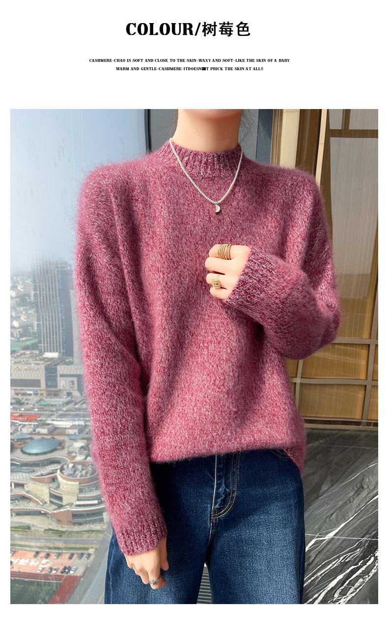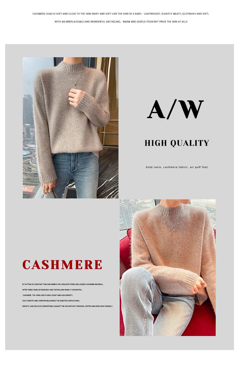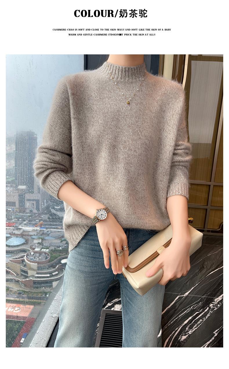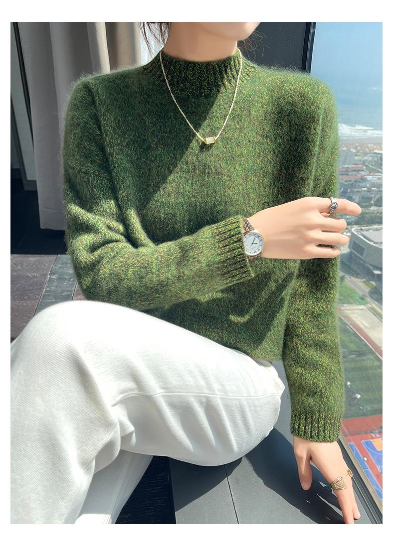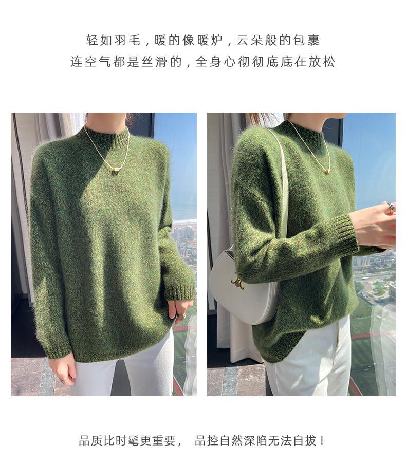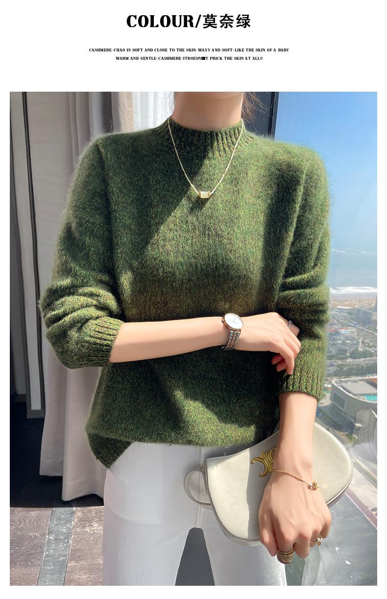 24 Invierno Nuevo Suéter de Cachemira de Montaña Combinable para Mujer Cuello Medio Alto Floral Suéter Holgado Grueso Jersey de Punto Camisa Base