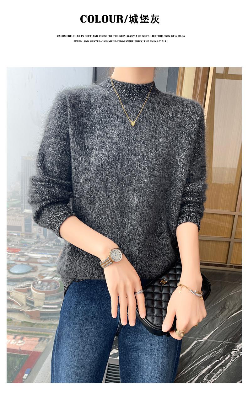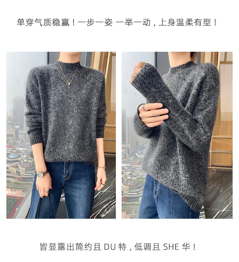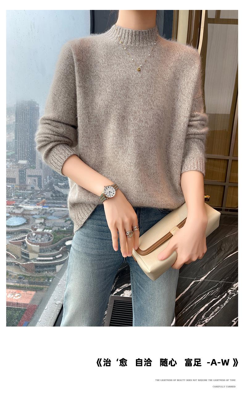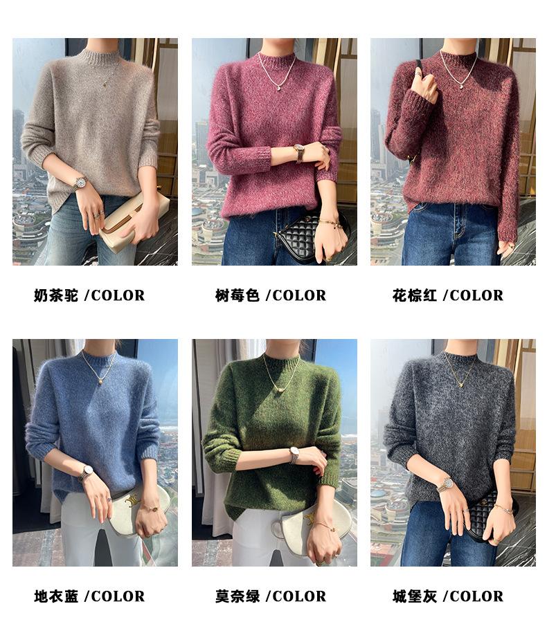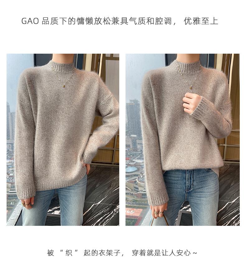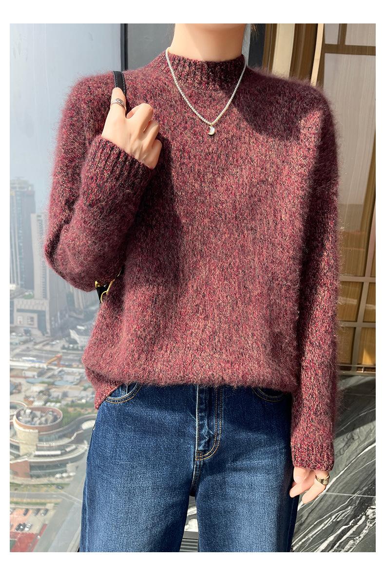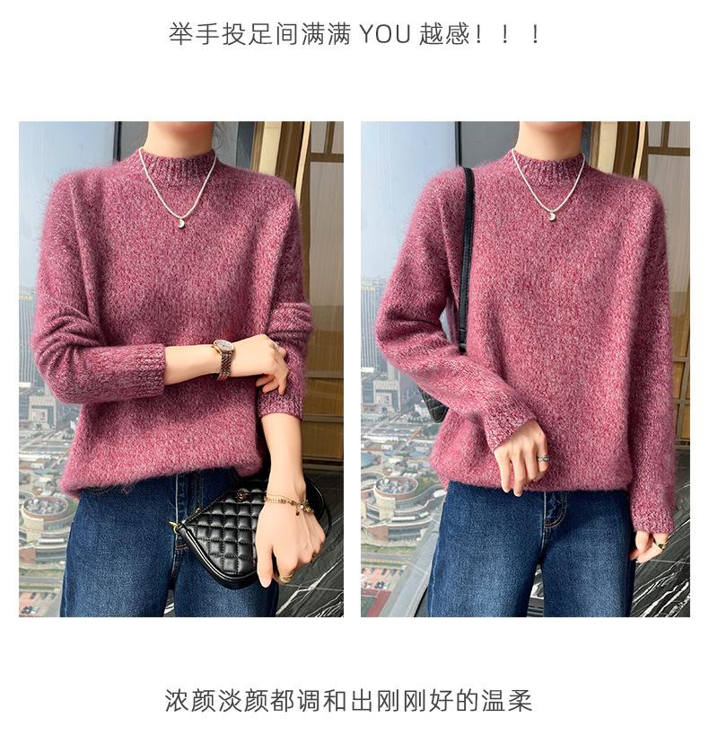 24 Invierno Nuevo Suéter de Cachemira de Montaña Combinable para Mujer Cuello Medio Alto Floral Suéter Holgado Grueso Jersey de Punto Camisa Base