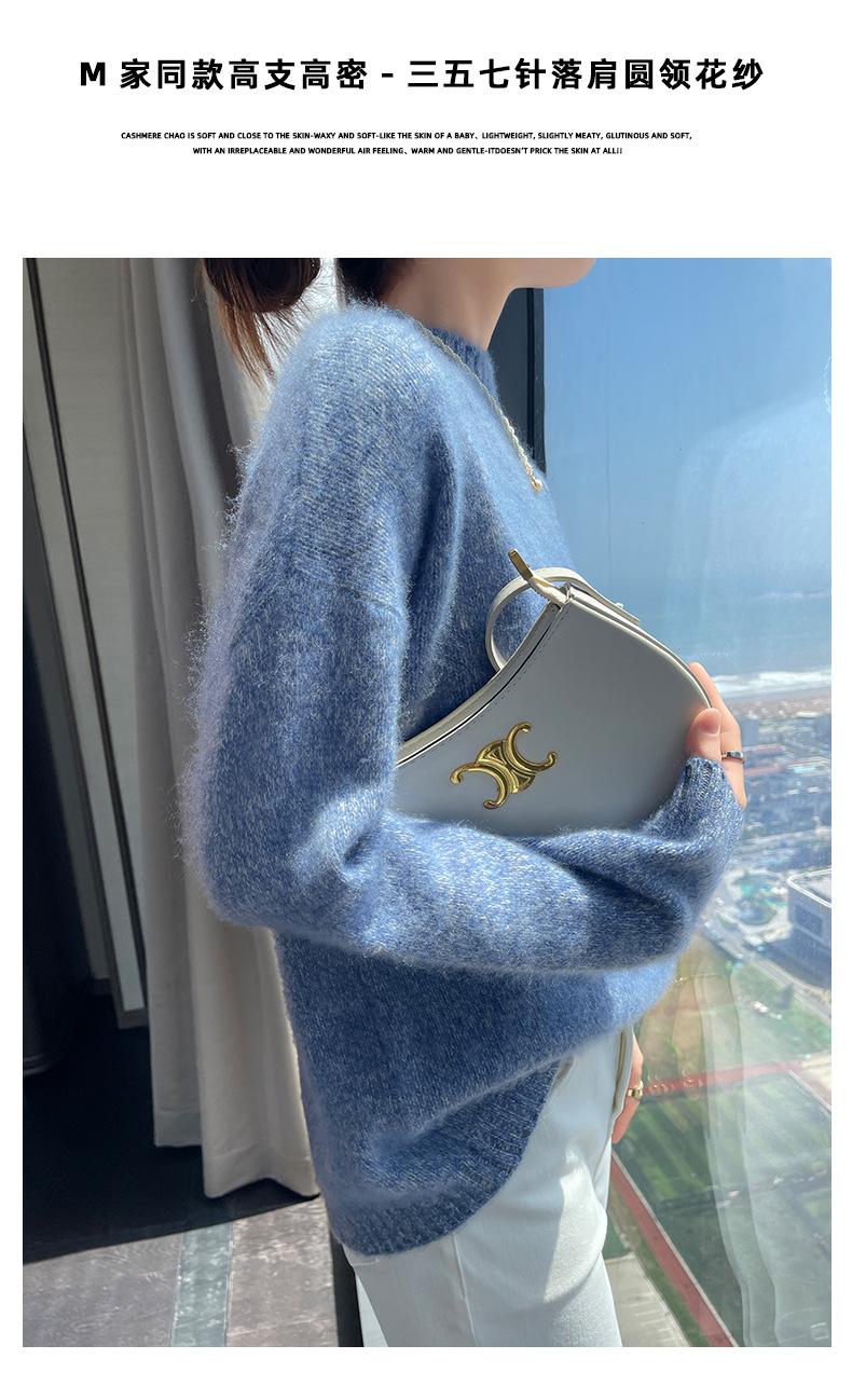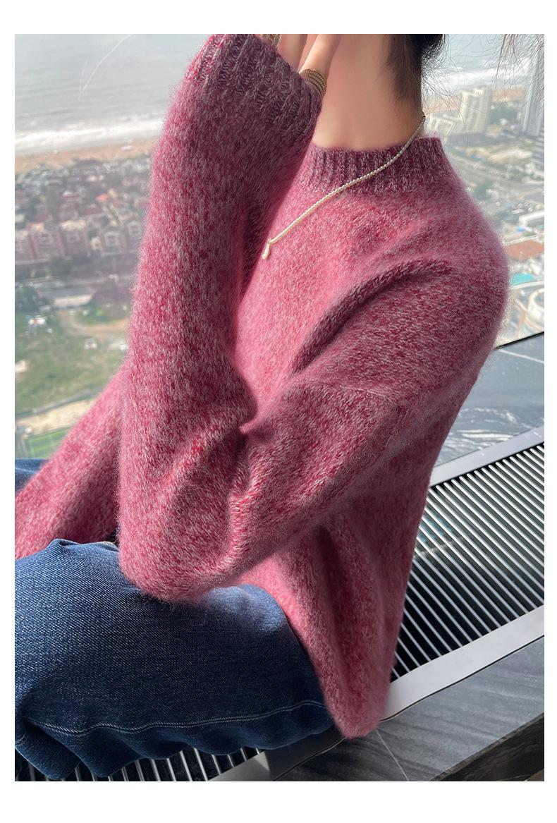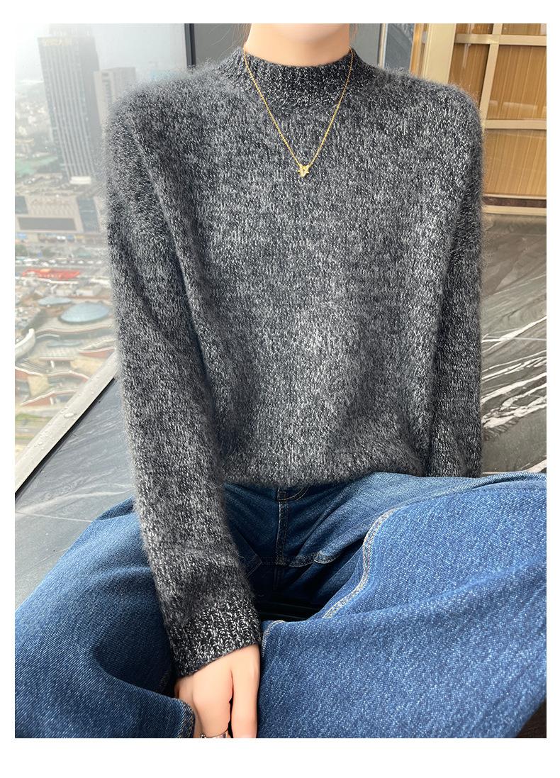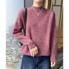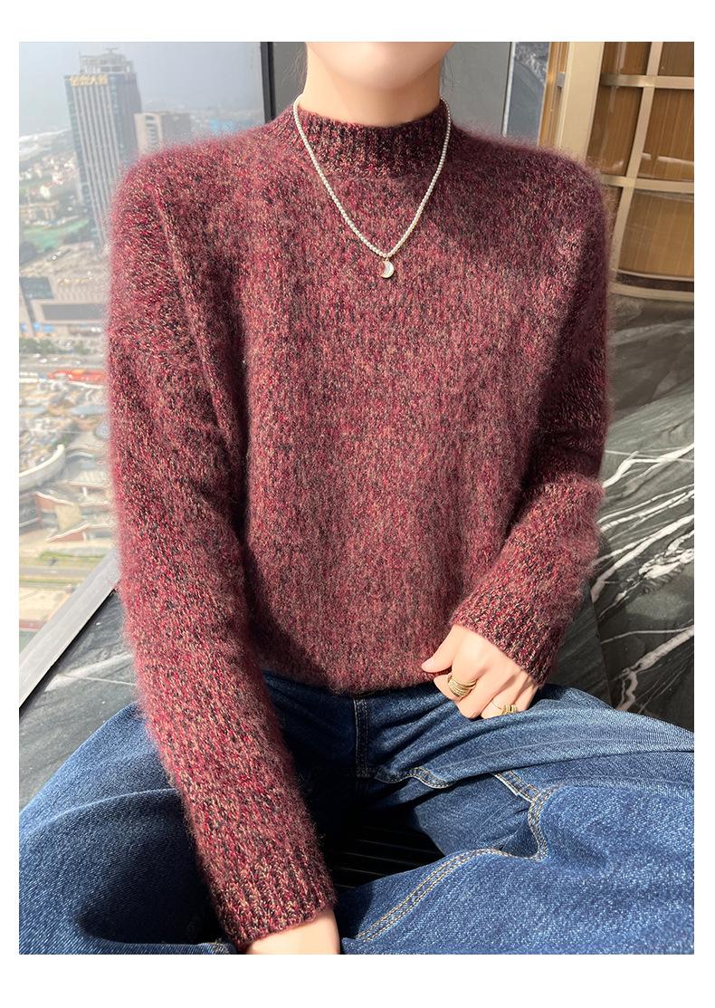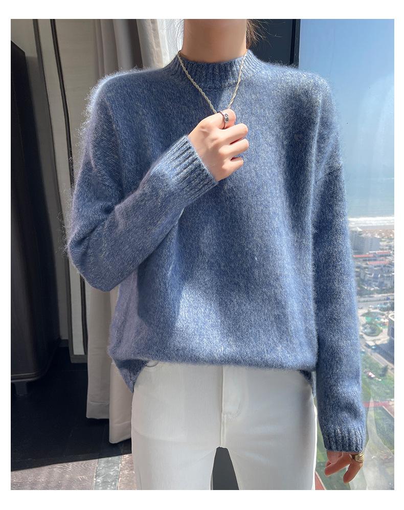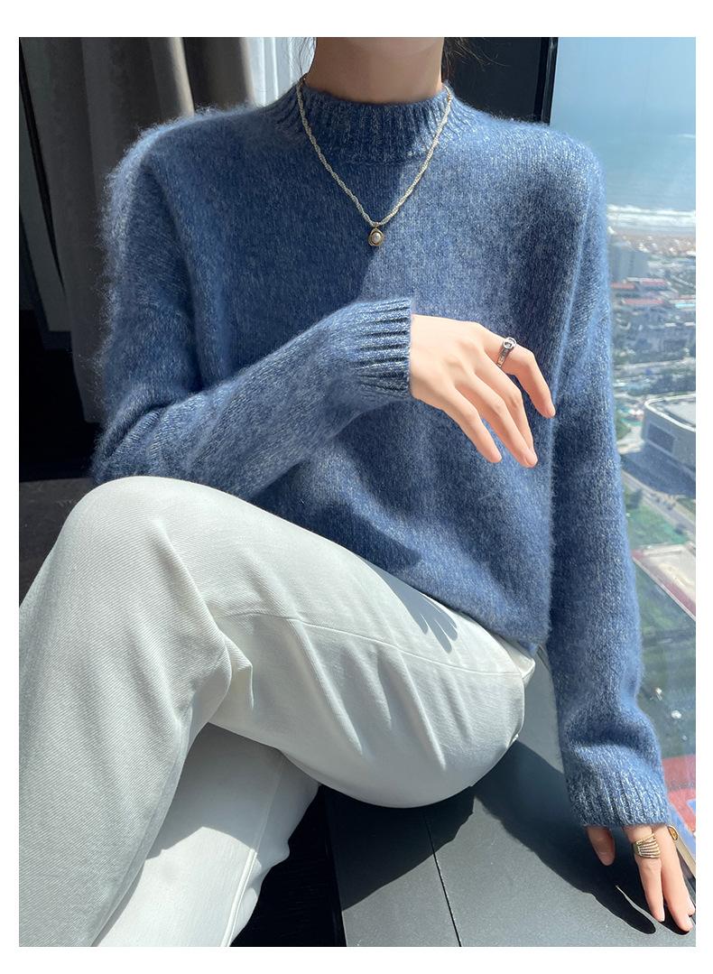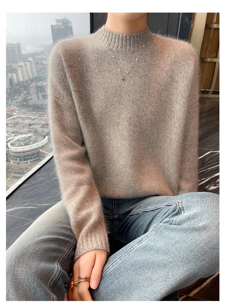 24 Invierno Nuevo Suéter de Cachemira de Montaña Combinable para Mujer Cuello Medio Alto Floral Suéter Holgado Grueso Jersey de Punto Camisa Base