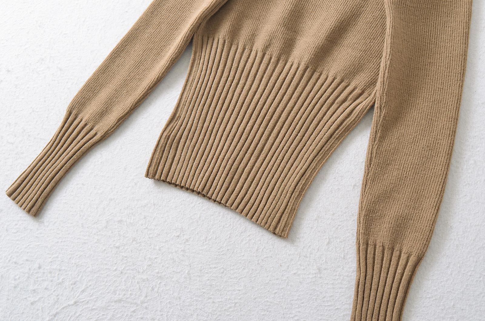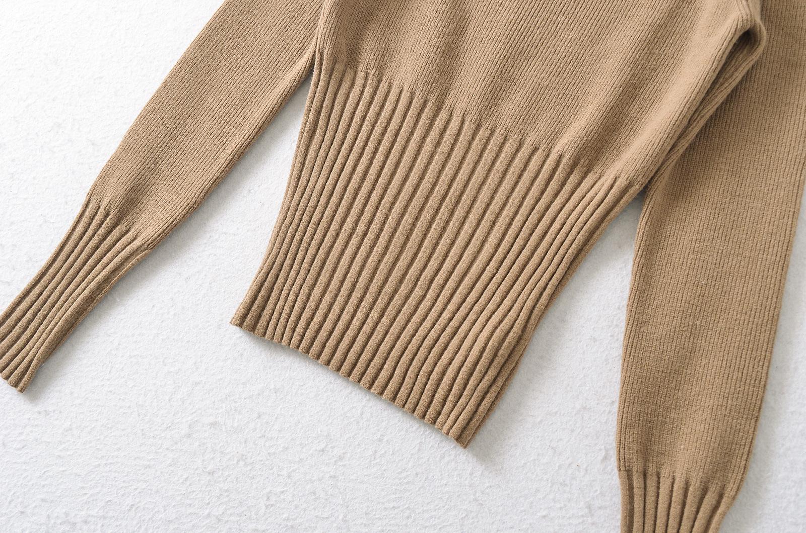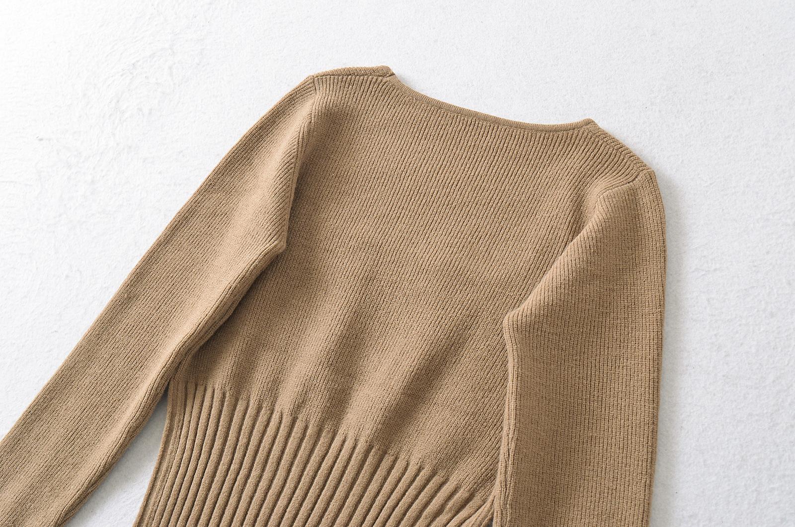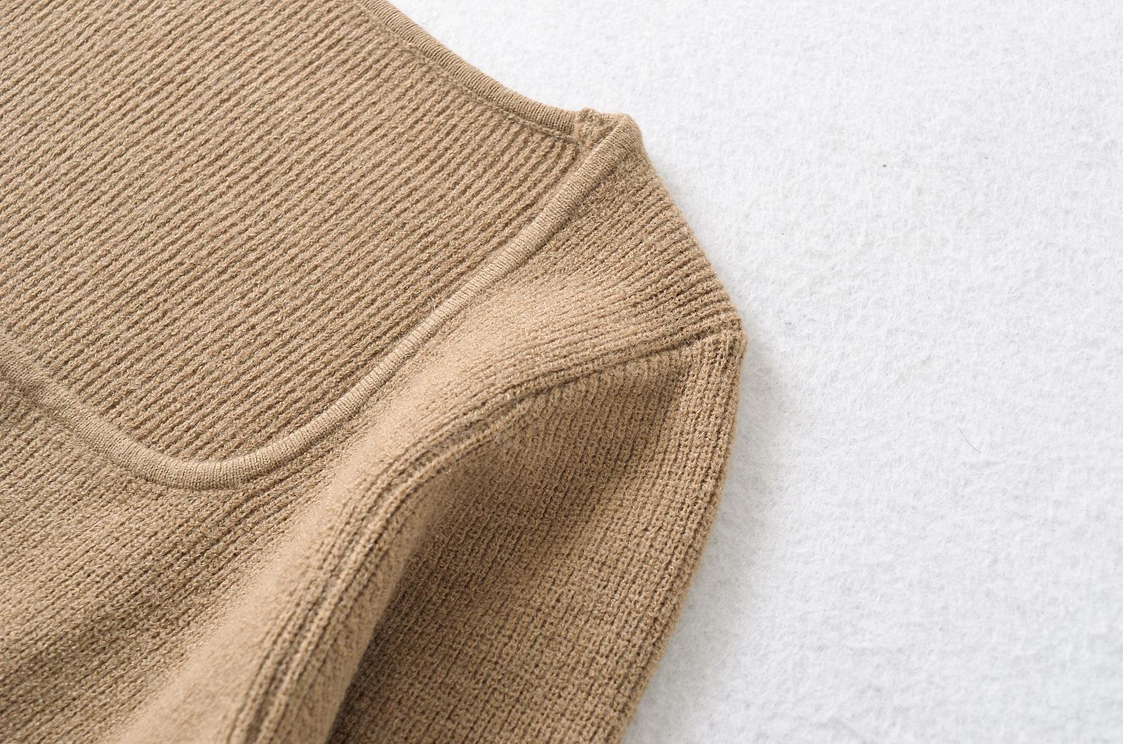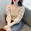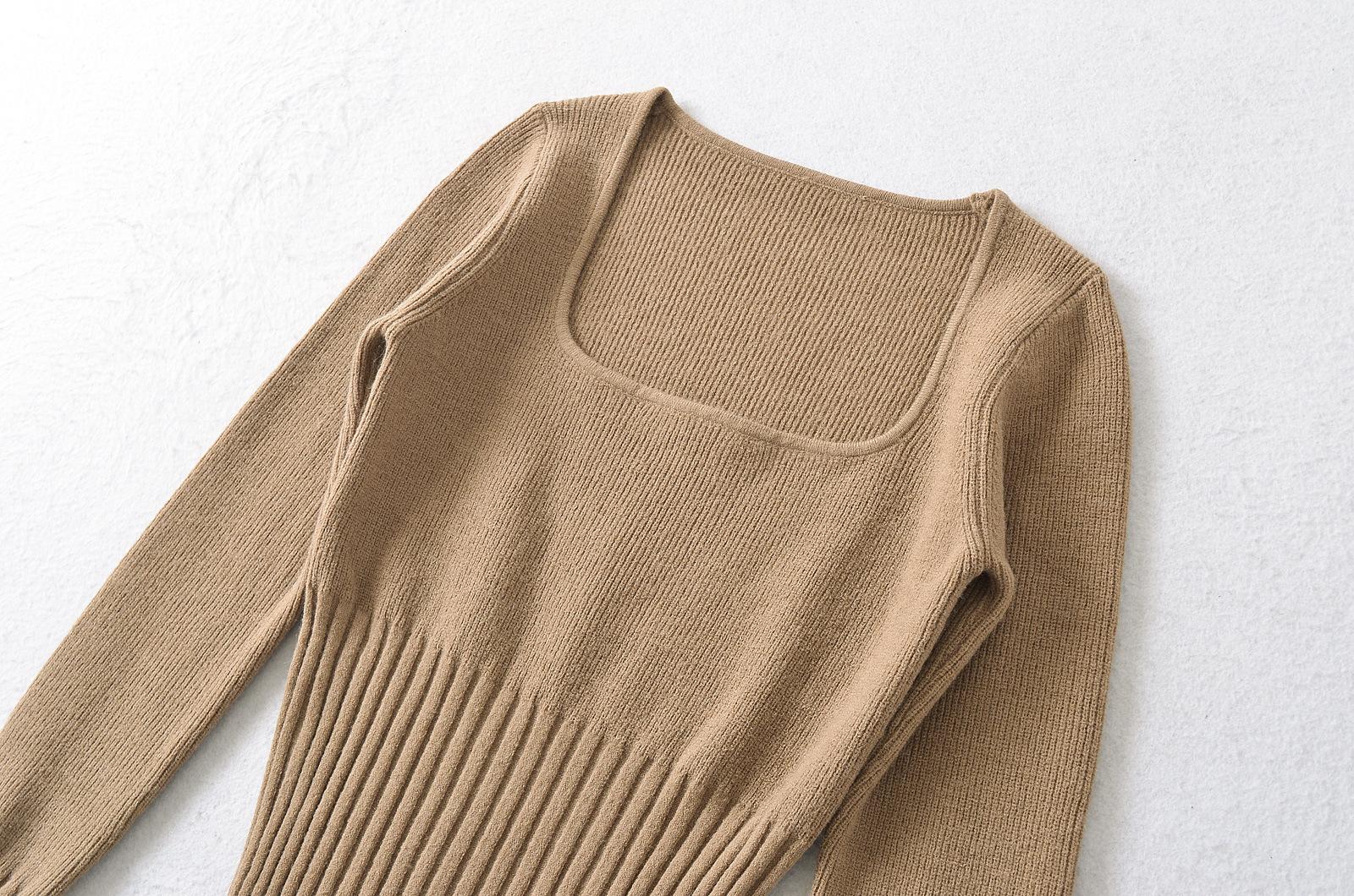 Camiseta elegante de manga larga de punto con cuello cuadrado grande y cintura alta para mujer, estilo francés, 2025, suéter ajustado, ropa para mujer.