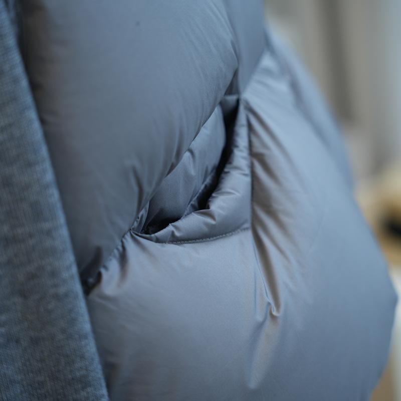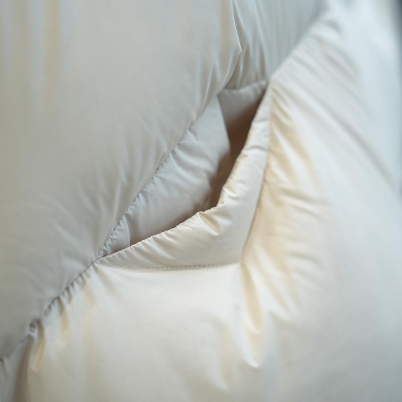 Relleno de plumón de ganso cuidadosamente seleccionado, grandes copos de plumón y pequeños tallos de pluma