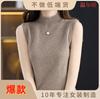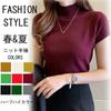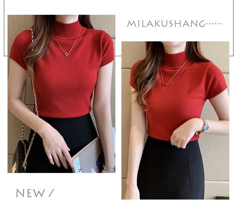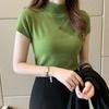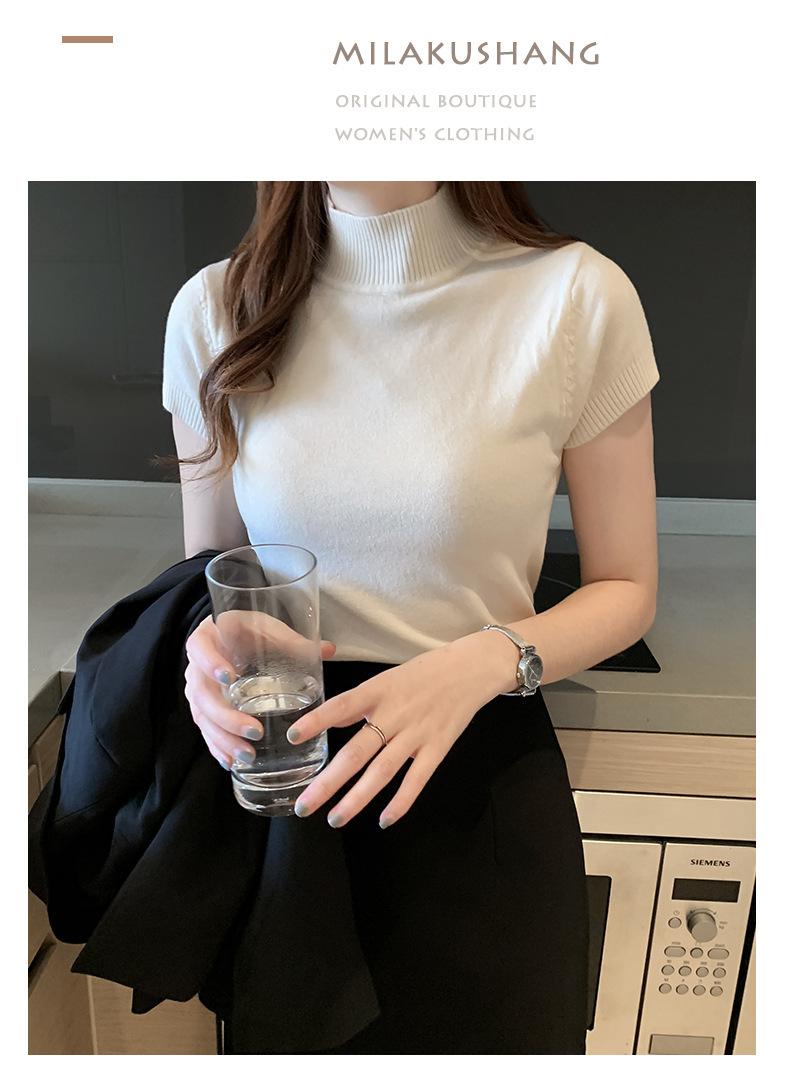 Hilo Core-Spun Primavera, Verano y Otoño Nuevo Camiseta Básica de Cuello Medio Alto para Mujer Manga Corta Tejida Suéter Interior Ajustado Chaleco Top