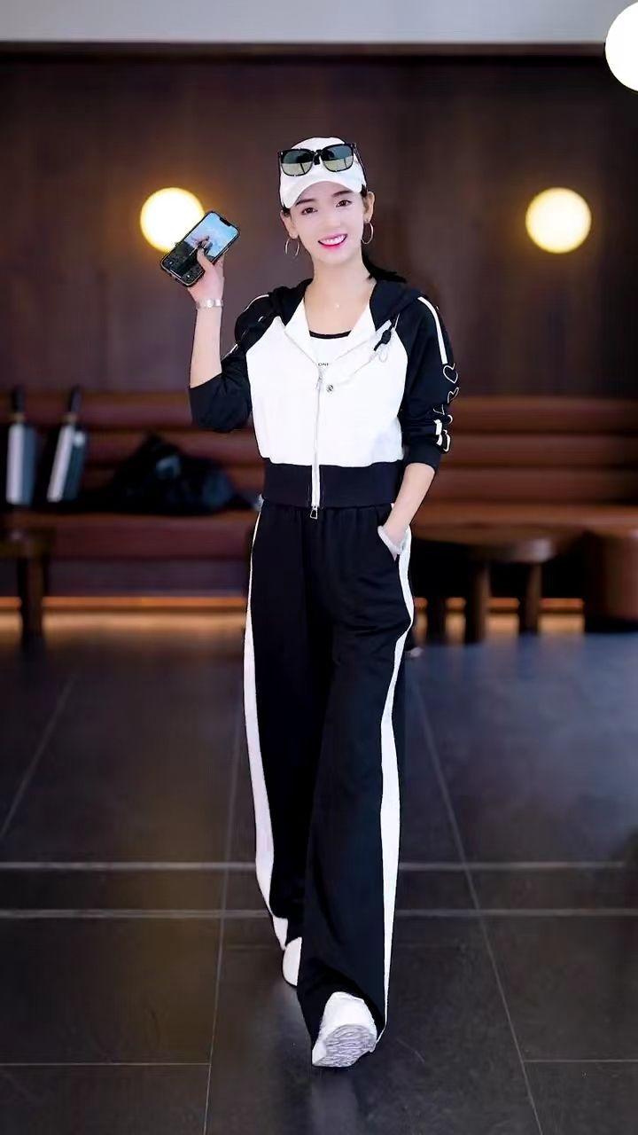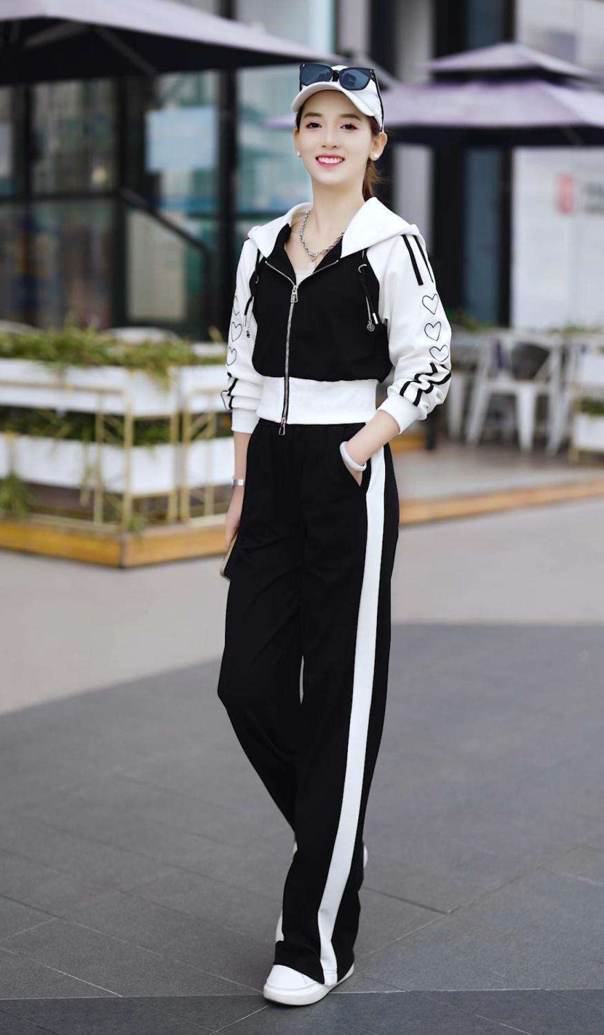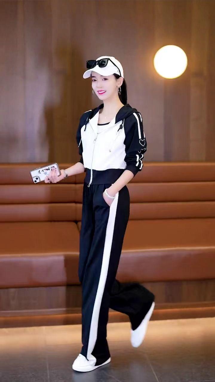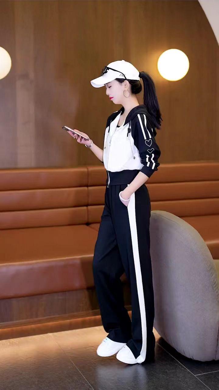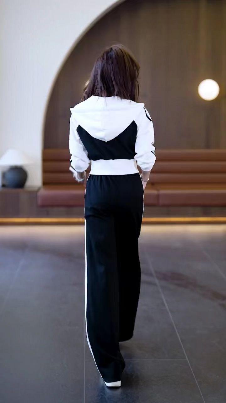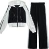 Conjunto deportivo informal de dos piezas para mujer, estilo europeo, primavera y otoño de 2025, con capucha, cárdigan, suéter y pantalones anchos.