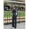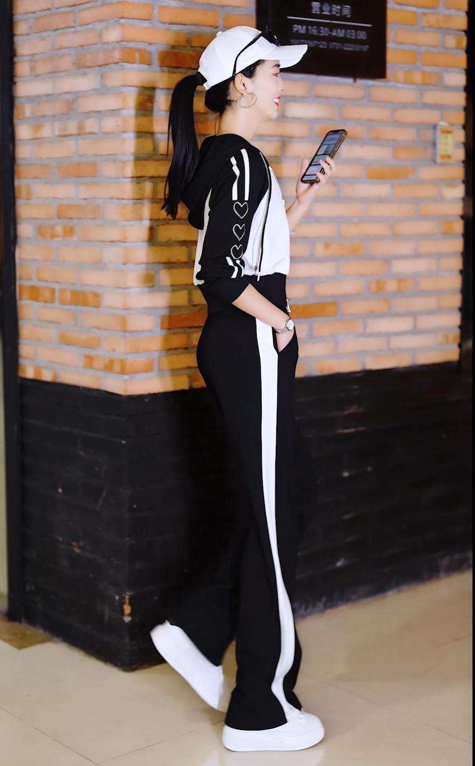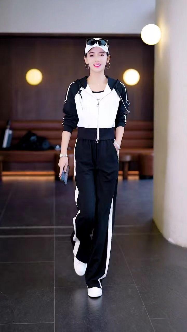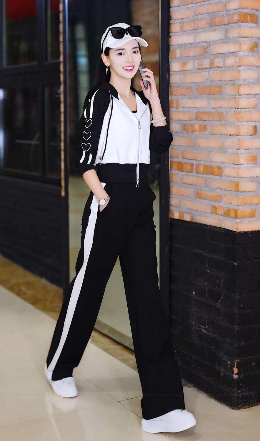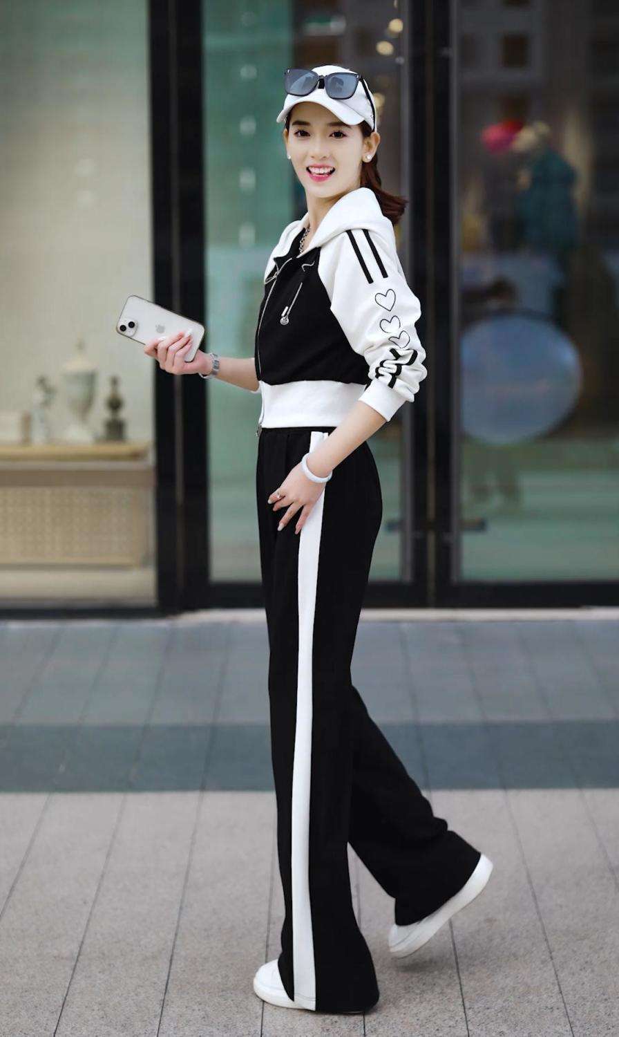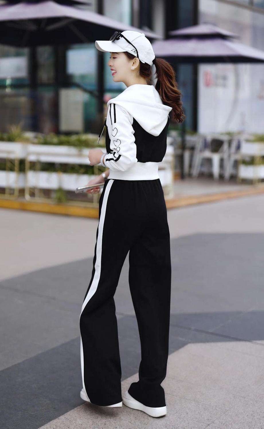 Conjunto deportivo informal de dos piezas para mujer, estilo europeo, primavera y otoño de 2025, con capucha, cárdigan, suéter y pantalones anchos.