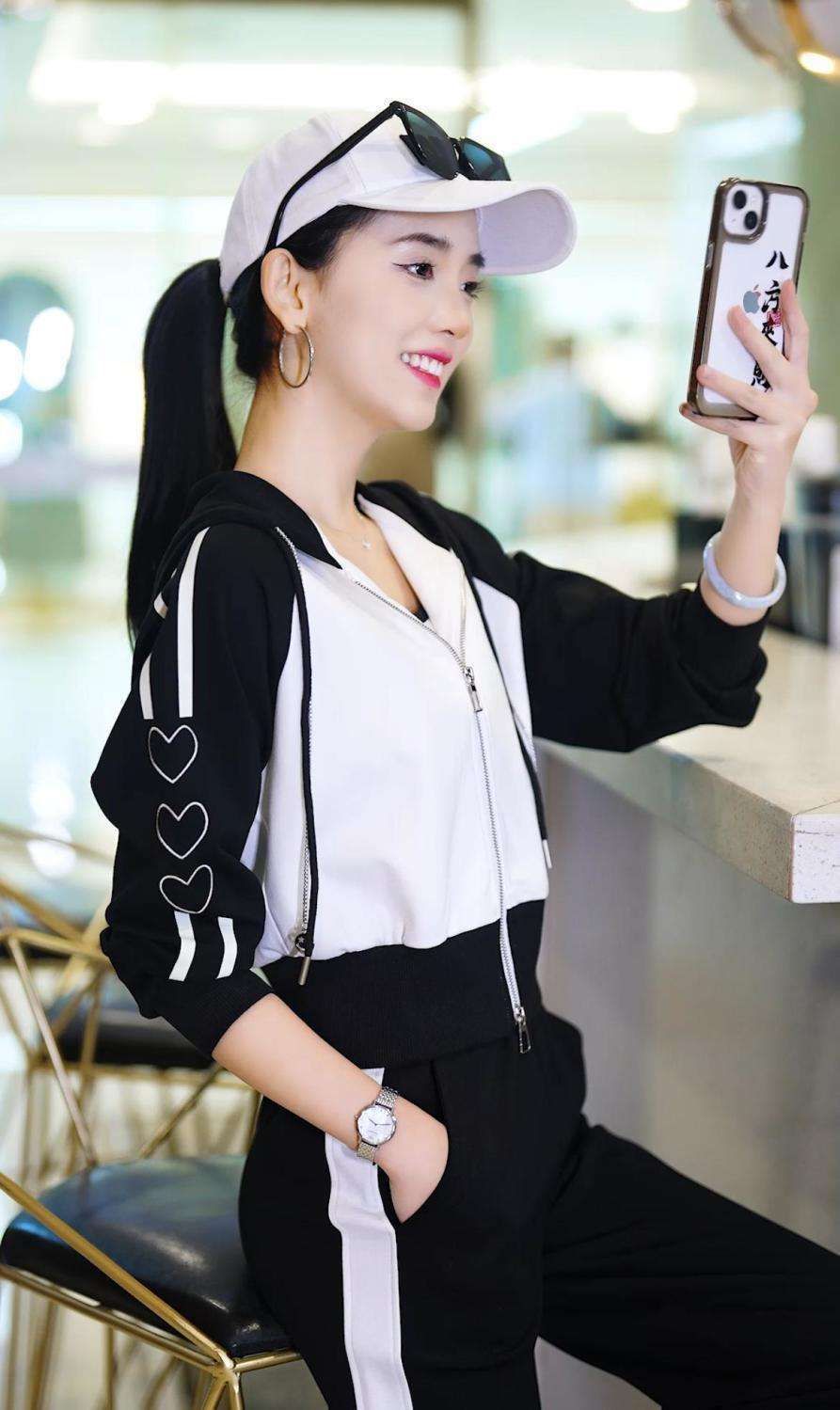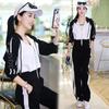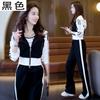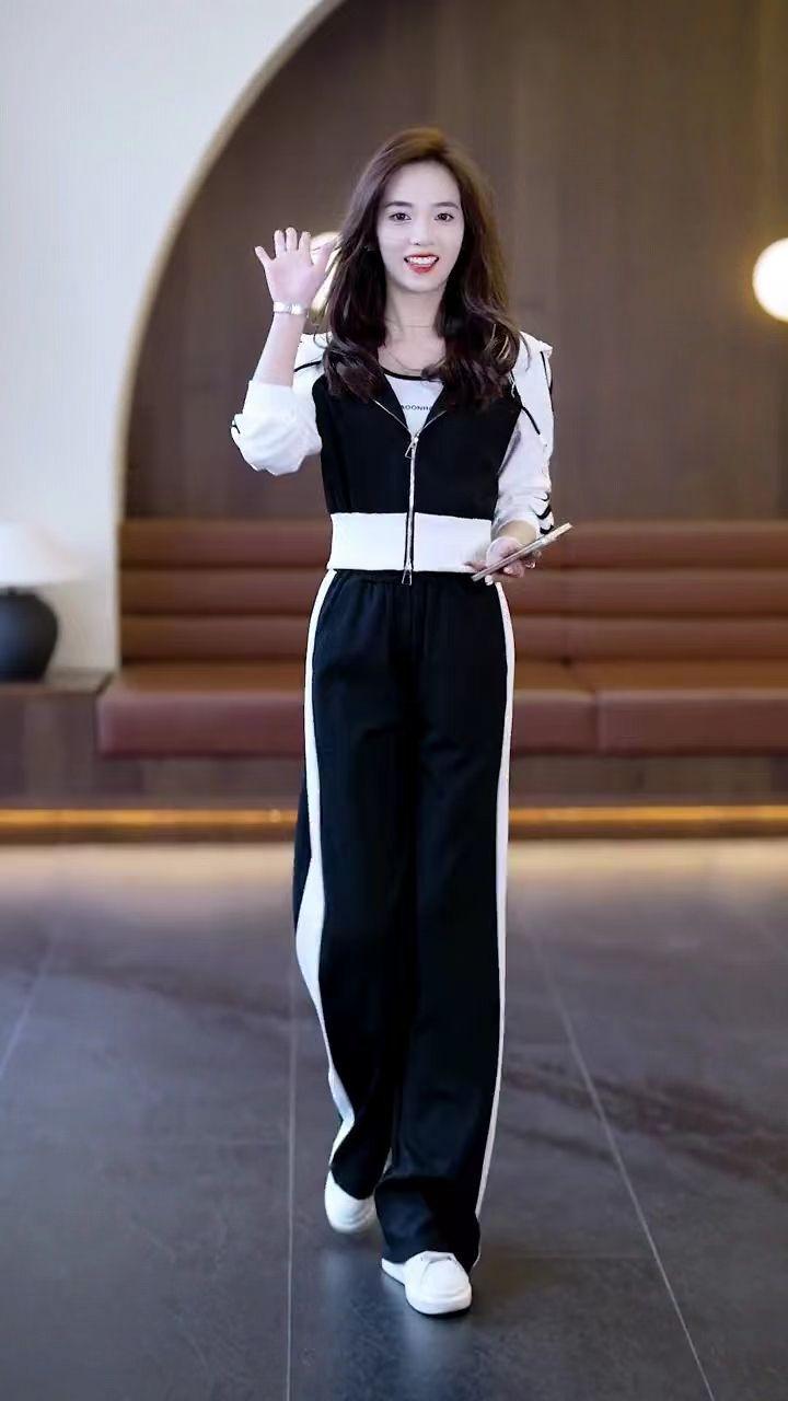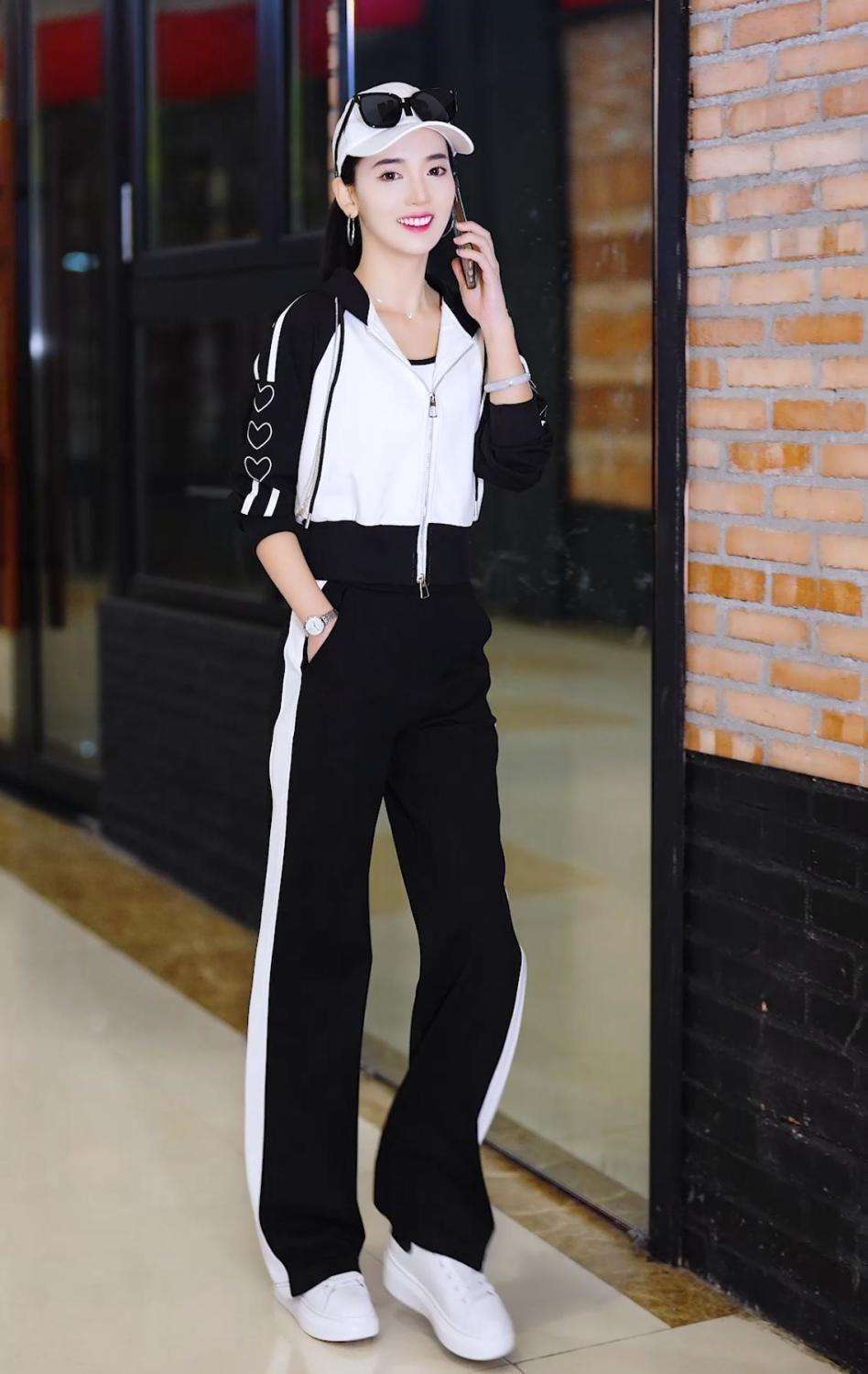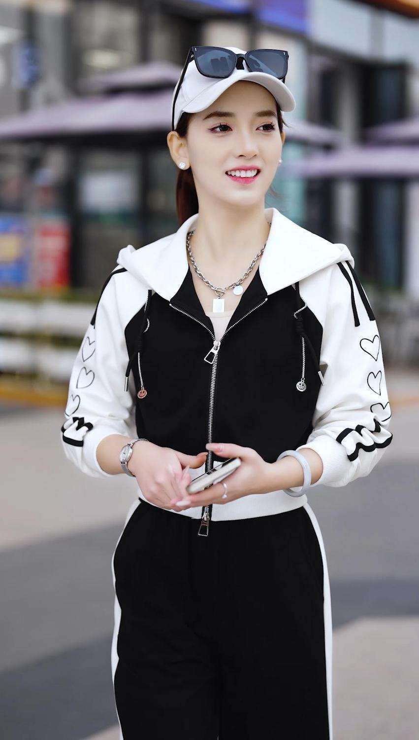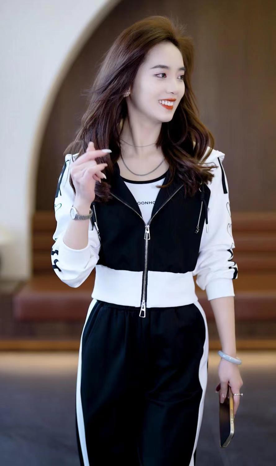 Conjunto deportivo informal de dos piezas para mujer, estilo europeo, primavera y otoño de 2025, con capucha, cárdigan, suéter y pantalones anchos.