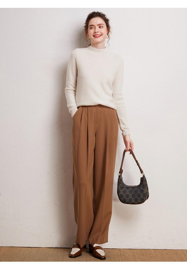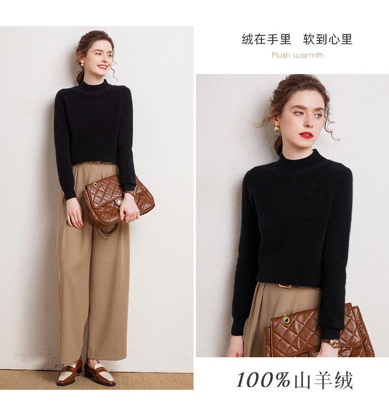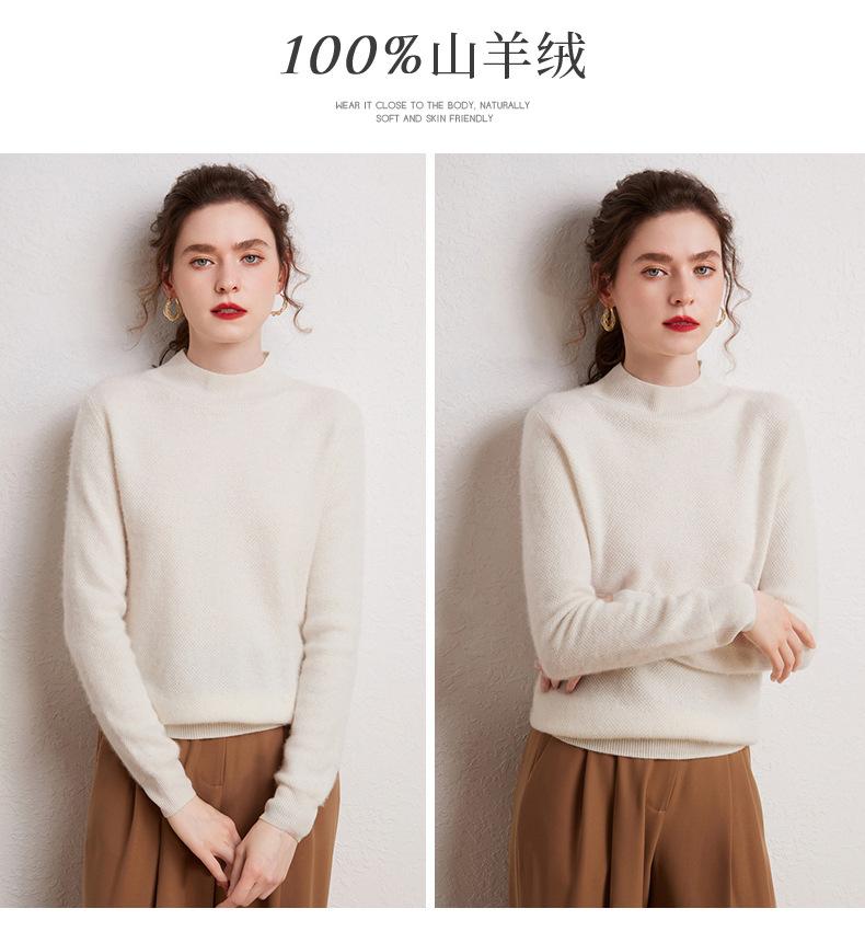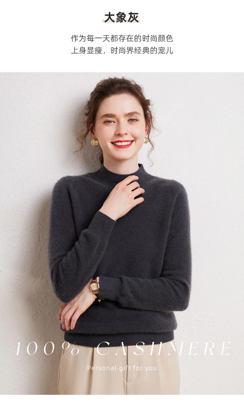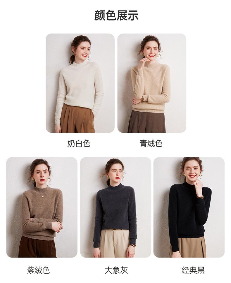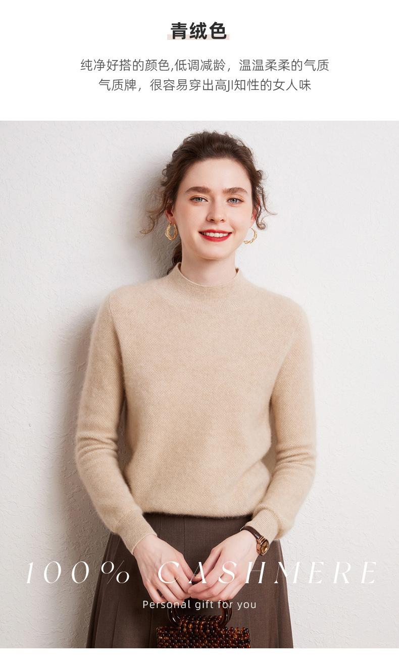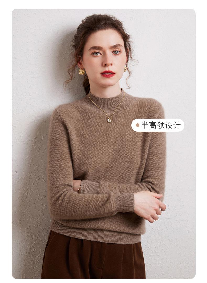 Suéter Nuevo de Otoño e Invierno 100% Cachemira Ligera para Mujer, Jersey de Cuello Alto Medio Tejido para Usar Debajo, Suéter Versátil Cálido de Manga Larga