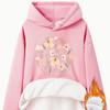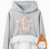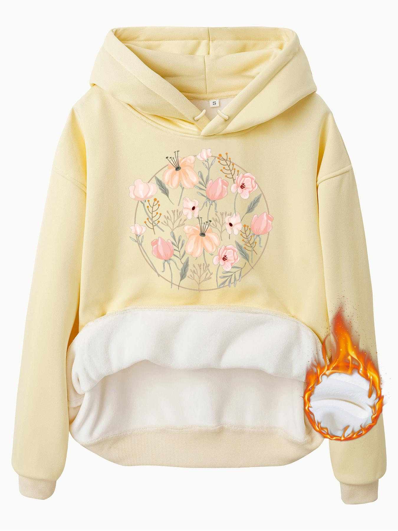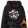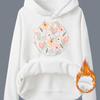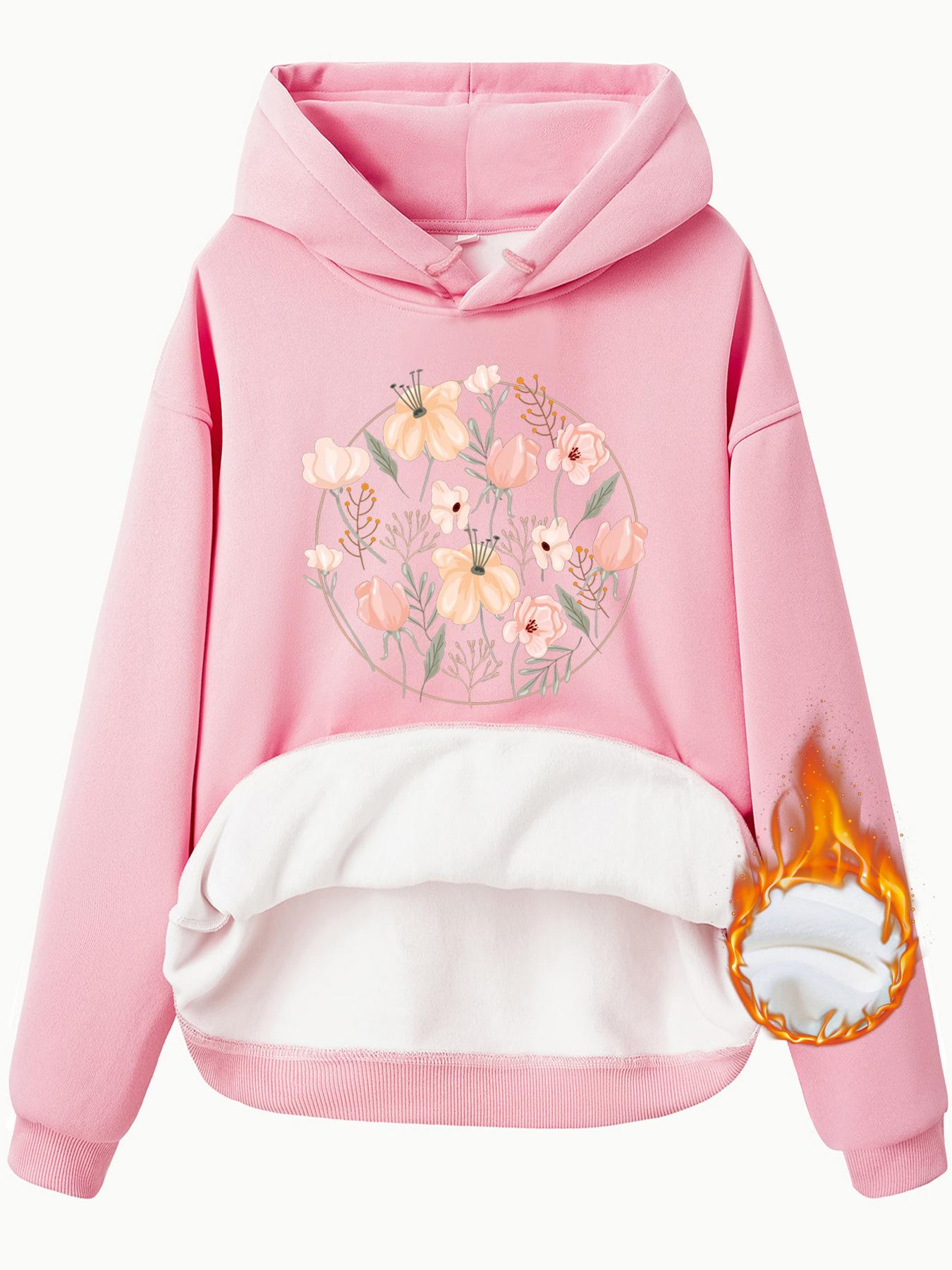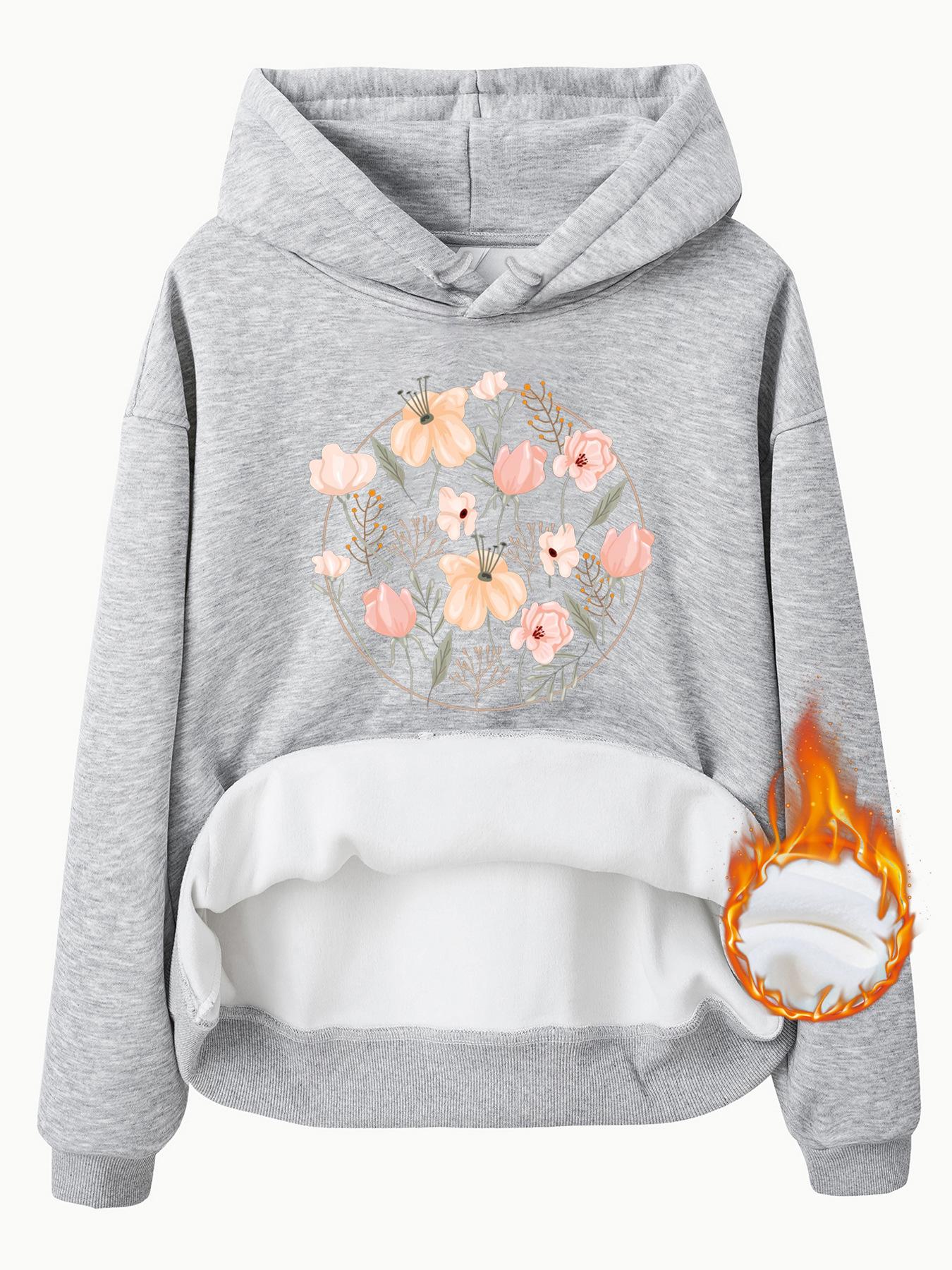 Sudadera de Otoño e Invierno para Mujer de Talla Europea Transfronteriza con Capucha, Manga Larga y Forro Polar, Bolsillo Canguro, Estampado Floral