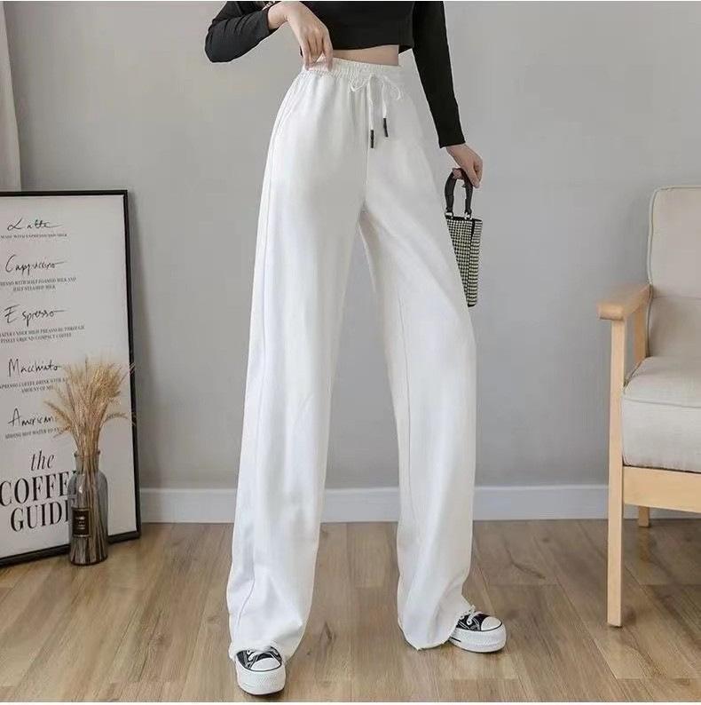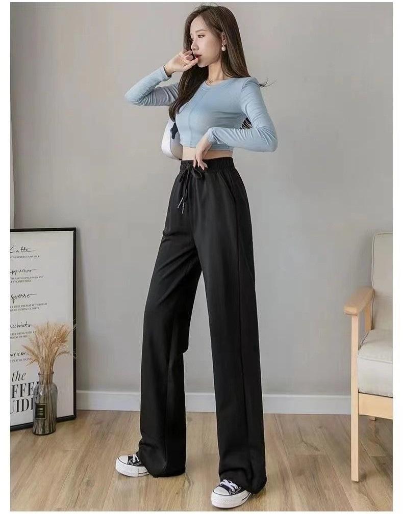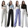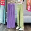 Pantalones de Pierna Ancha para Mujer, Estilo Delgado de Verano, 2025 Nuevo Pantalón Casual Recto de Pierna Recta Drapeado hasta el Piso de Cintura Alta