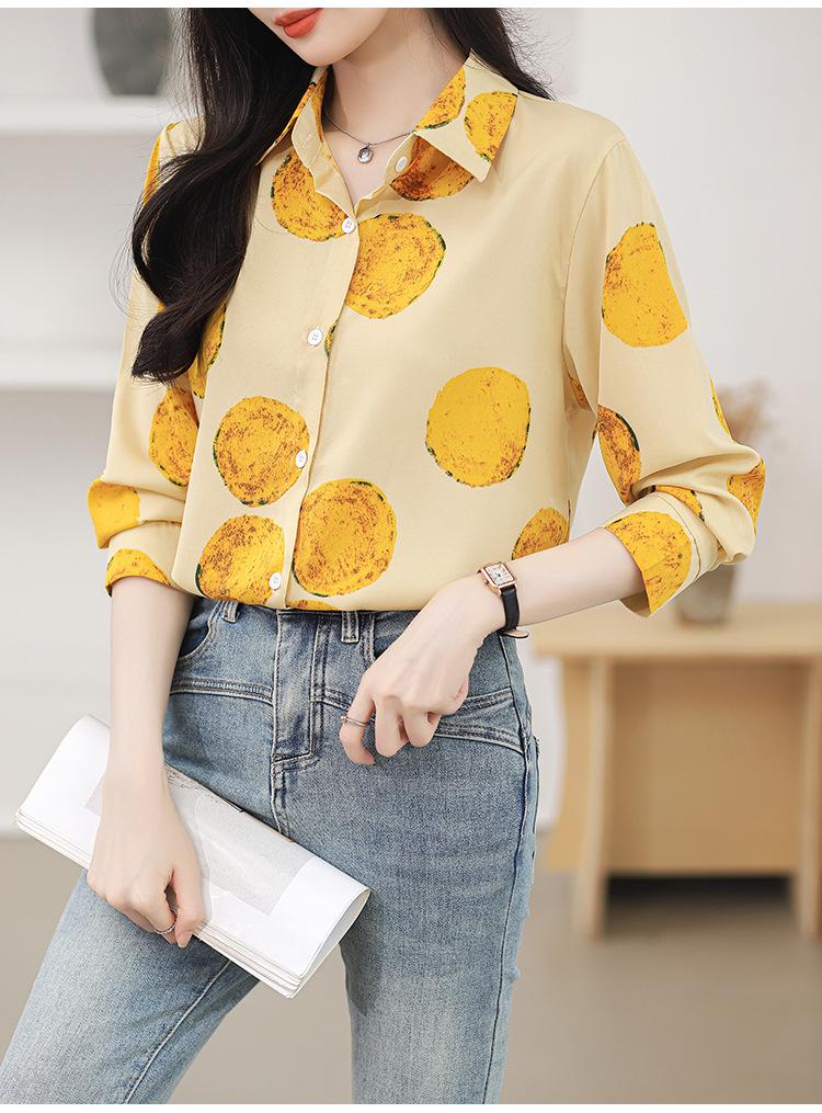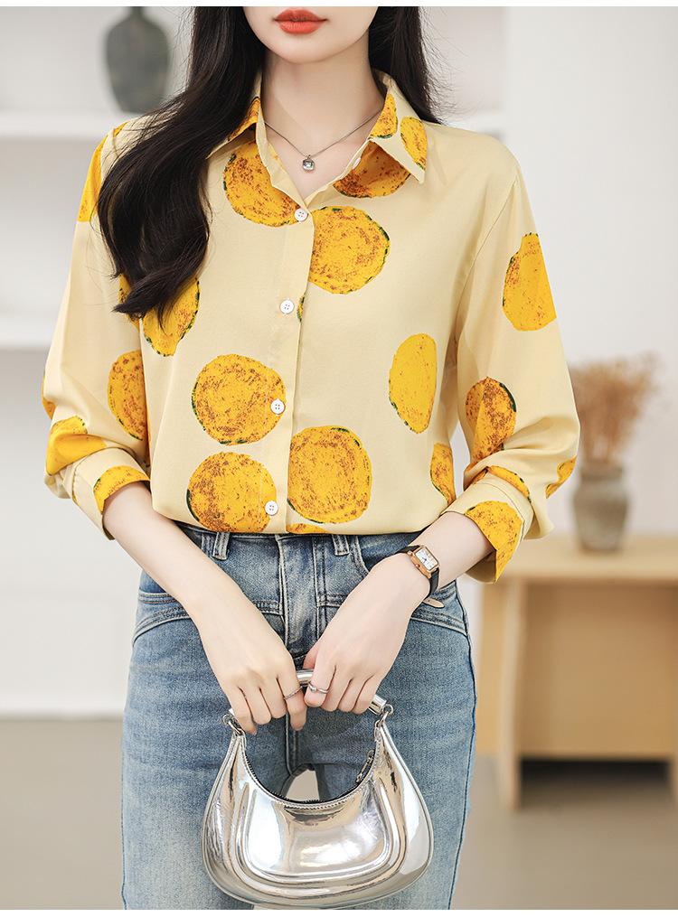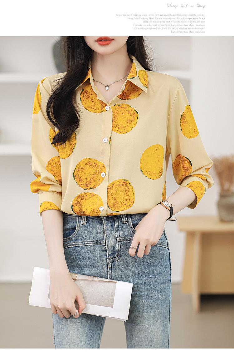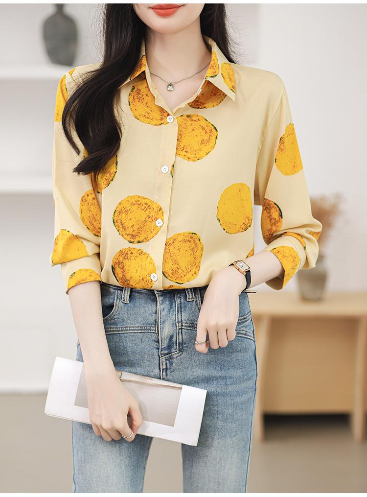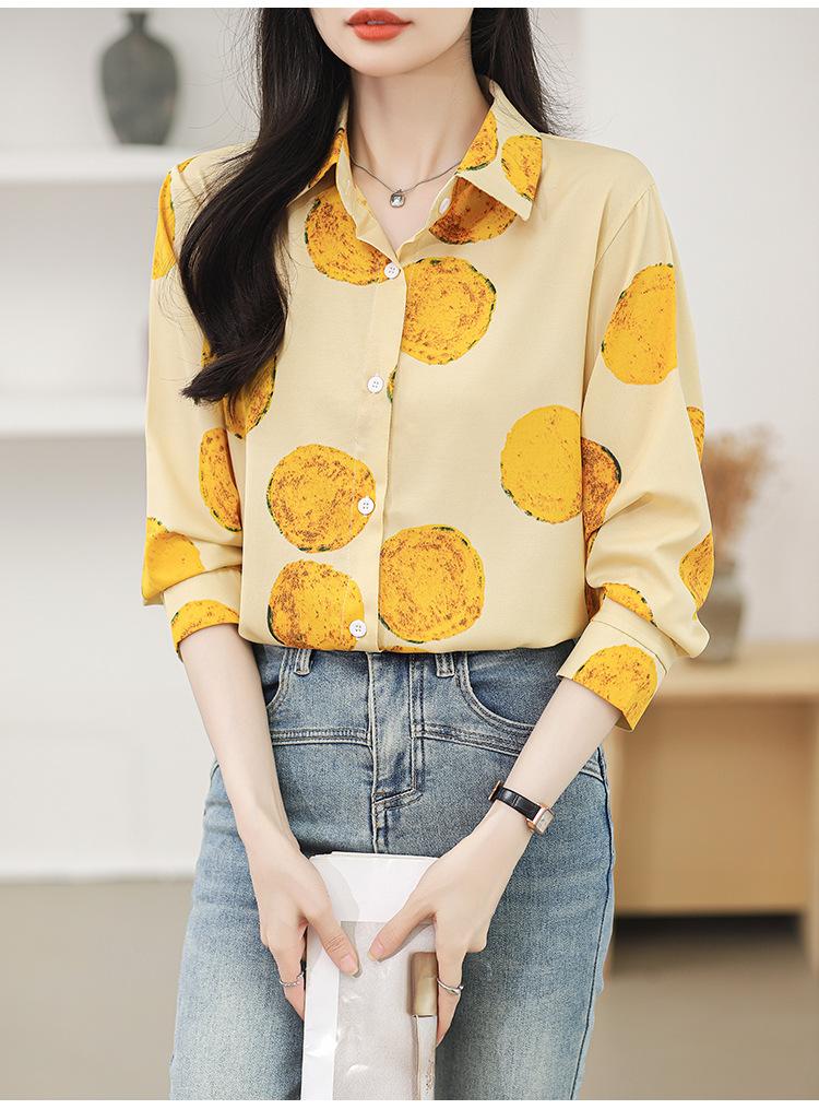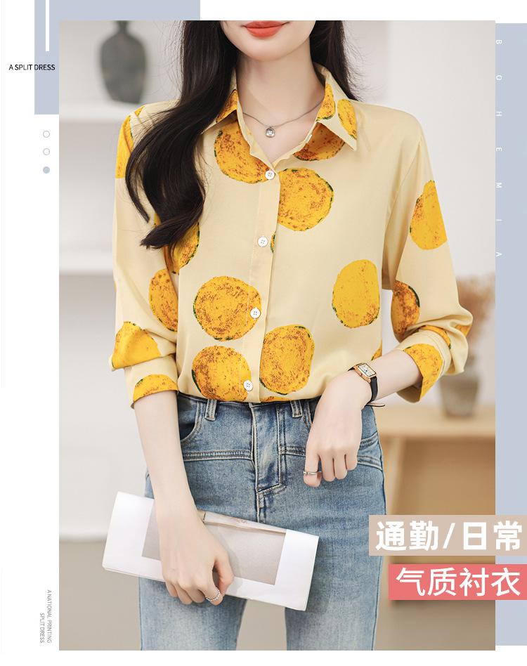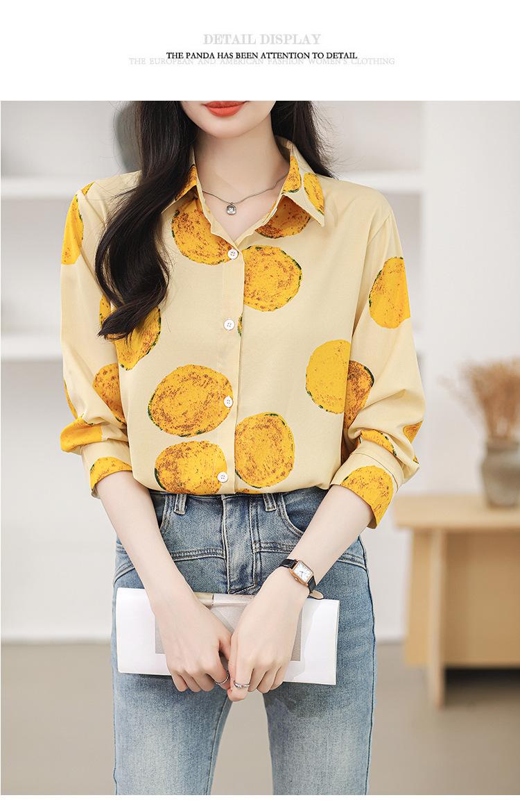 Camisa de manga larga con estampado de comercio exterior, nueva primavera y verano 2025, estilo retro de Hong Kong, para uso diario, combinable con todo.