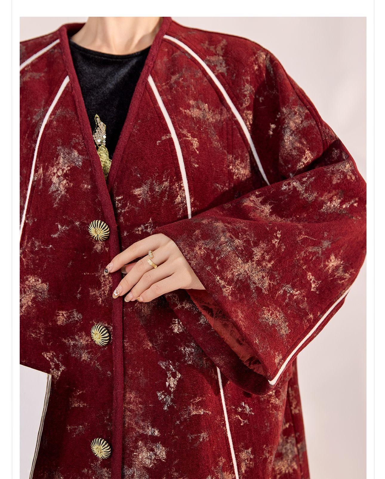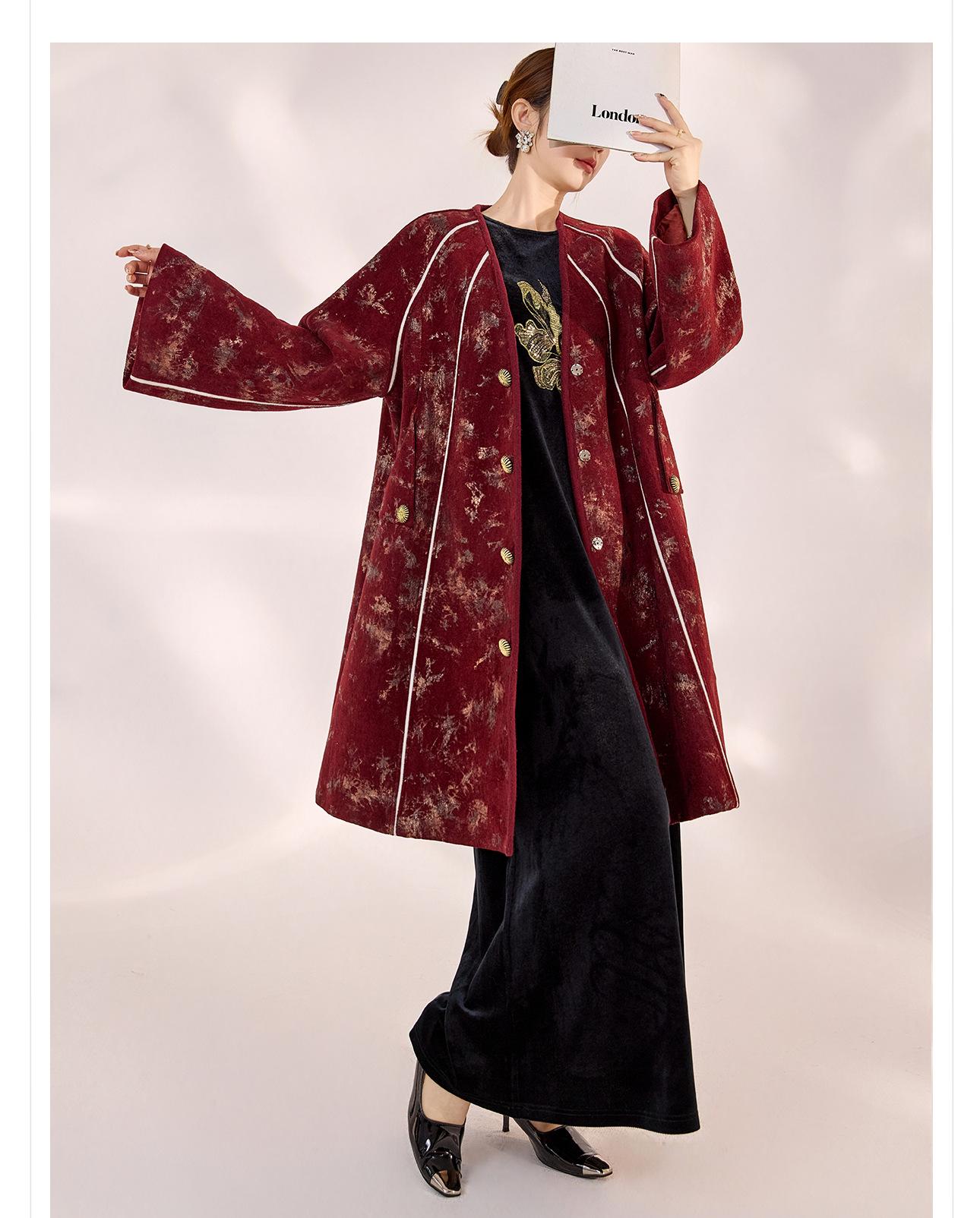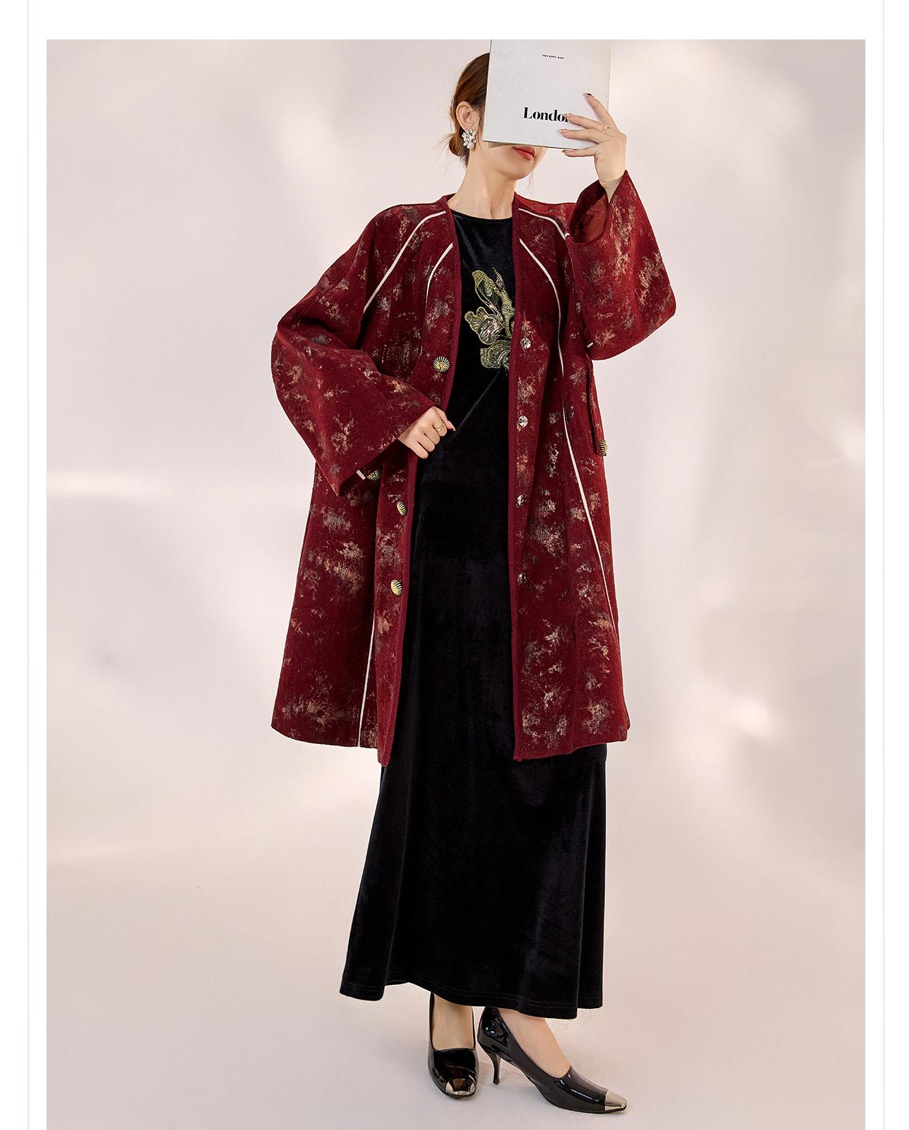 Nuevo Abrigo de Invierno de Estilo Chino Bordado Suelto Adelgazante Diseño en Forma de Paraguas Estilo Nacional Largo Medio para Mujer Modelo Zx My034