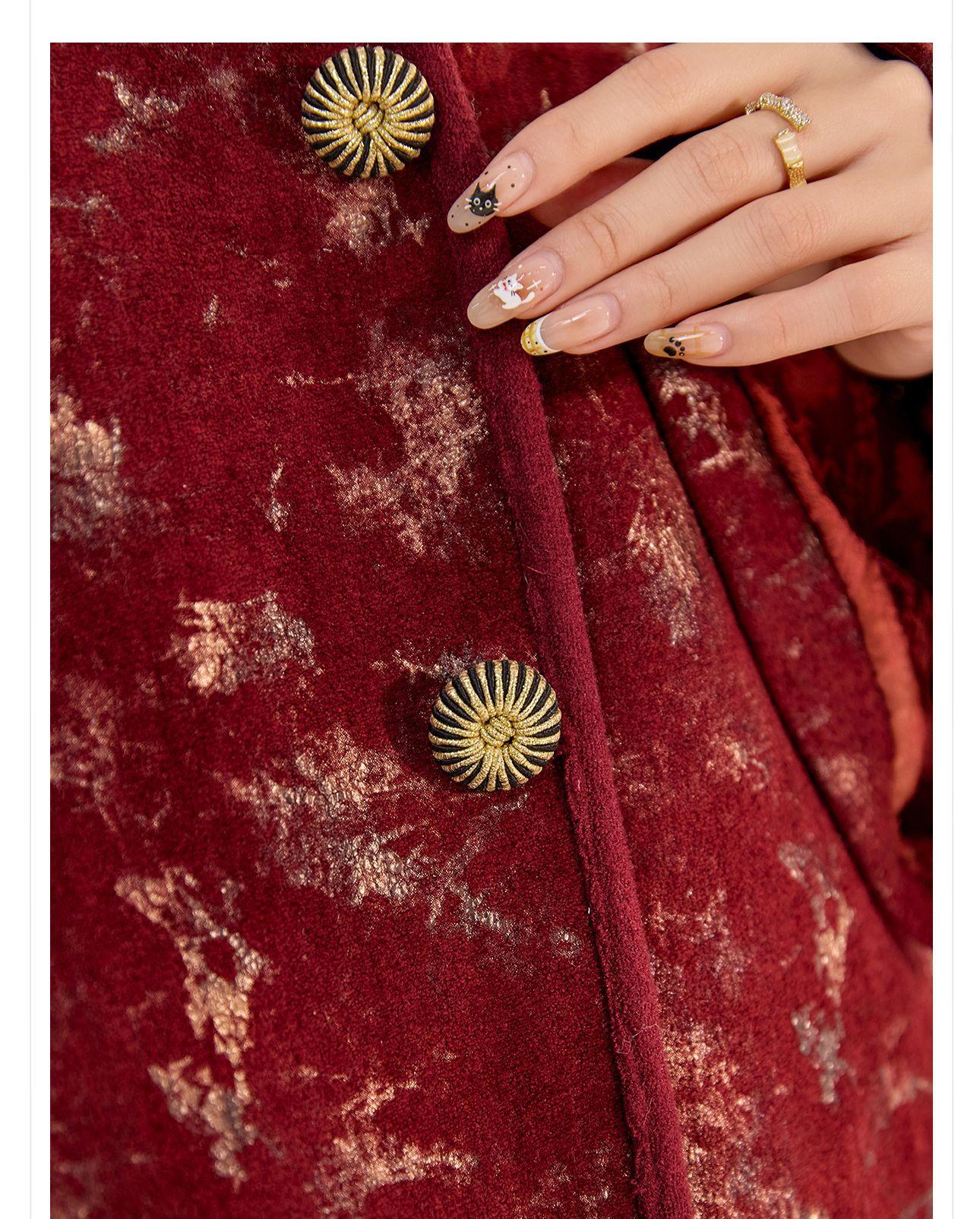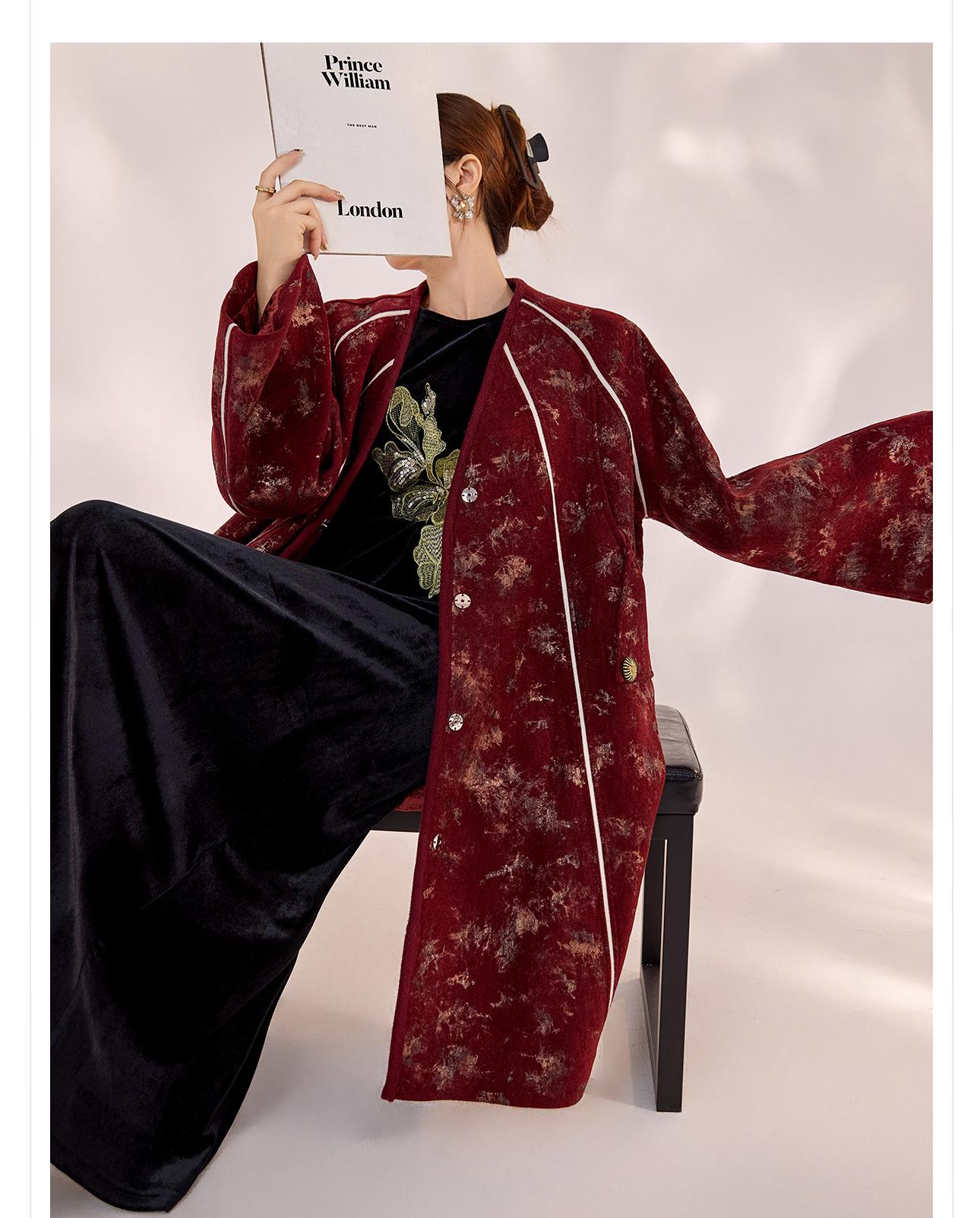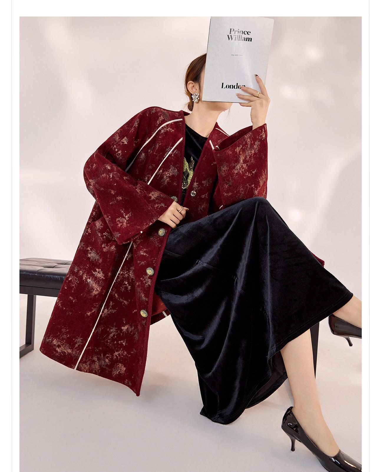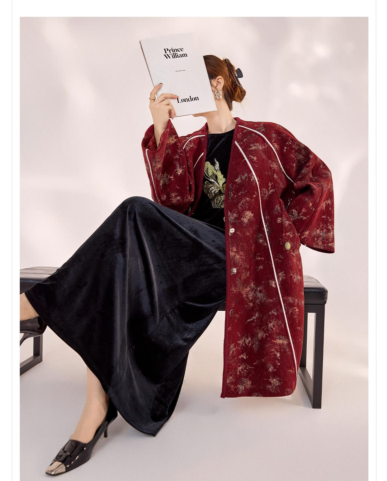 Nuevo Abrigo de Invierno de Estilo Chino Bordado Suelto Adelgazante Diseño en Forma de Paraguas Estilo Nacional Largo Medio para Mujer Modelo Zx My034