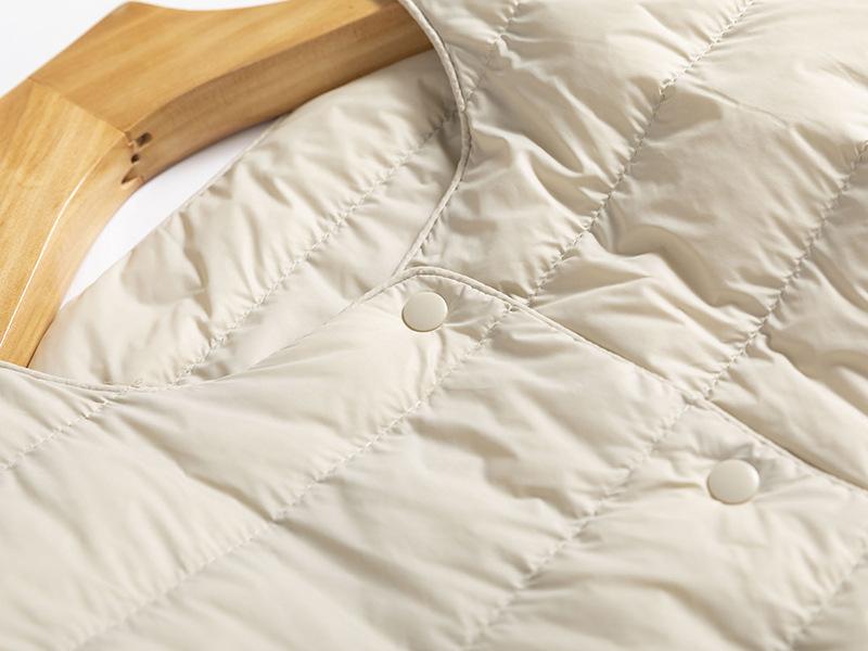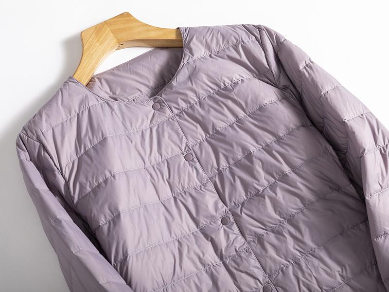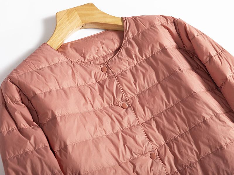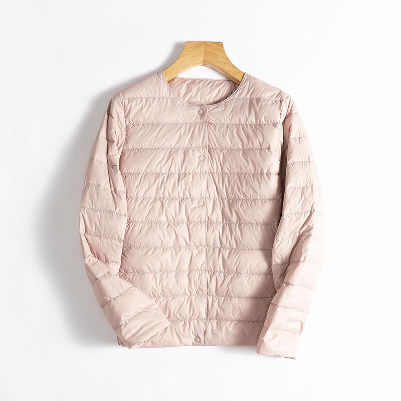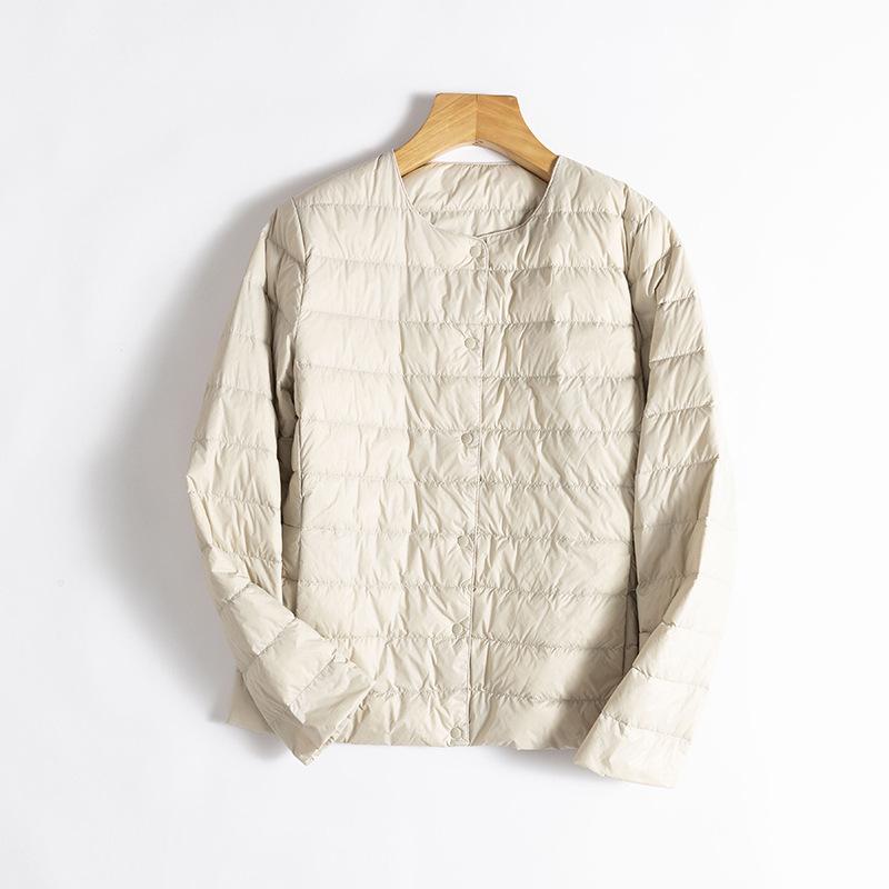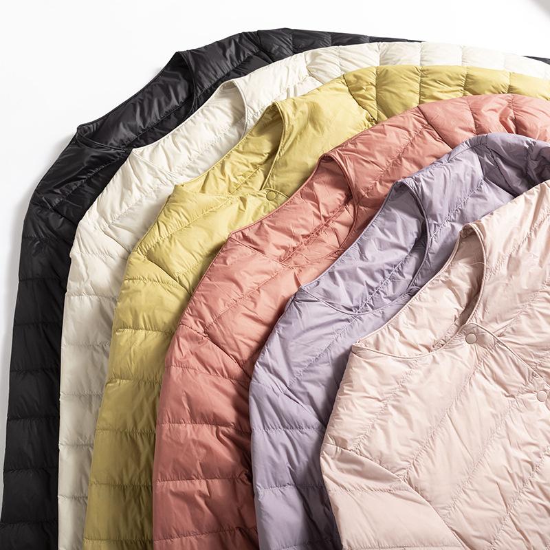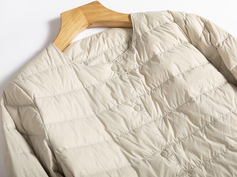 ¡Ligero y cálido! Chaqueta de plumón de pato blanca, cómoda y de color liso con cuello redondo para mujer, informal, de invierno, con interior apilado que combina con todo.
