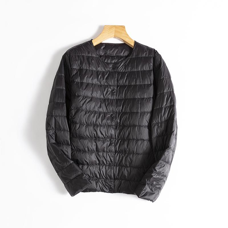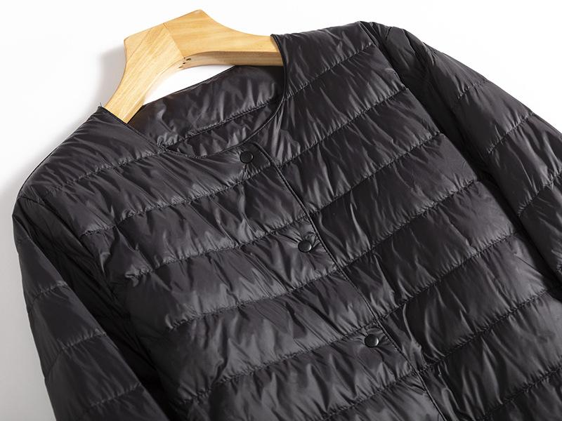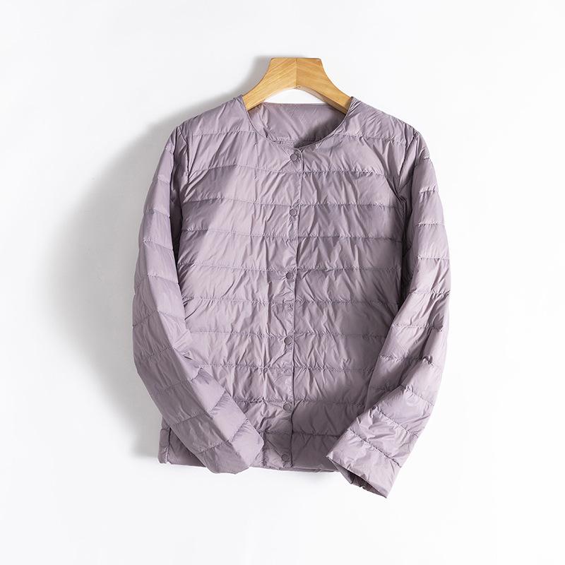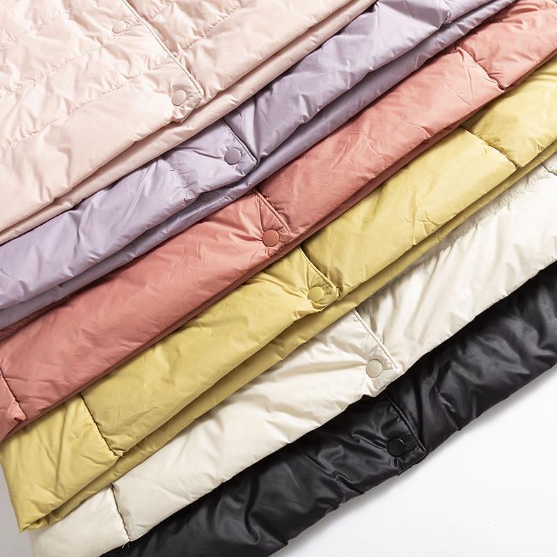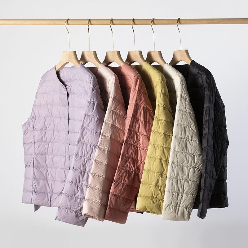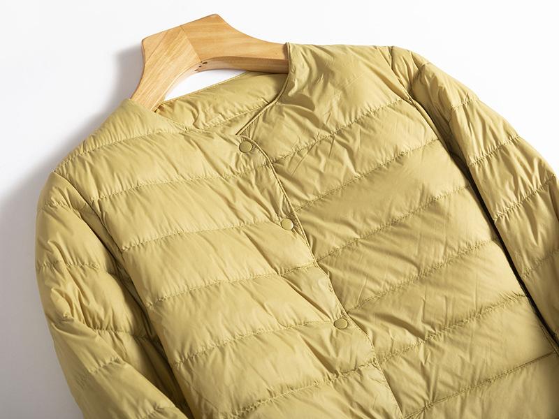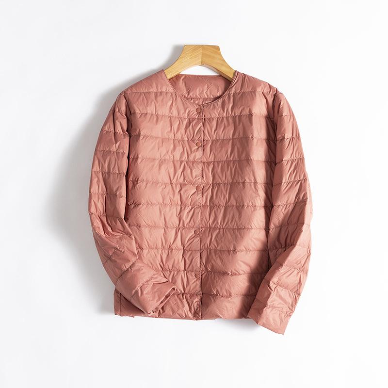 ¡Ligero y cálido! Chaqueta de plumón de pato blanca, cómoda y de color liso con cuello redondo para mujer, informal, de invierno, con interior apilado que combina con todo.