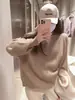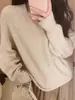 Suéter de punto de lana pura con cuello en V para mujer, nuevo, holgado, informal, sencillo, suave, de manga larga, cálido, para otoño e invierno.