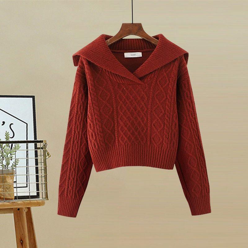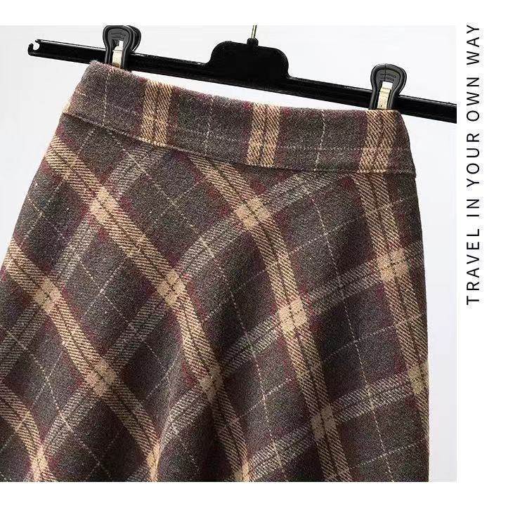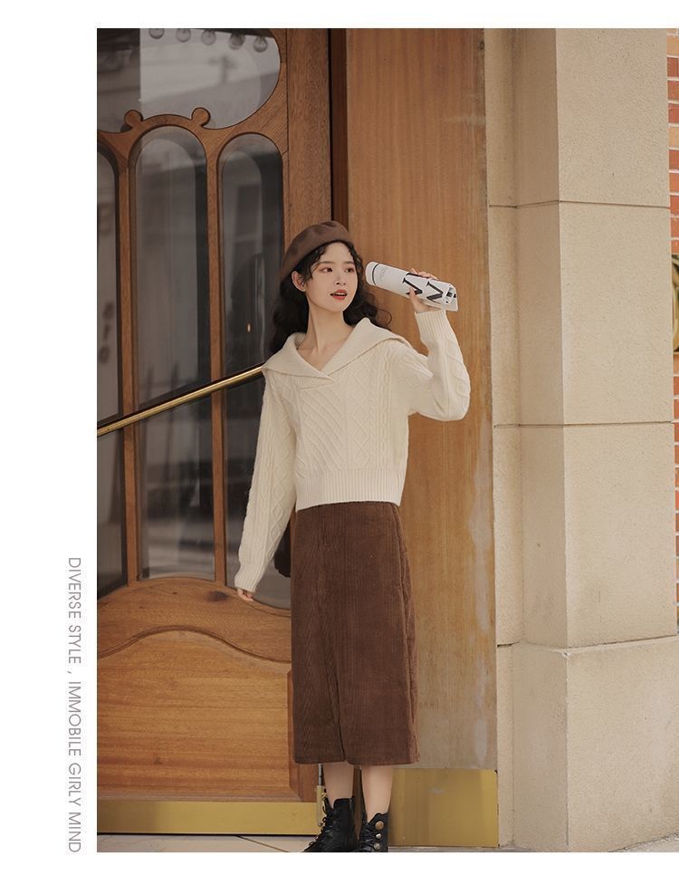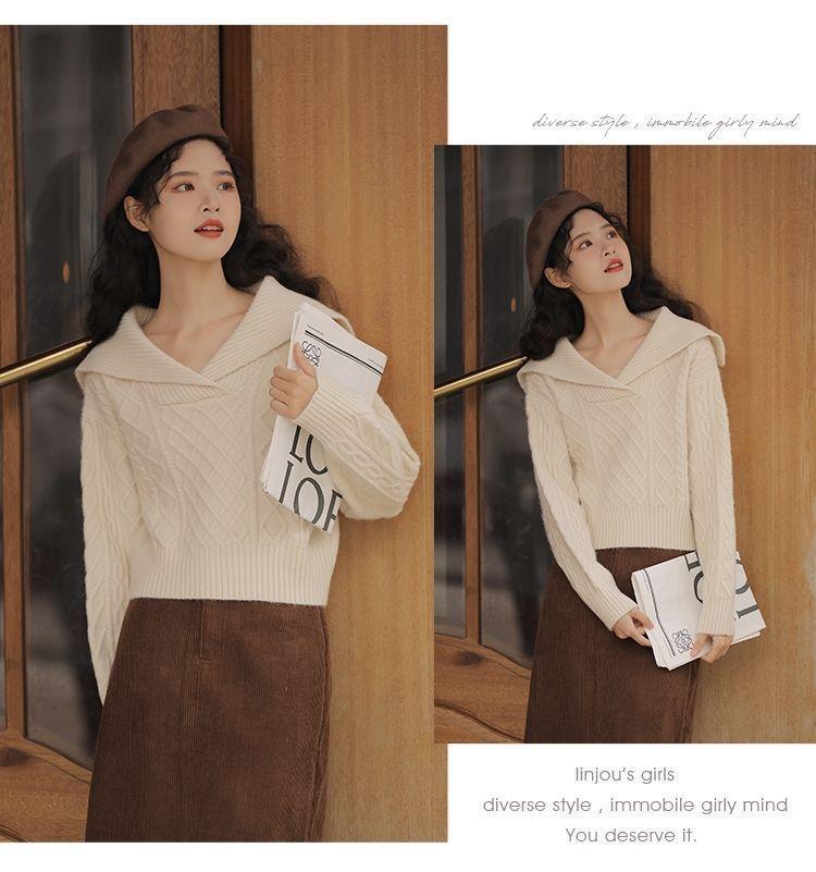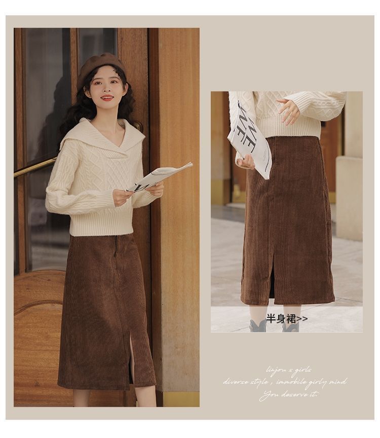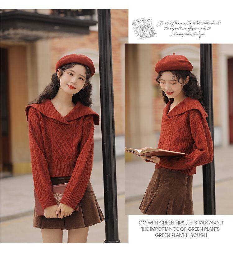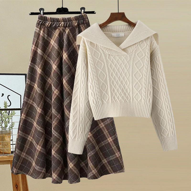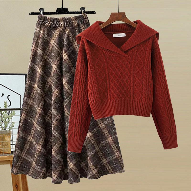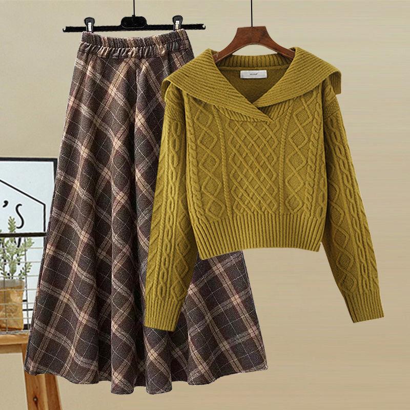 Falda de traje de otoño e invierno, suéter retro, top corto de punto para mujer, falda de lana nueva, conjunto de dos piezas de moda