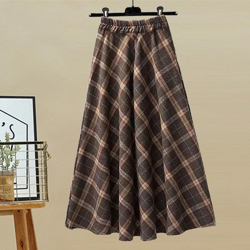 Brown sweater + skirt [suit], Apricot sweater + skirt [suit], Red sweater + skirt [suit], Green sweater + skir...