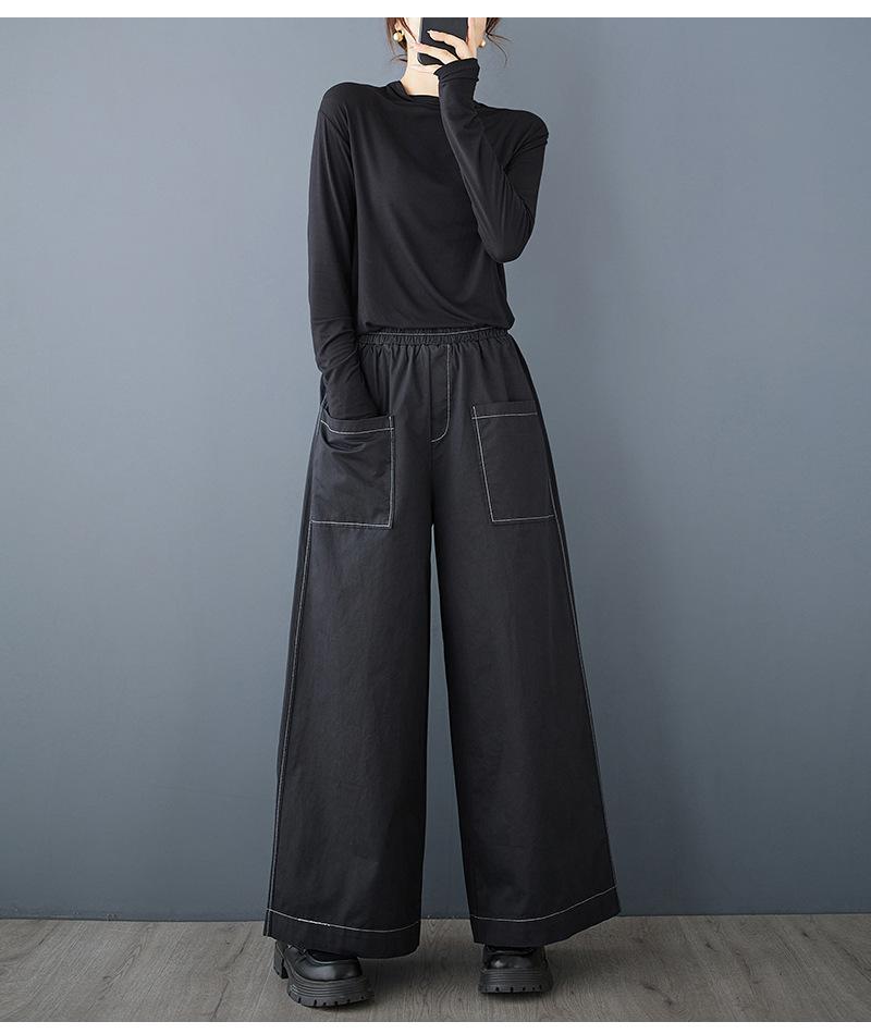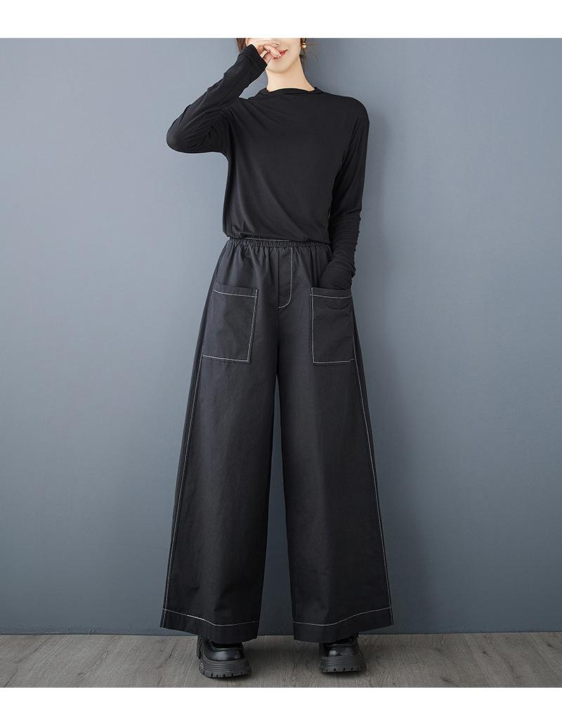 2025 Primavera y Otoño Nuevo Casual Suelto Cintura Suelta Bolsillo Línea Superior Combinable Adelgazante Pantalones de Pierna Ancha