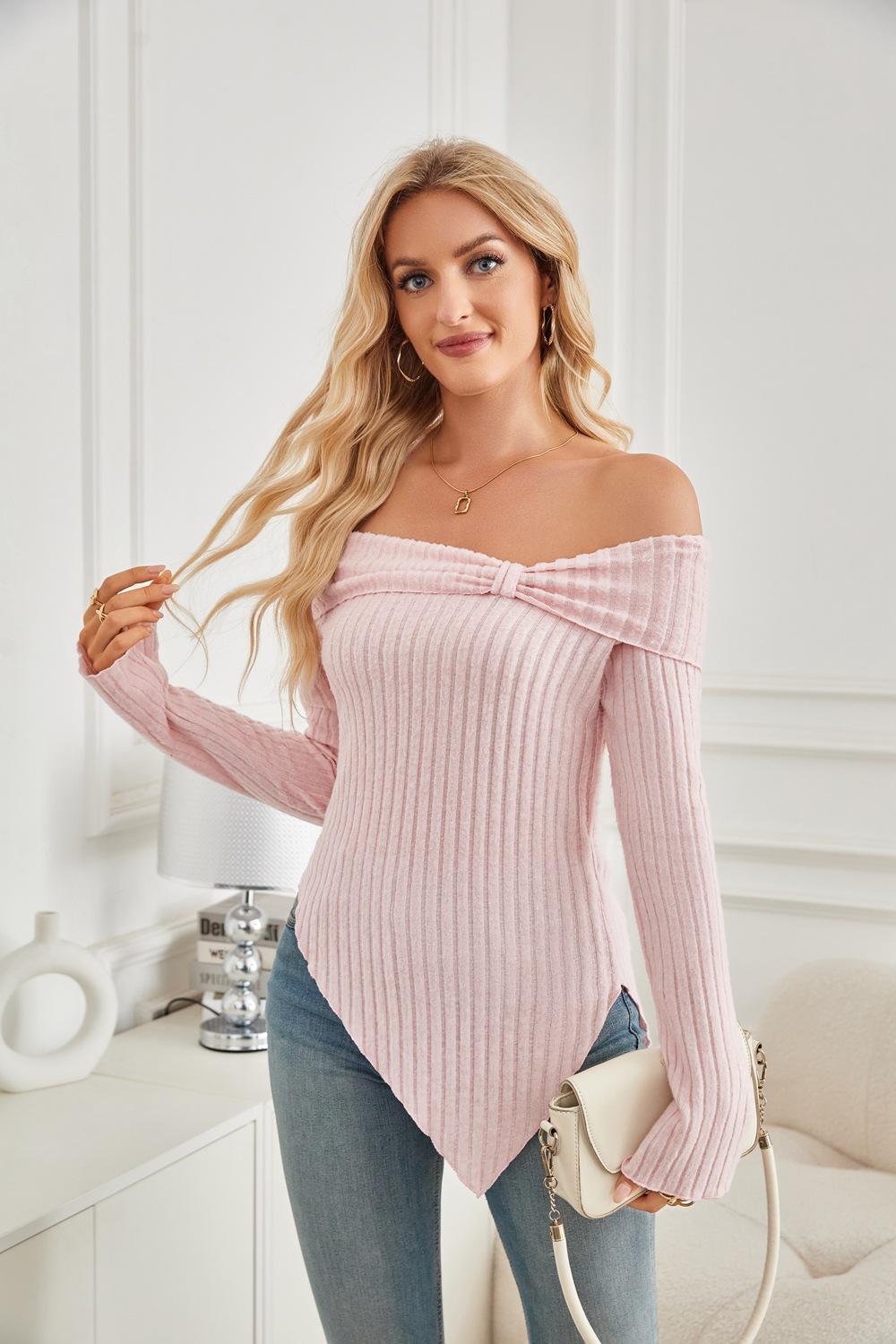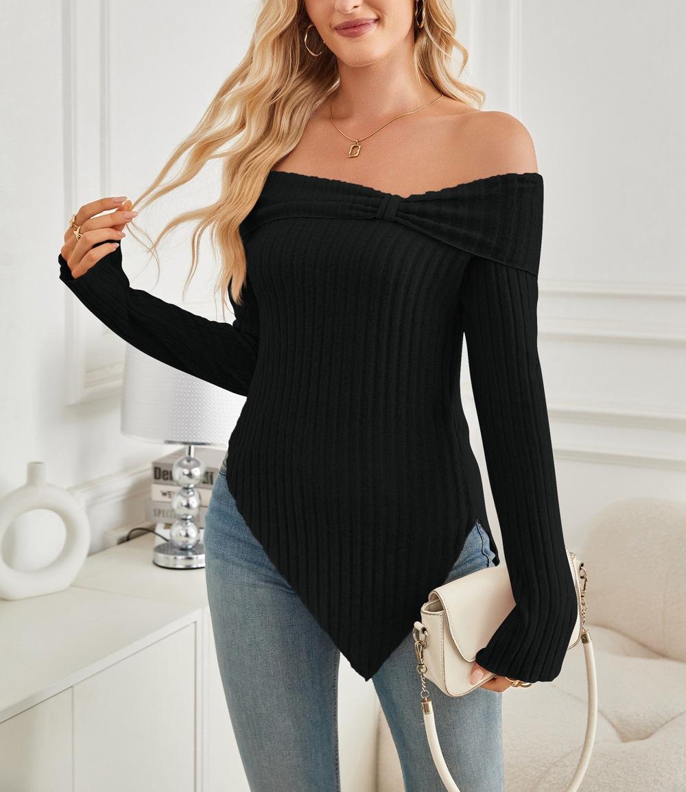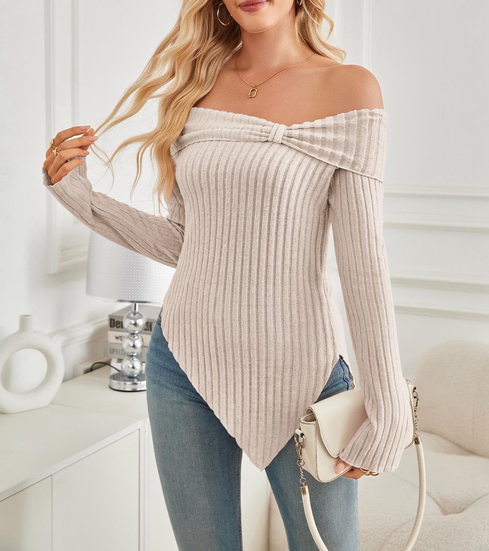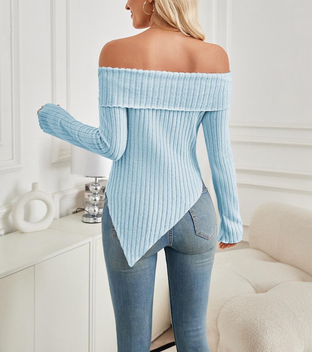 Estación Independiente Transfronteriza Europea y Americana de Amazon 2025 Otoño e Invierno Nuevo Camiseta de Moda para Mujer de Un Hombro Ajustada con Abertura