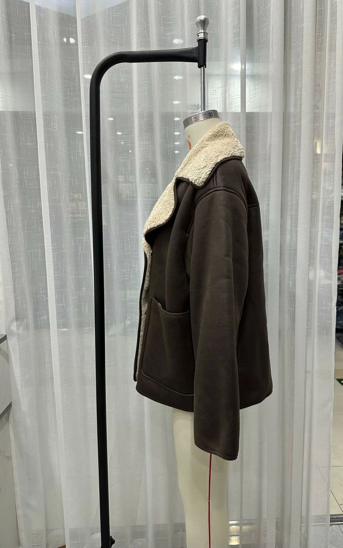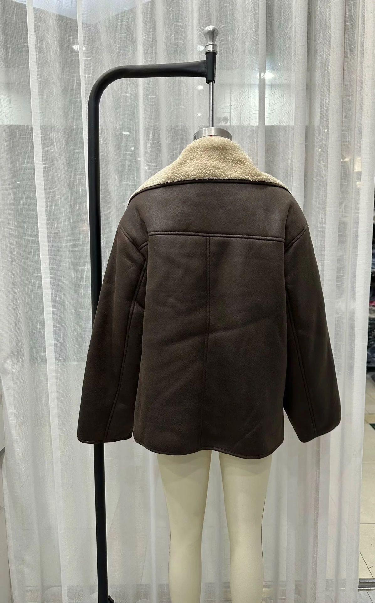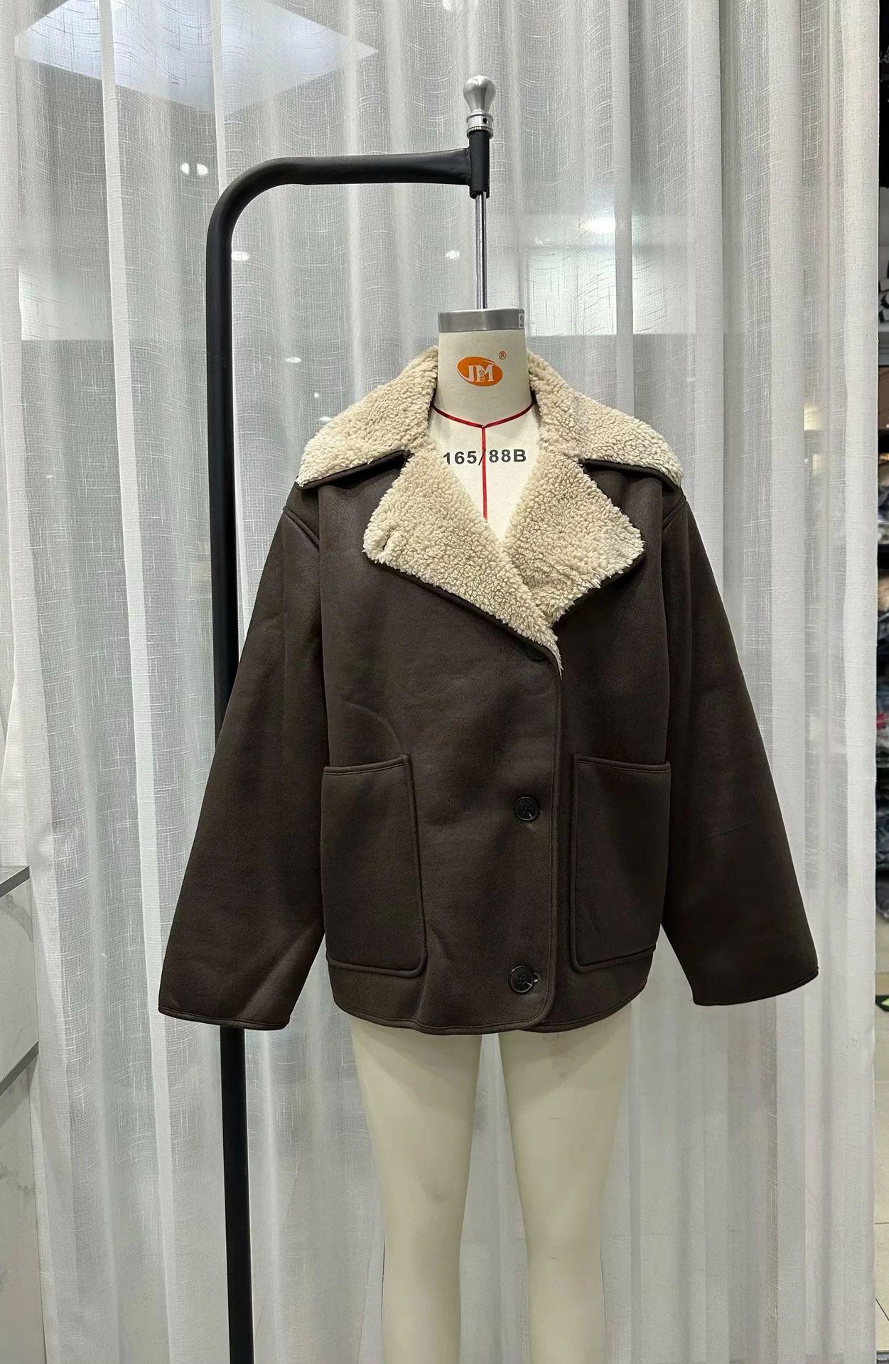 Chaqueta de piel de Joker con solapa, nueva moda transfronteriza europea y americana, otoño e invierno de 2024, venta al por mayor para mujer