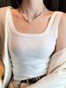 Chaleco de Algodón de Cuello Cuadrado con Hilo para Mujer en Verano, Fondo Delgado, Top de Punto sin Mangas, Traje Versátil de Aspecto Adelgazante Suspbottomer