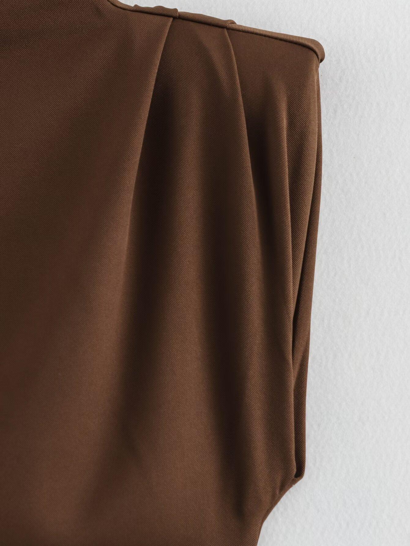 Blusa plisada con hombros descubiertos para mujer, estilo urbano europeo y americano, primavera 2025, w107 8795