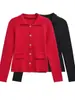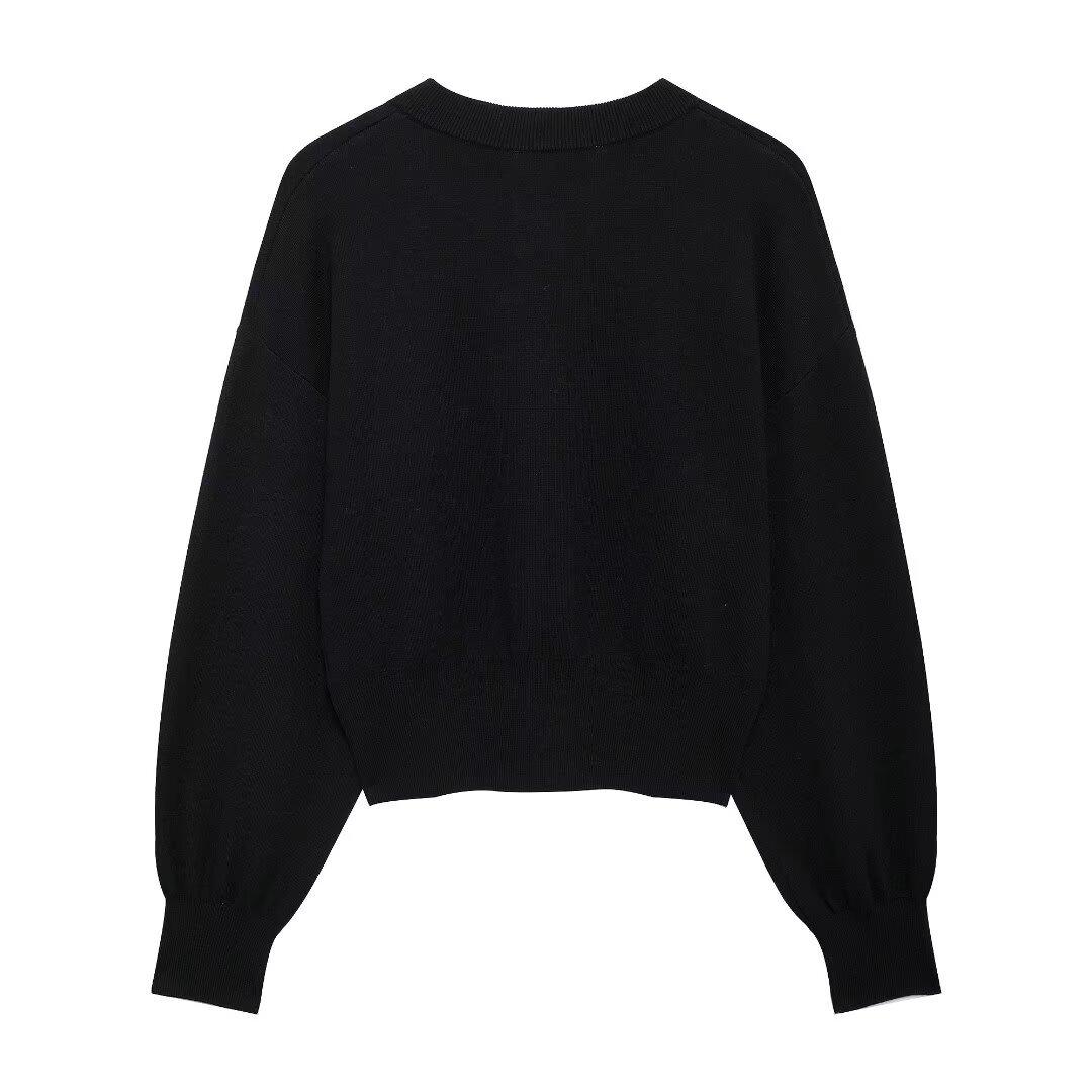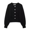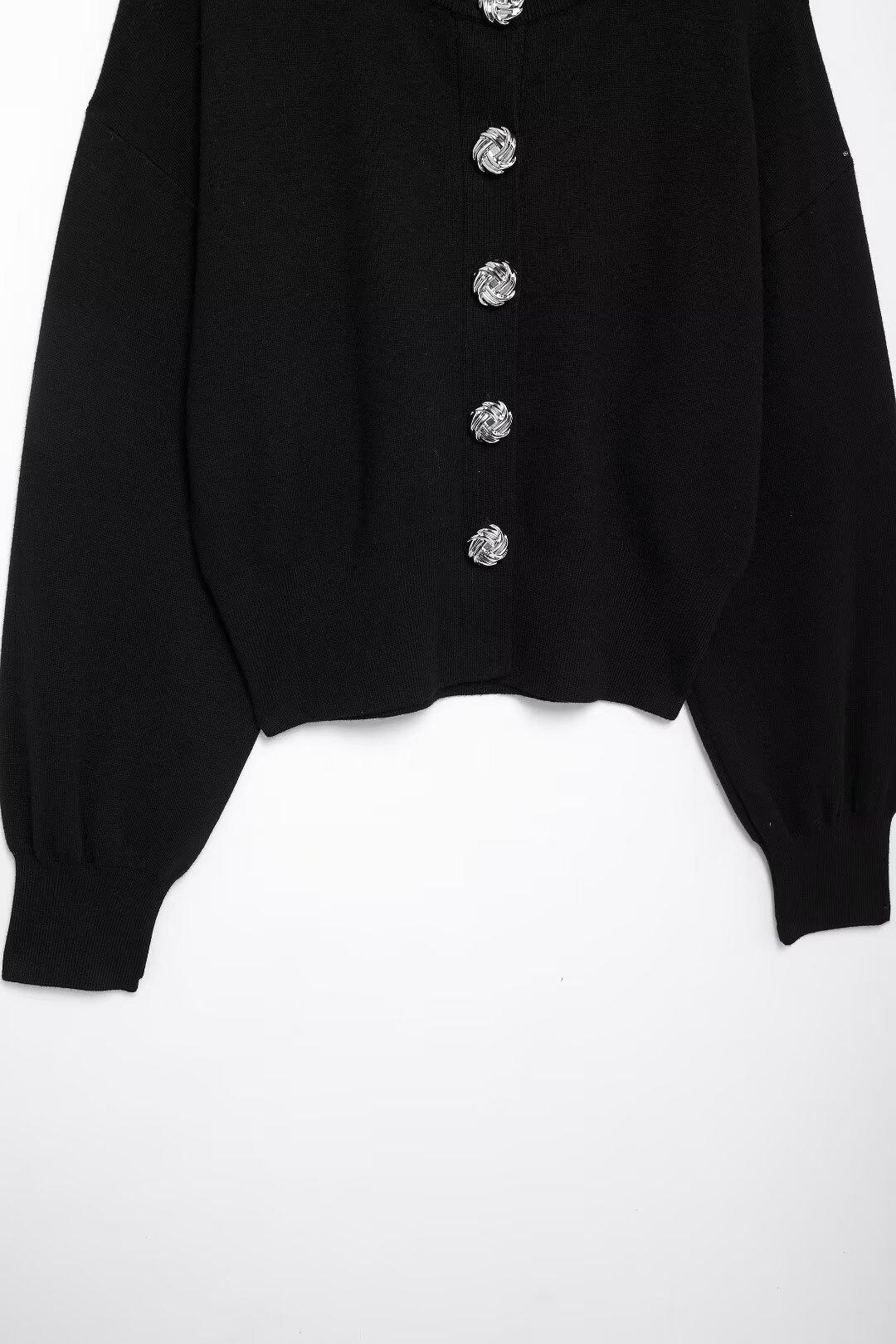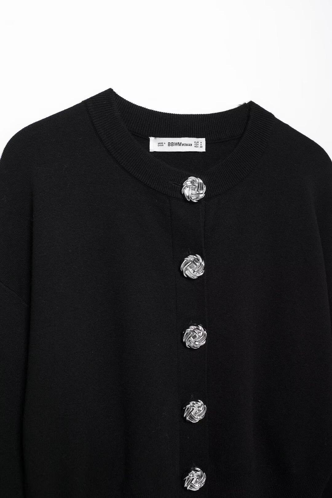 Chaqueta cárdigan de manga larga de punto con hebilla grande negra de alta gama para mujer europea y americana de otoño e invierno de 2024