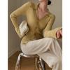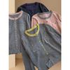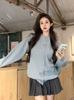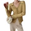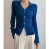 Cárdigan de punto azul elegante y a la moda con cuello en V para mujer 2025 Primavera y Otoño Nuevo sentido del diseño Ajustado Adelgazante Top Trendy Ins