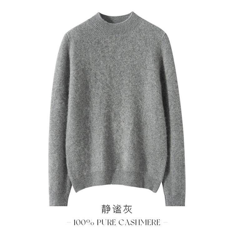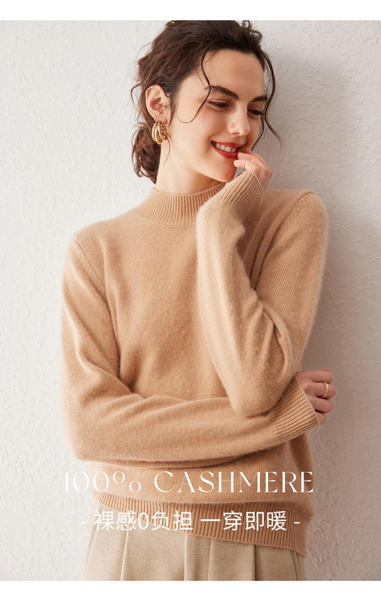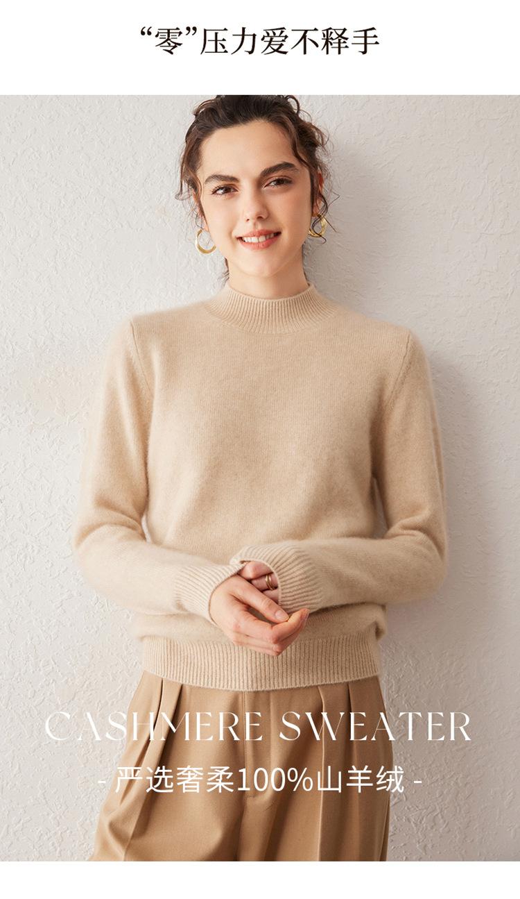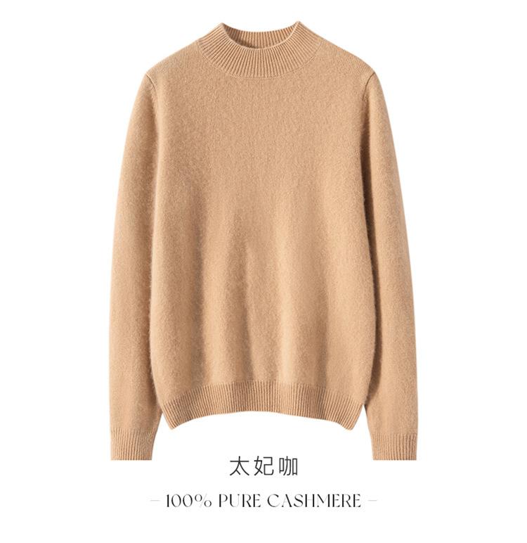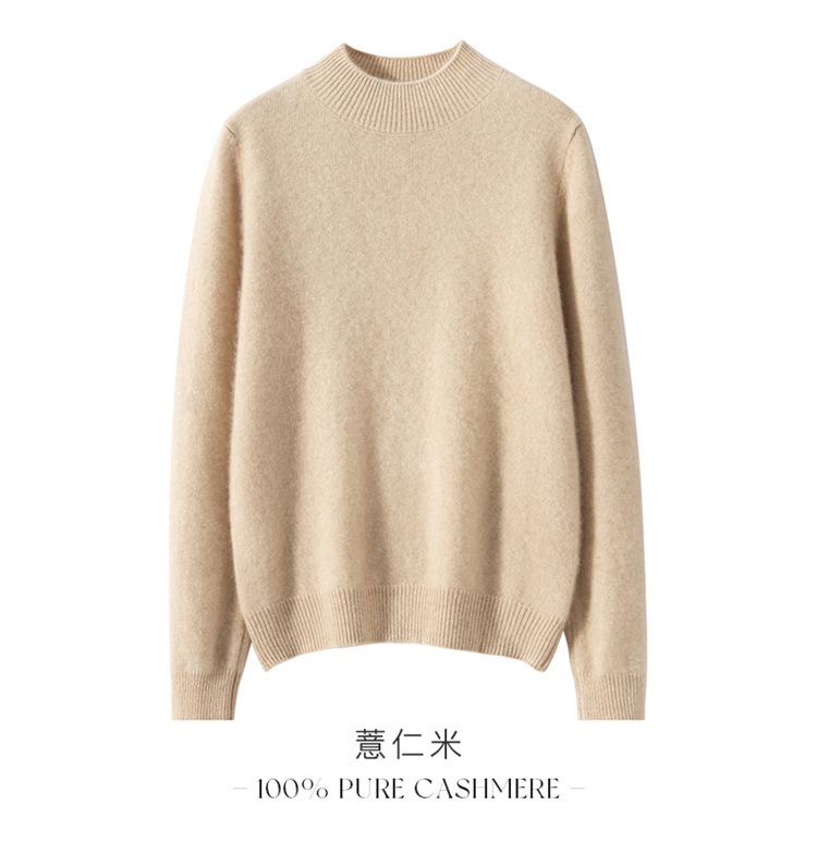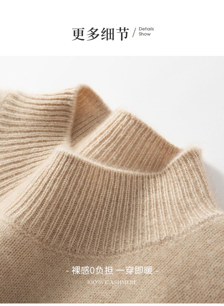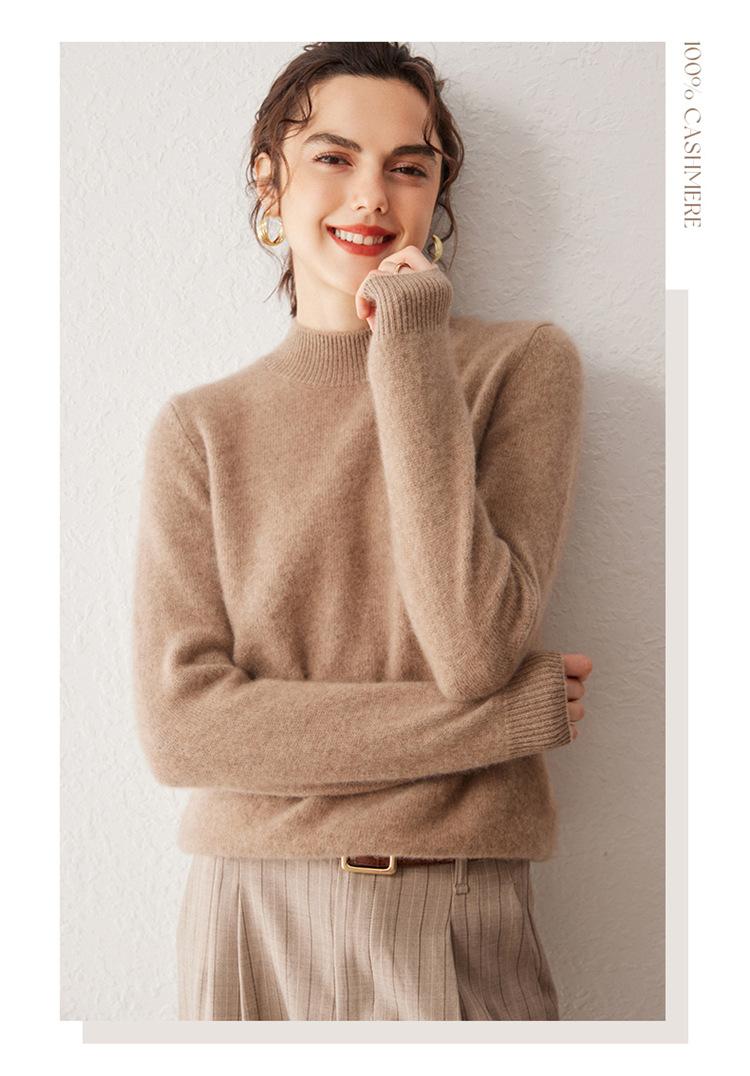 Suéter de Cachemira para Mujer Cuello Alto Medio 100 Cachemira Ligera Otoño e Invierno Nuevo Suéter Tejido Grueso de Manga Larga para Fondo
