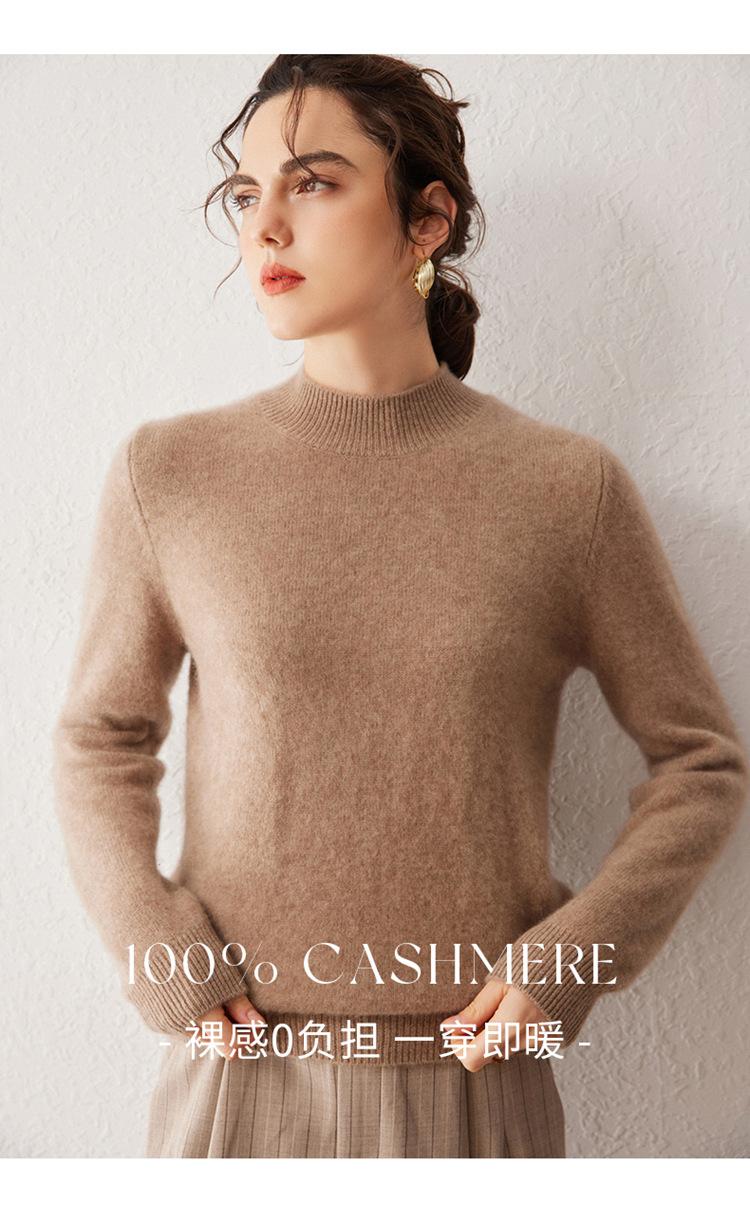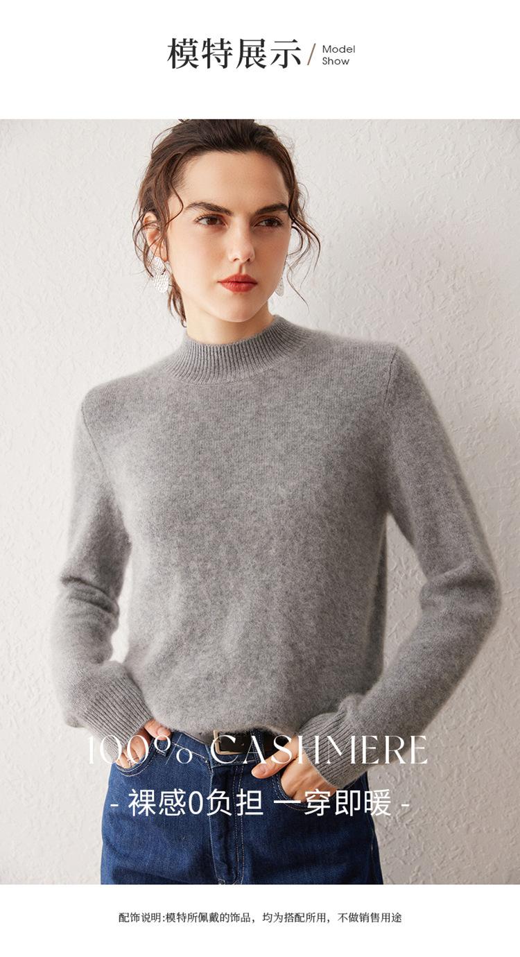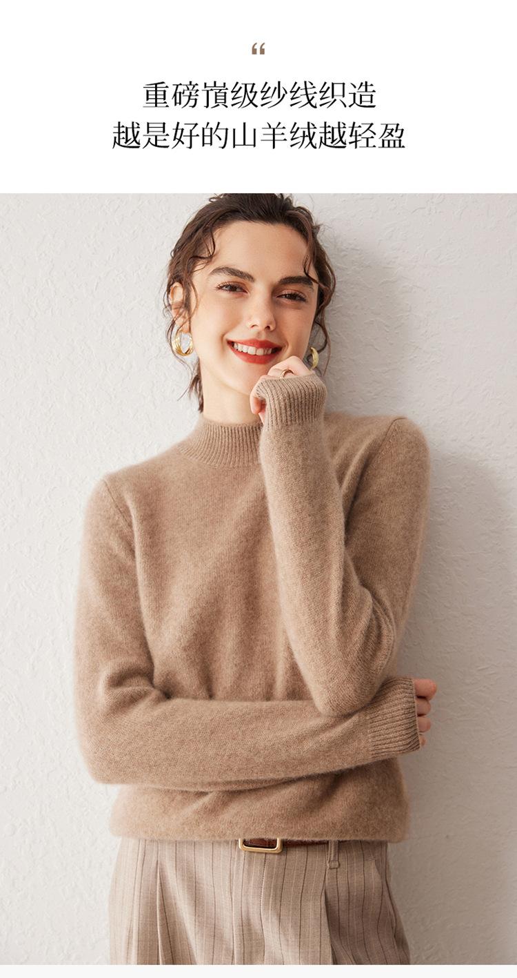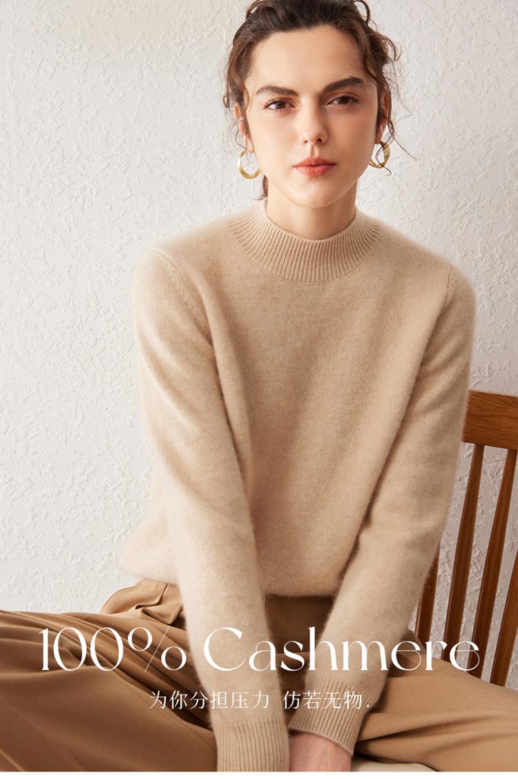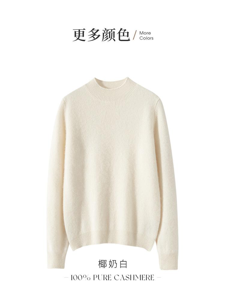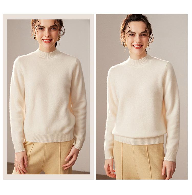 Suéter de Cachemira para Mujer Cuello Alto Medio 100 Cachemira Ligera Otoño e Invierno Nuevo Suéter Tejido Grueso de Manga Larga para Fondo