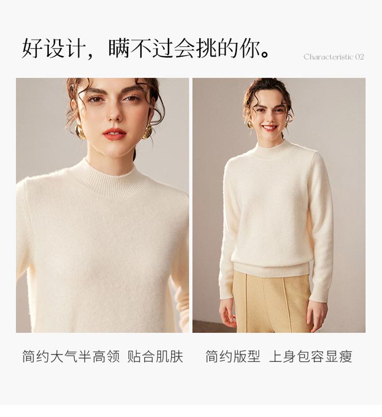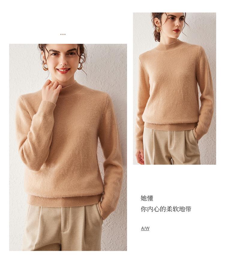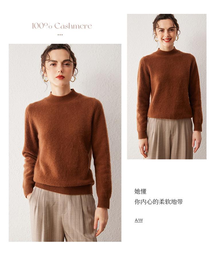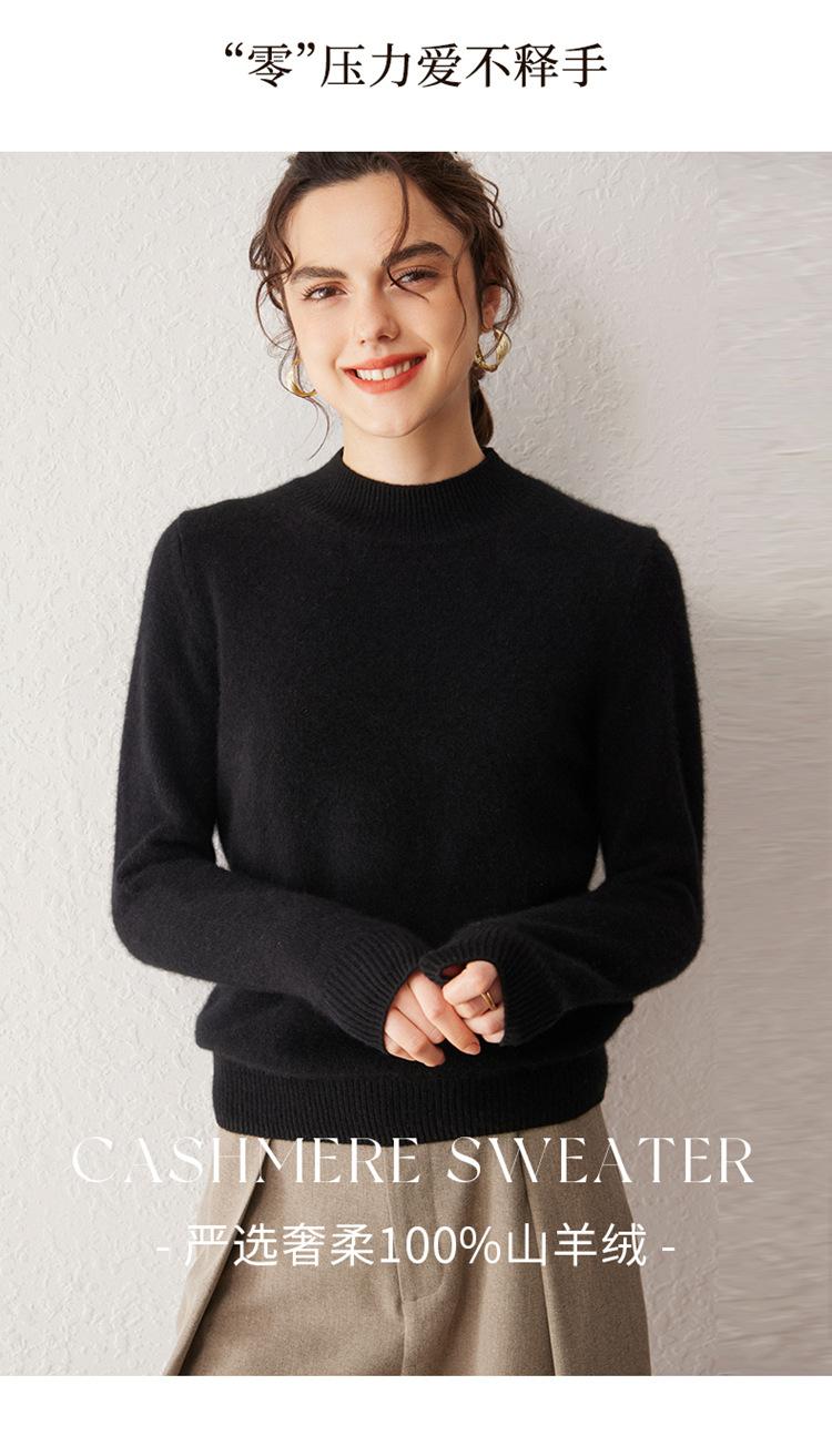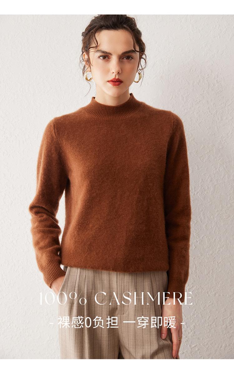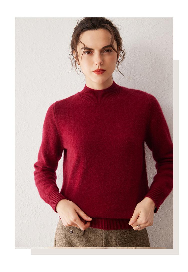 Suéter de Cachemira para Mujer Cuello Alto Medio 100 Cachemira Ligera Otoño e Invierno Nuevo Suéter Tejido Grueso de Manga Larga para Fondo