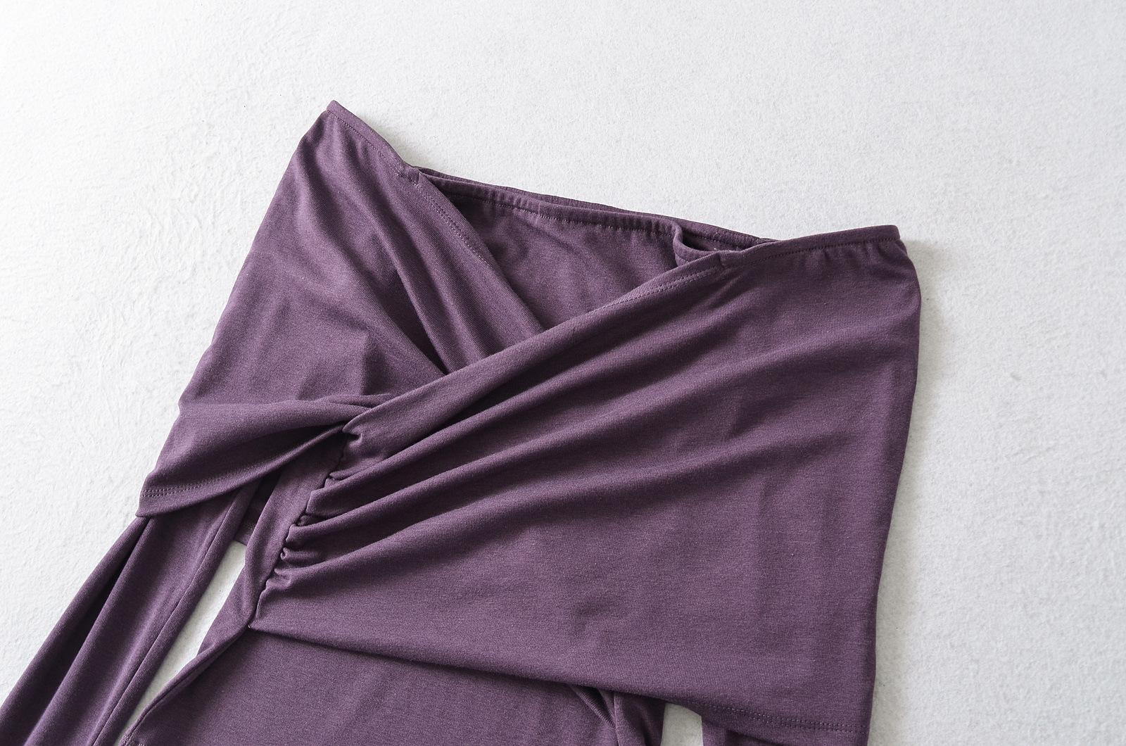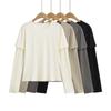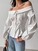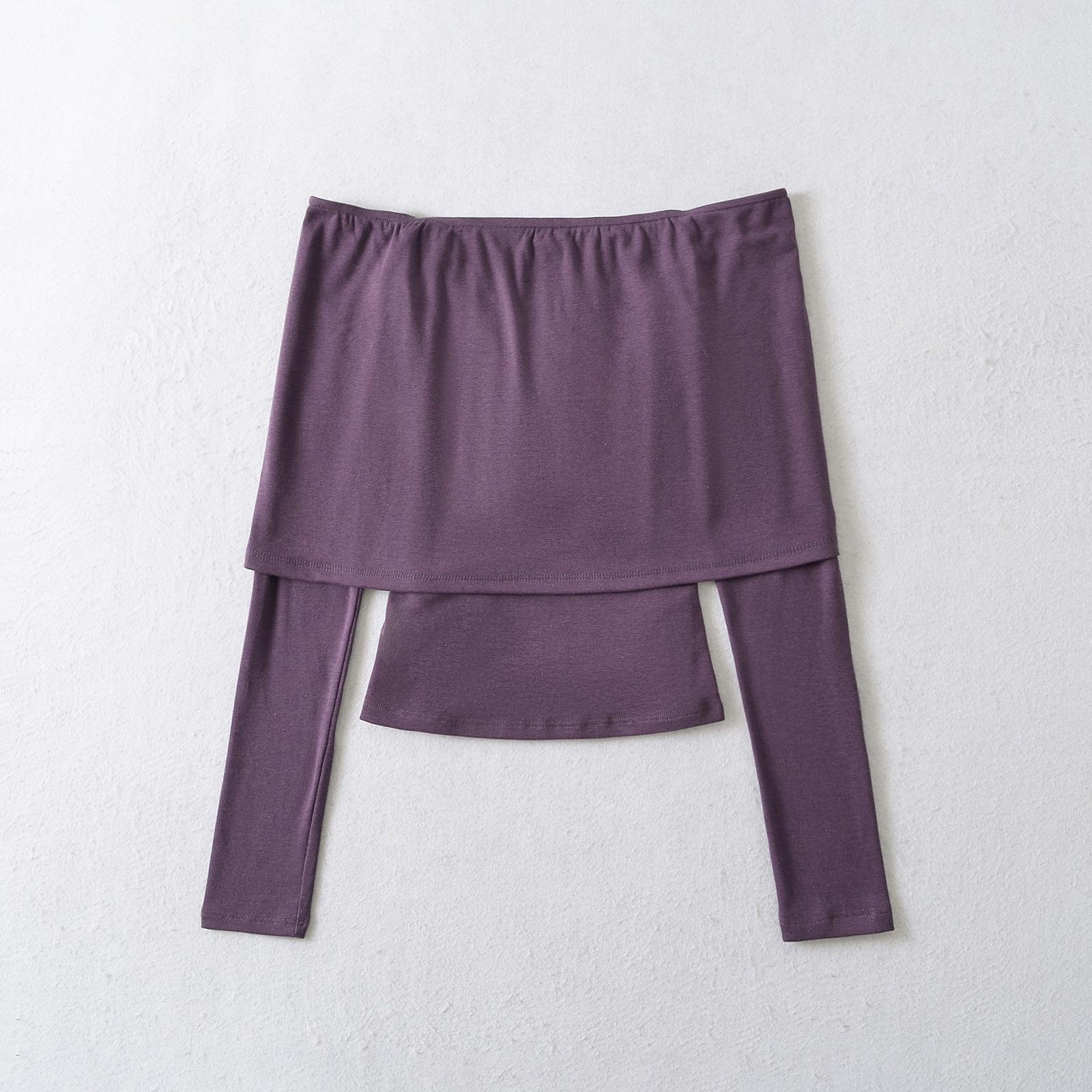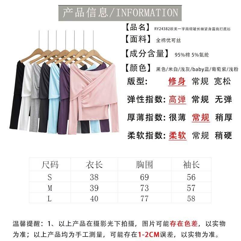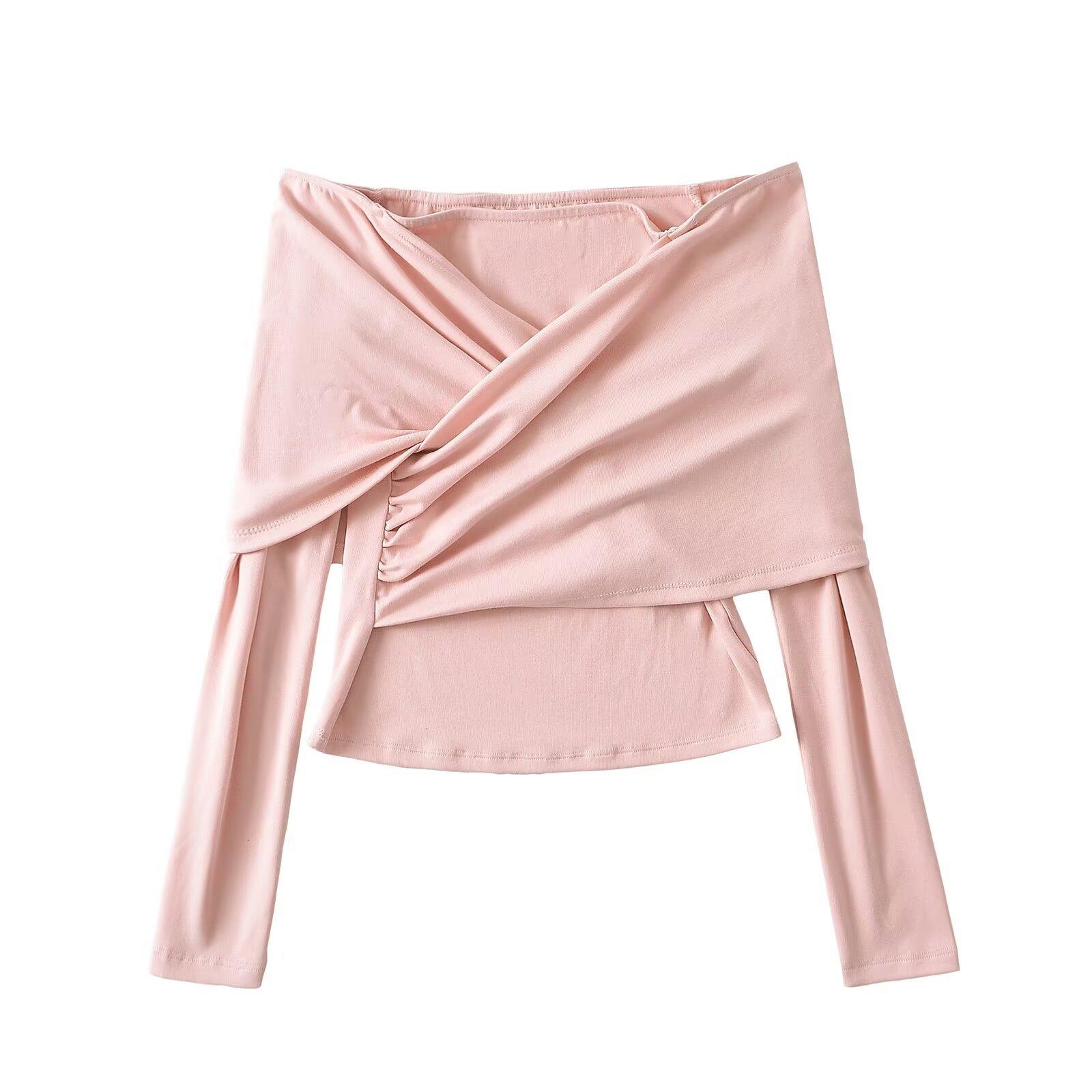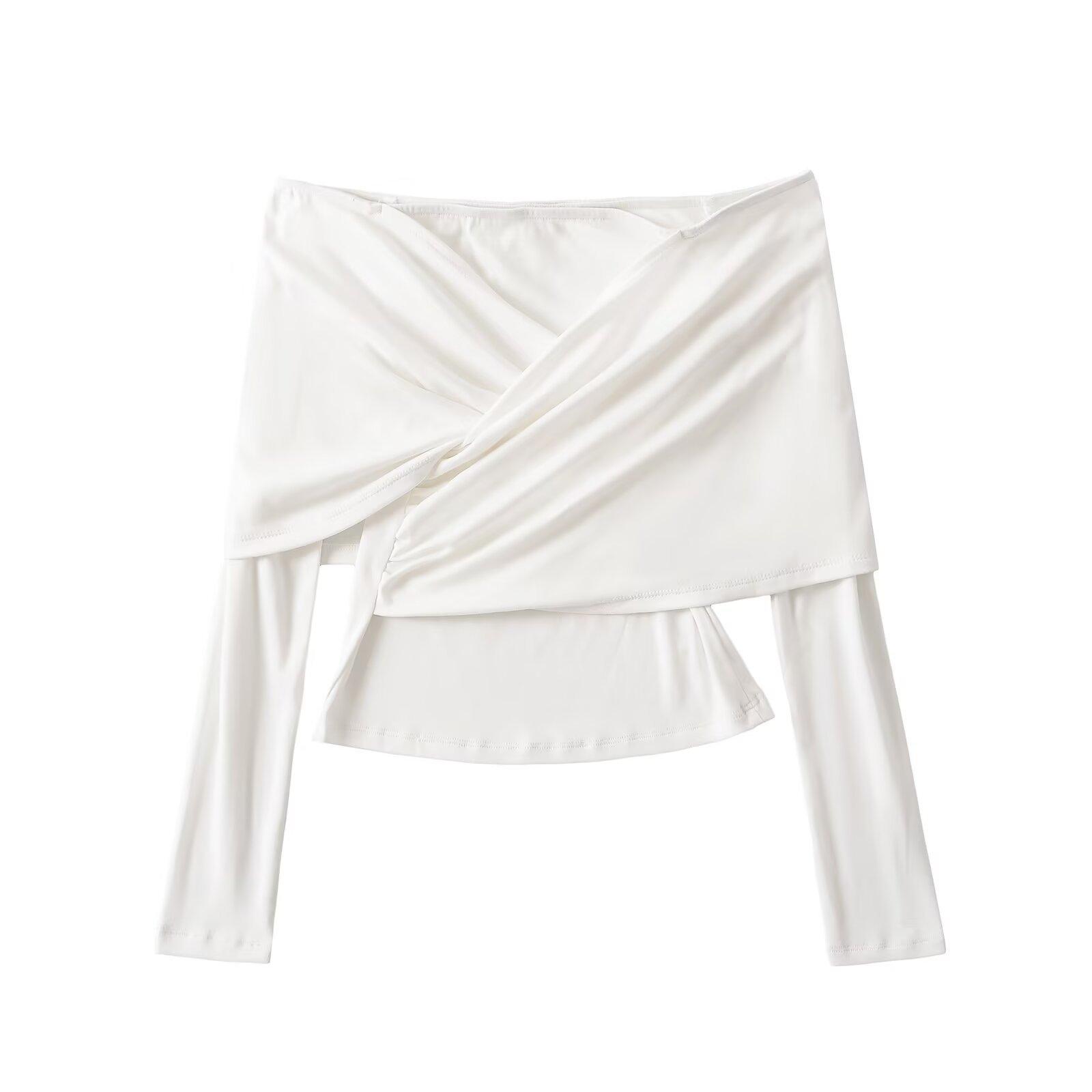 Camiseta ligera y sexy de estilo francés para mujer, estilo maduro, con hombros descubiertos, primavera 2025. Top cruzado plisado de manga larga para mujer.