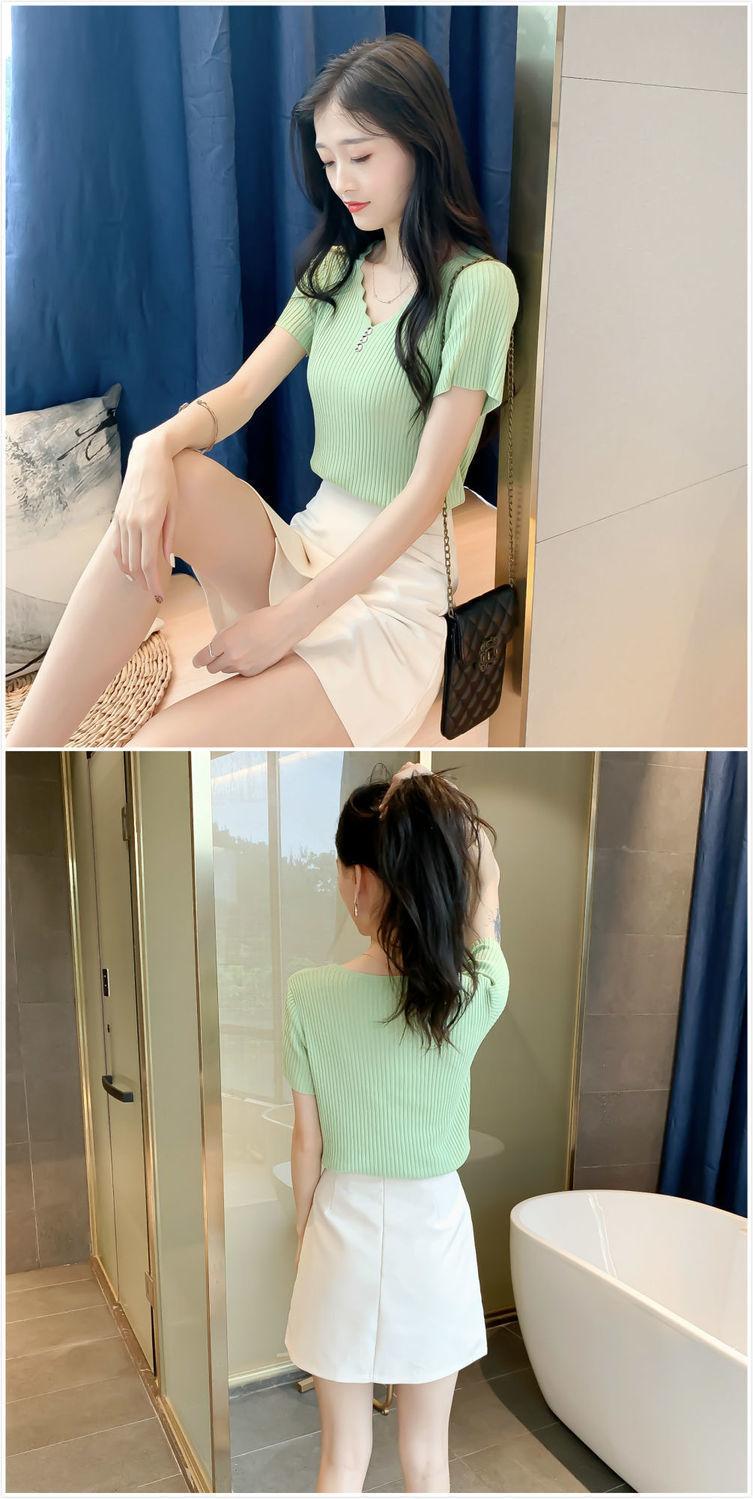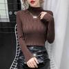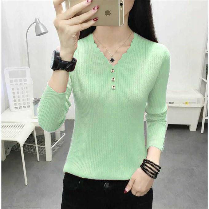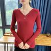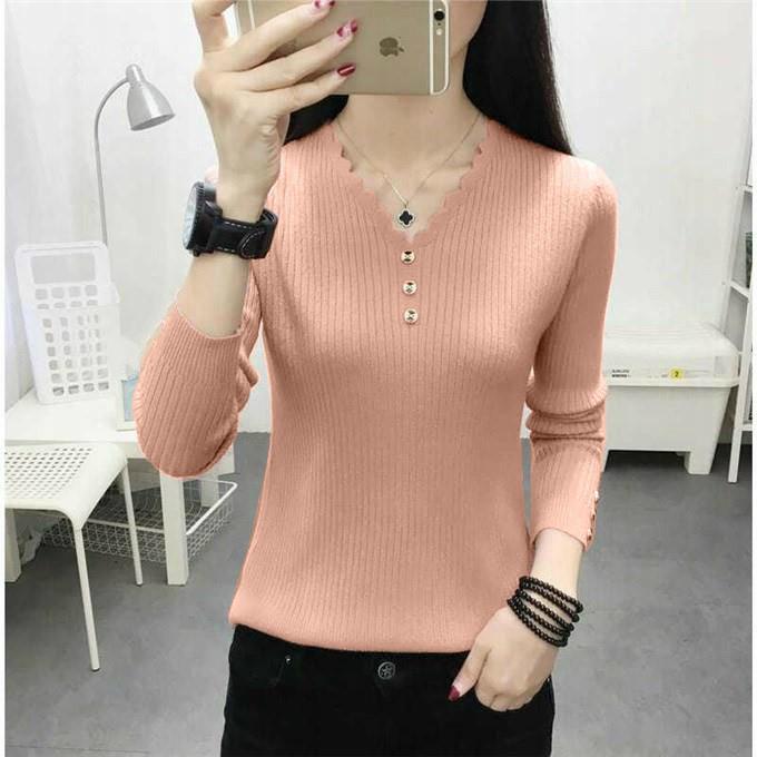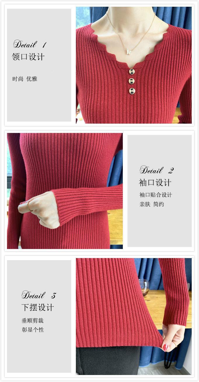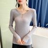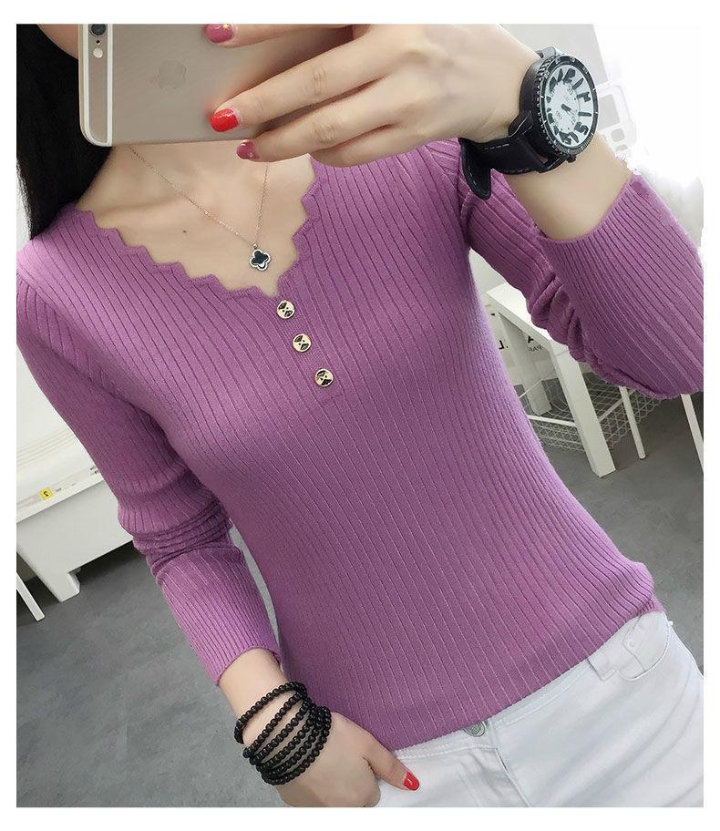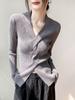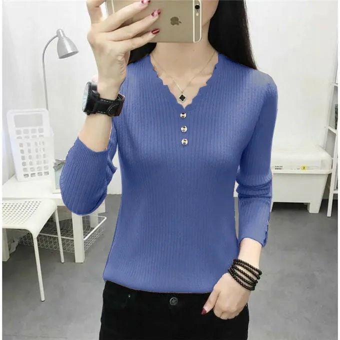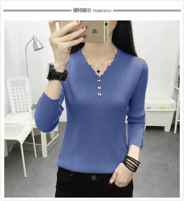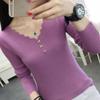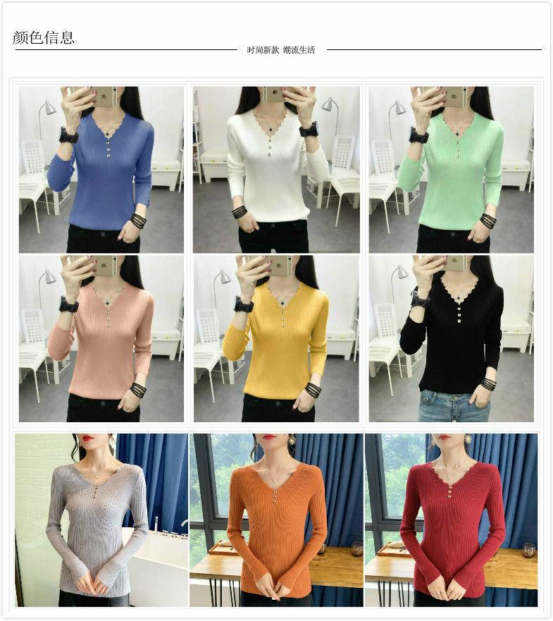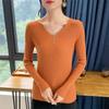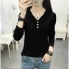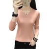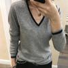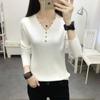 Suéter Blanco de Otoño e Invierno para Mujer Nuevo Cuello en V Versátil Jersey de Manga Larga para Interior Top