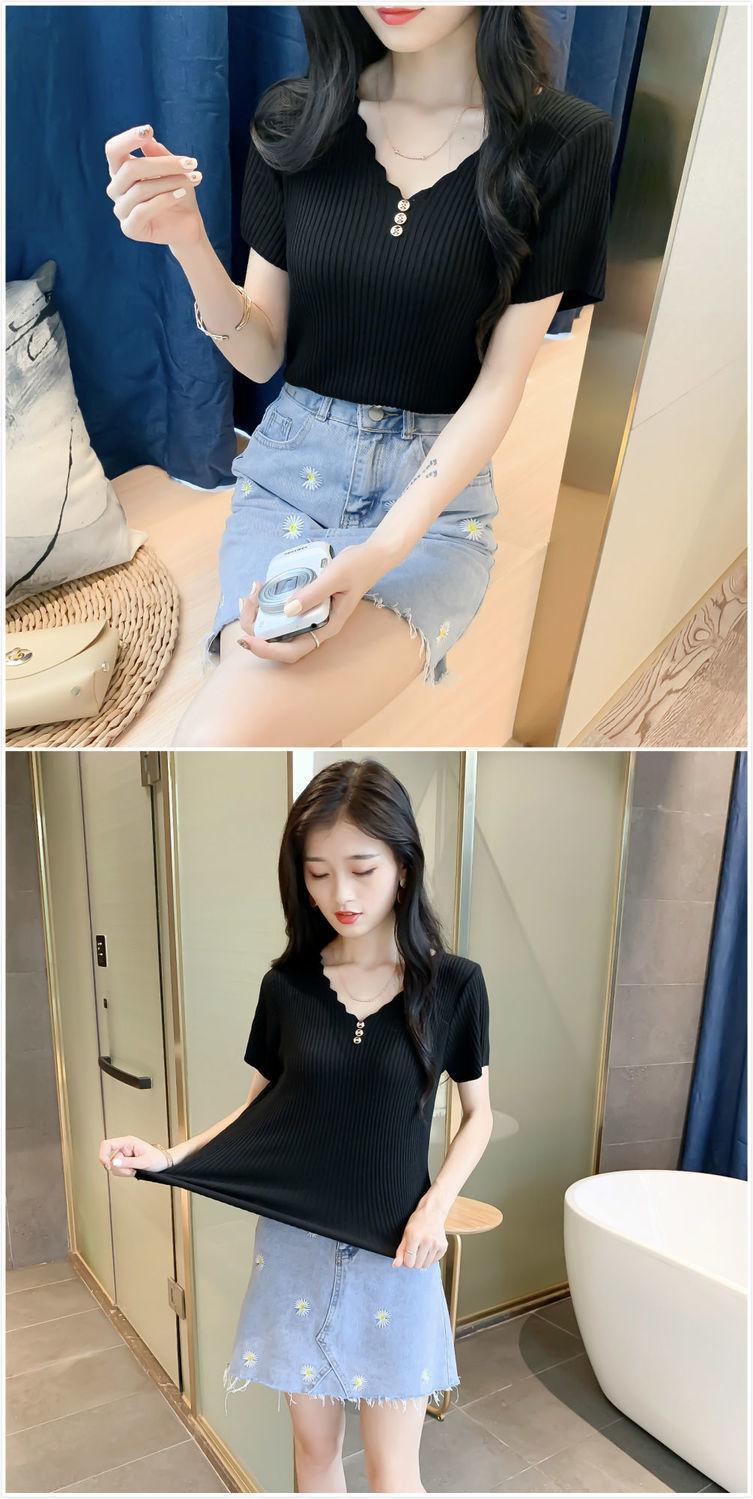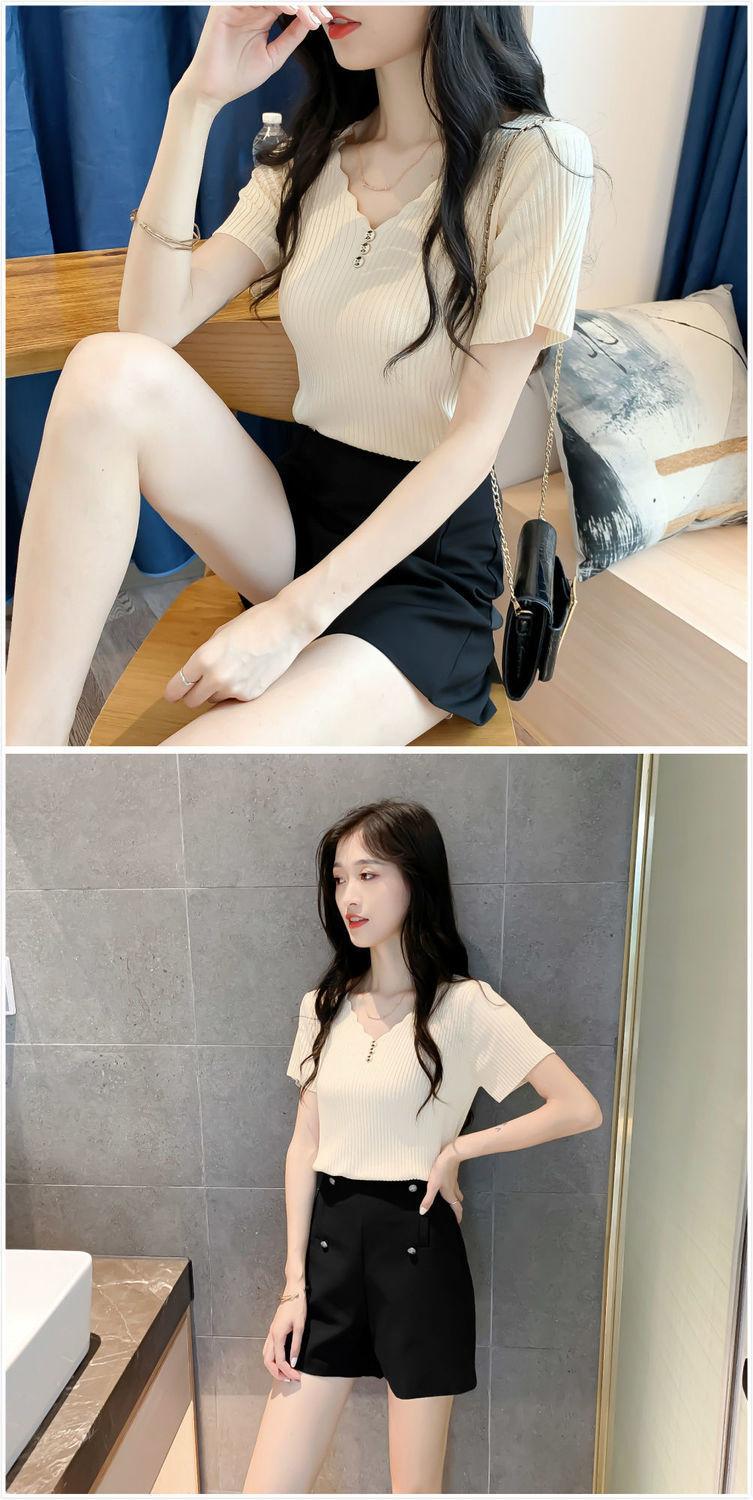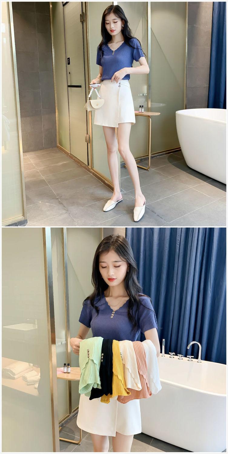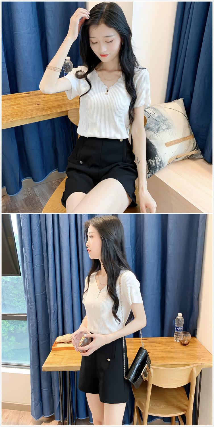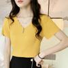 Suéter Blanco de Otoño e Invierno para Mujer Nuevo Cuello en V Versátil Jersey de Manga Larga para Interior Top