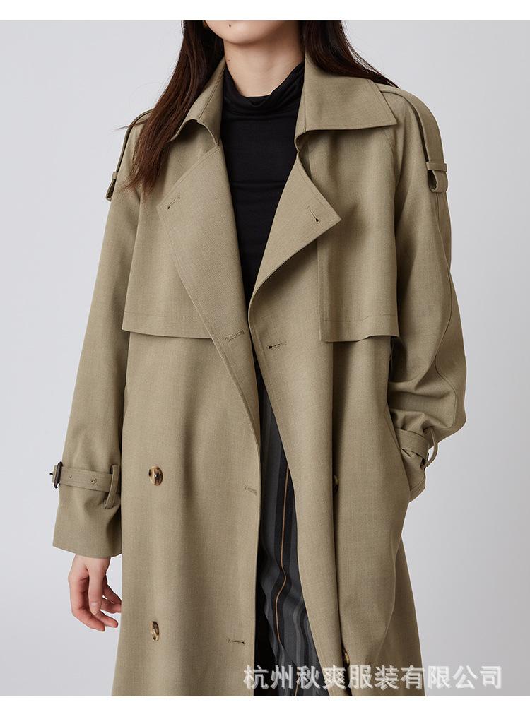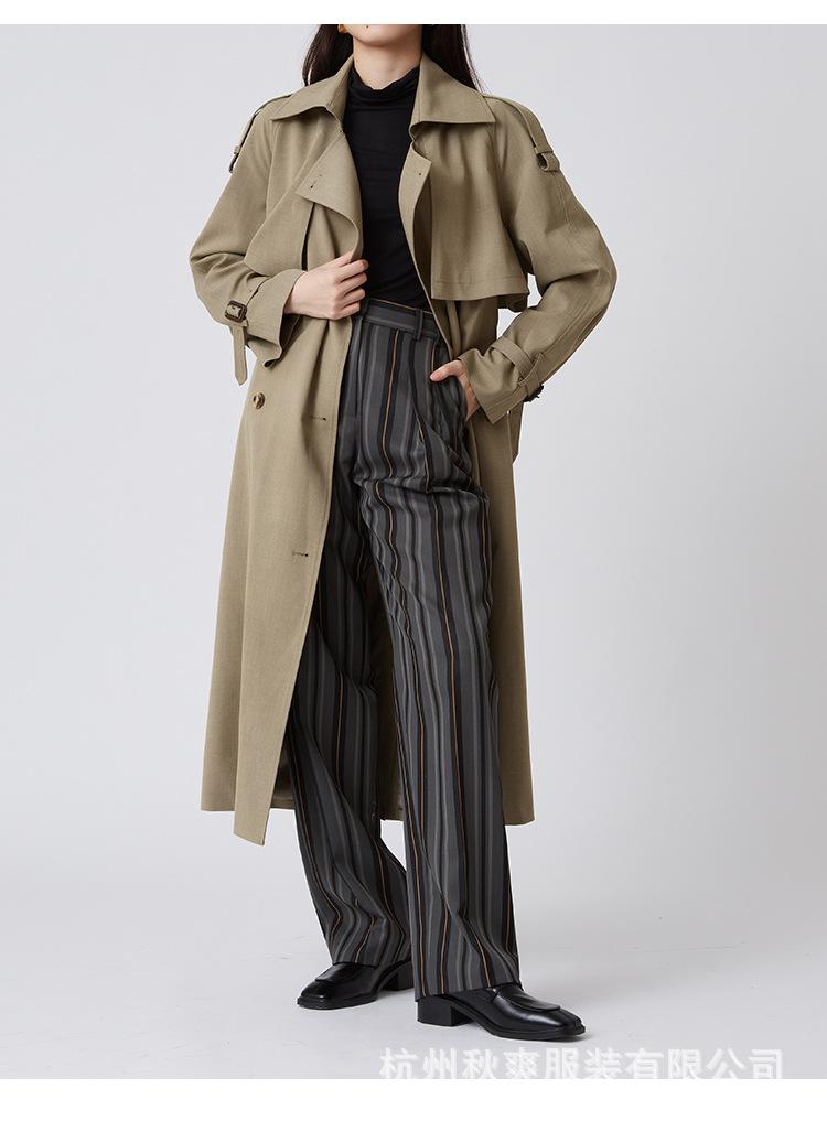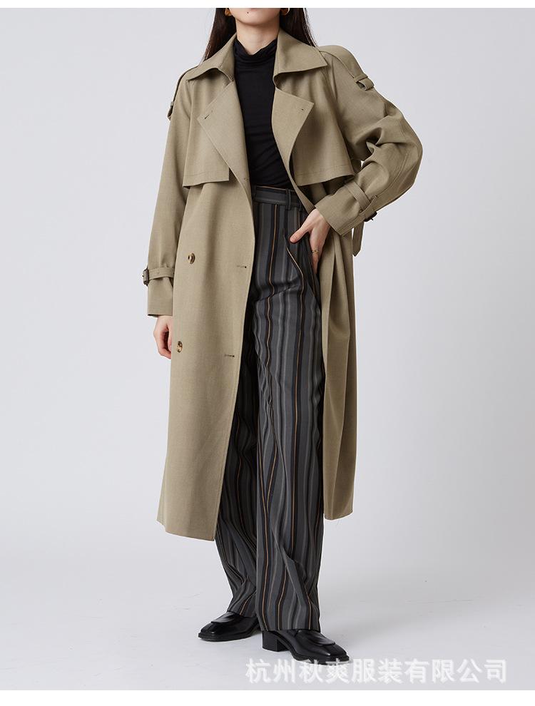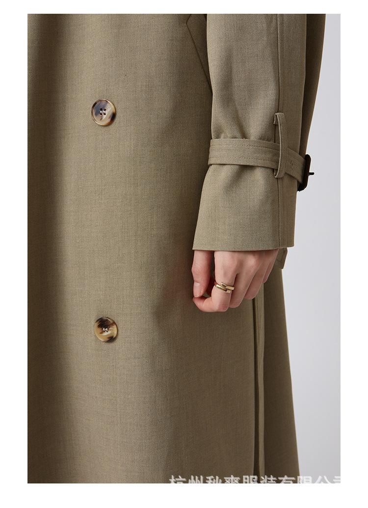 Abrigo Trench de Otoño Nuevo para Mujer Clásico Versátil Doble Botonadura Solapa Ceñido a la Cintura Abrigo Trench Estilo Británico Largo Medio con Cordones Abrigo Elegante