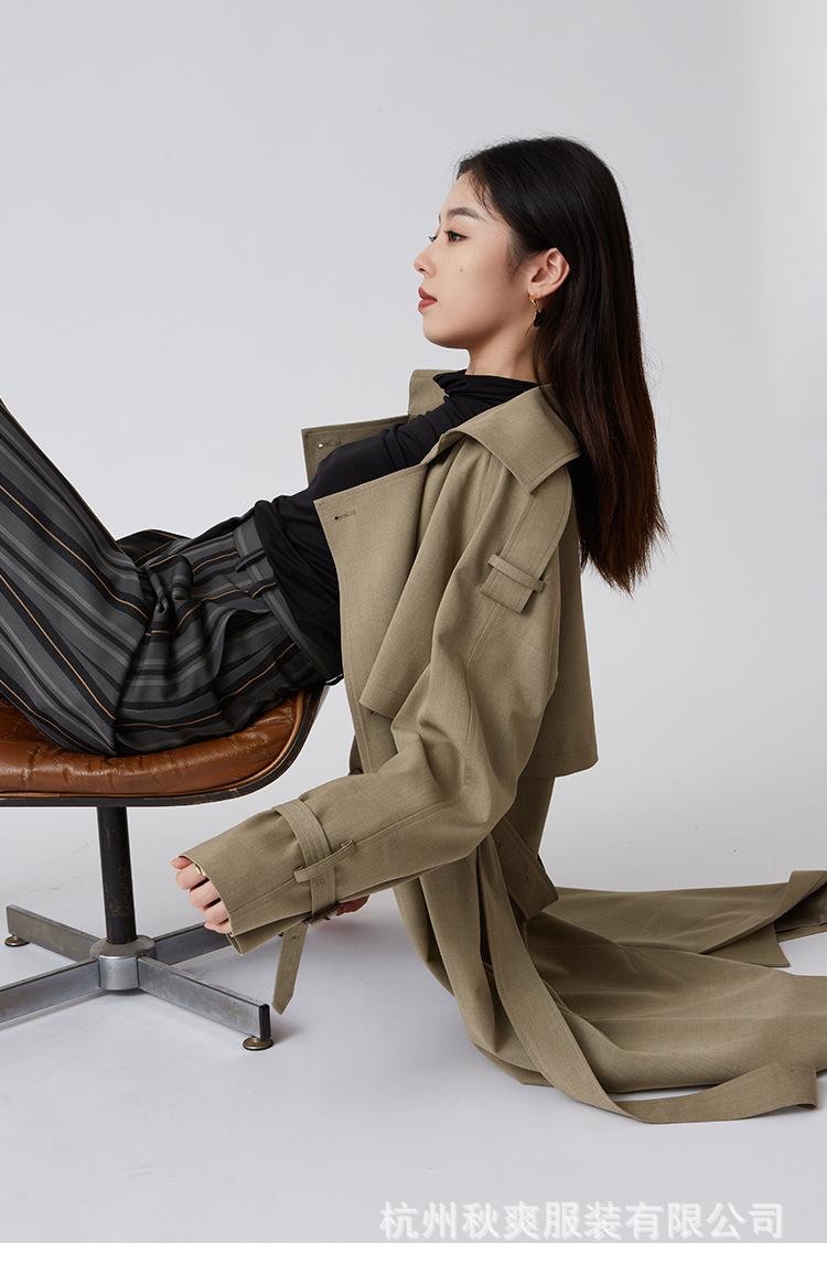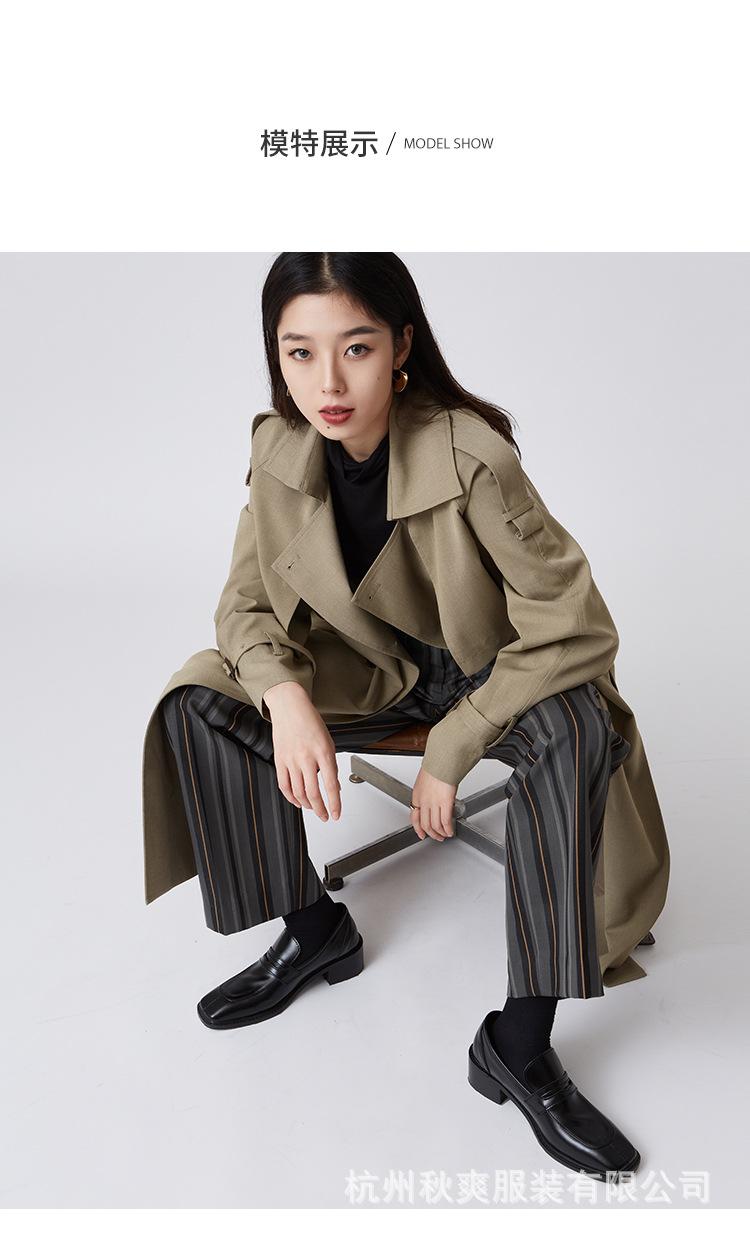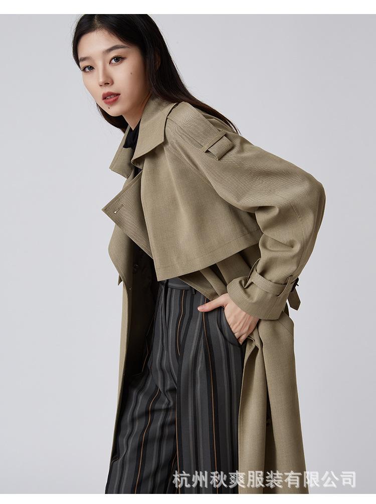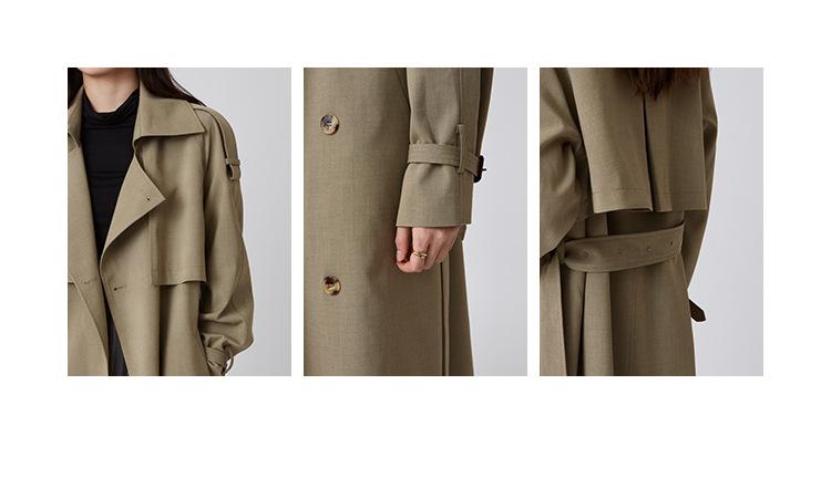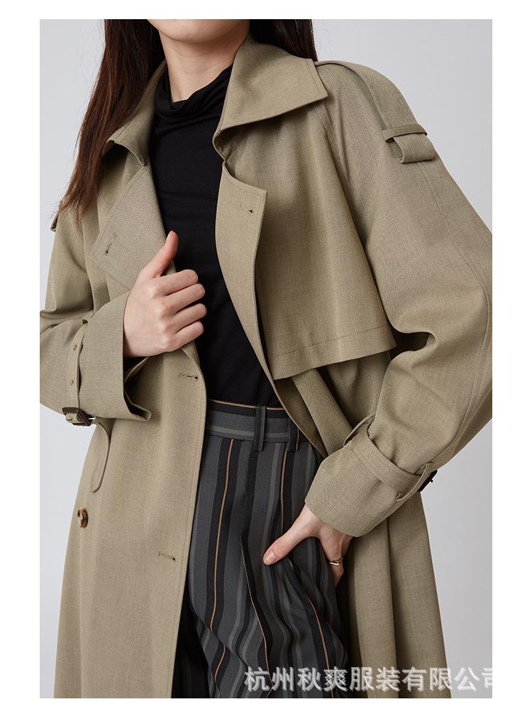 Abrigo Trench de Otoño Nuevo para Mujer Clásico Versátil Doble Botonadura Solapa Ceñido a la Cintura Abrigo Trench Estilo Británico Largo Medio con Cordones Abrigo Elegante
