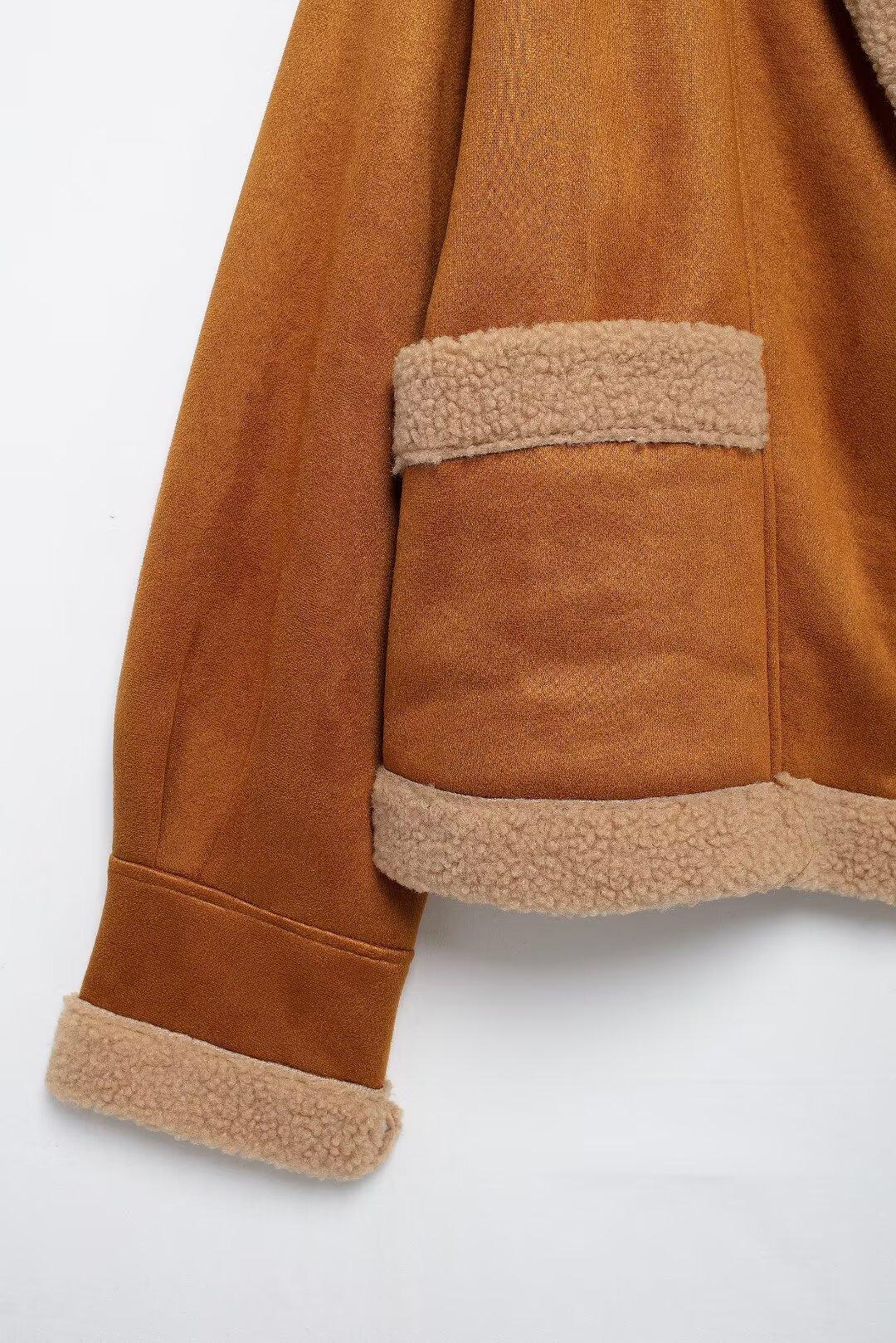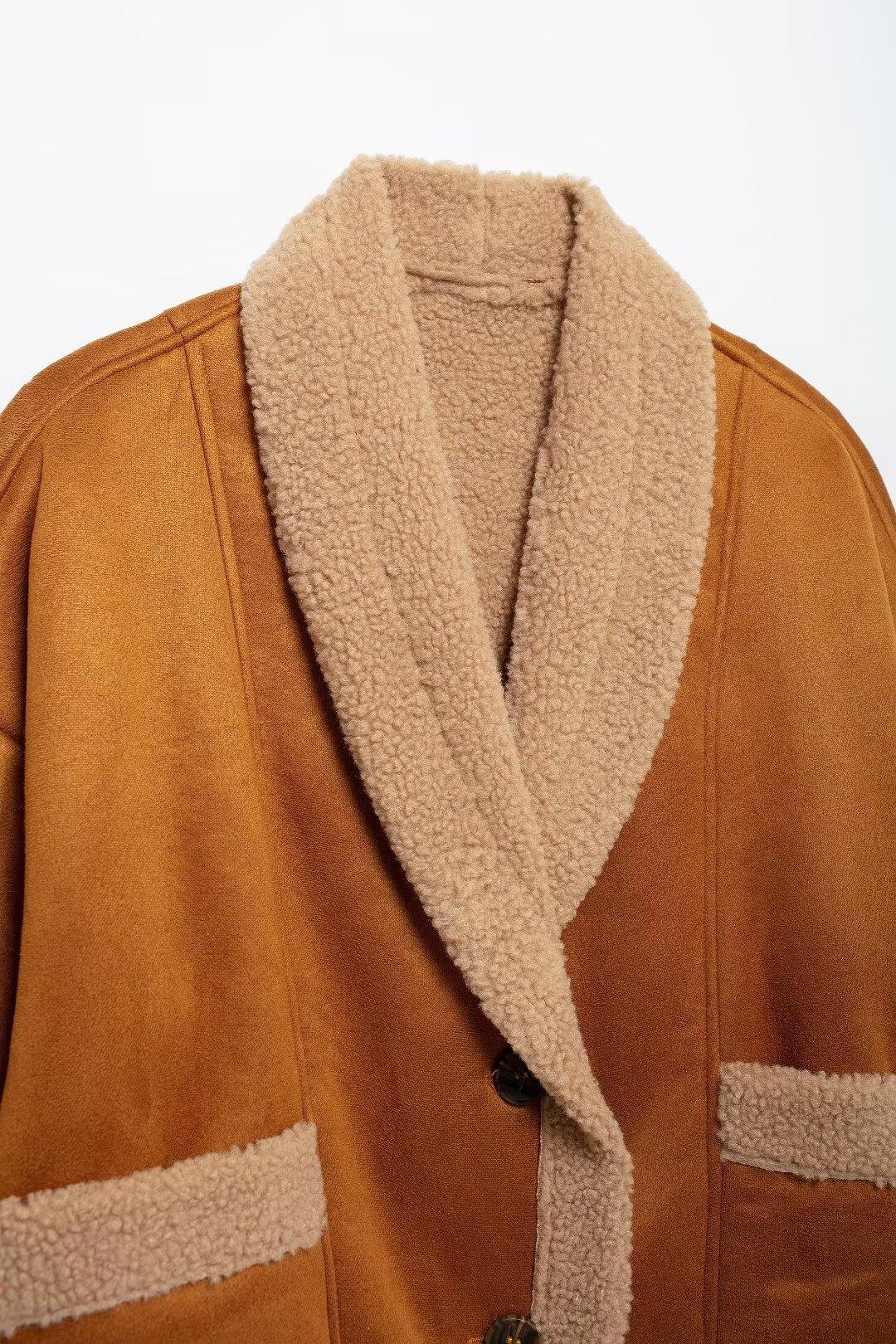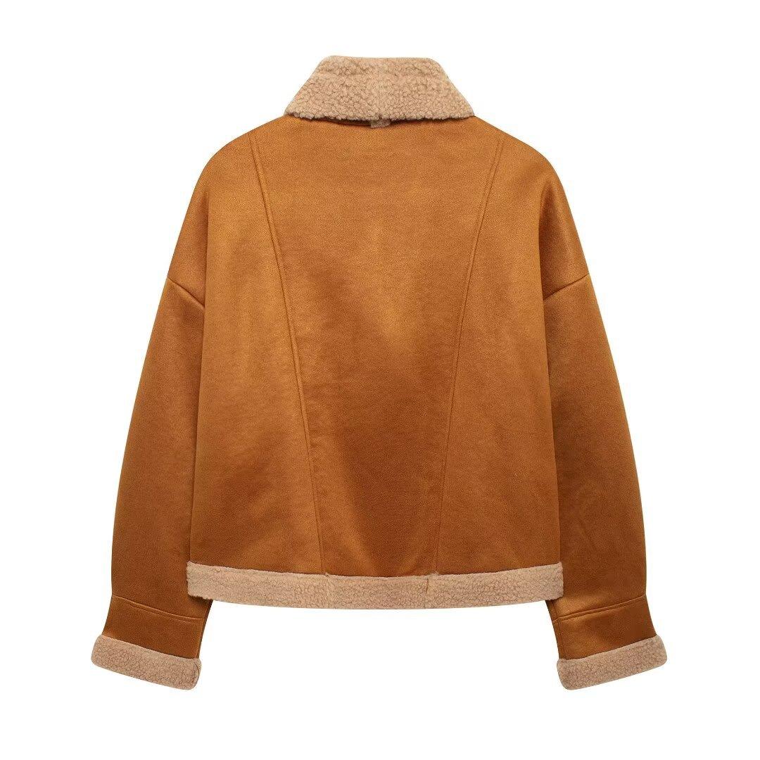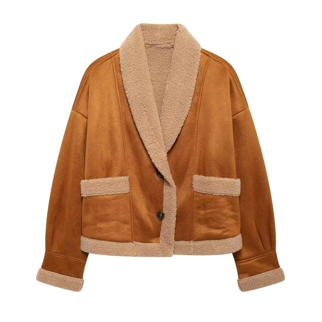 Comercio Exterior Mujer 2024 Otoño Nuevo Transfronterizo Estilo Europeo y Americano Suelto Piel Una Pieza Solapa Sentido del Diseño Chaqueta Americana
