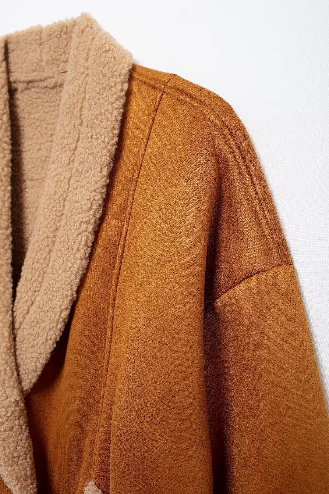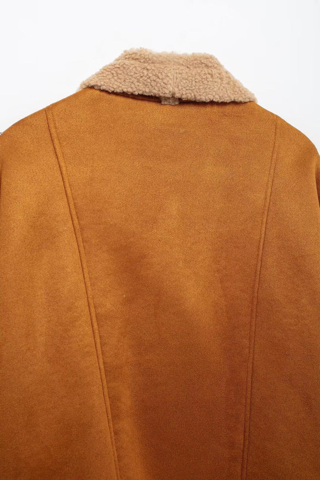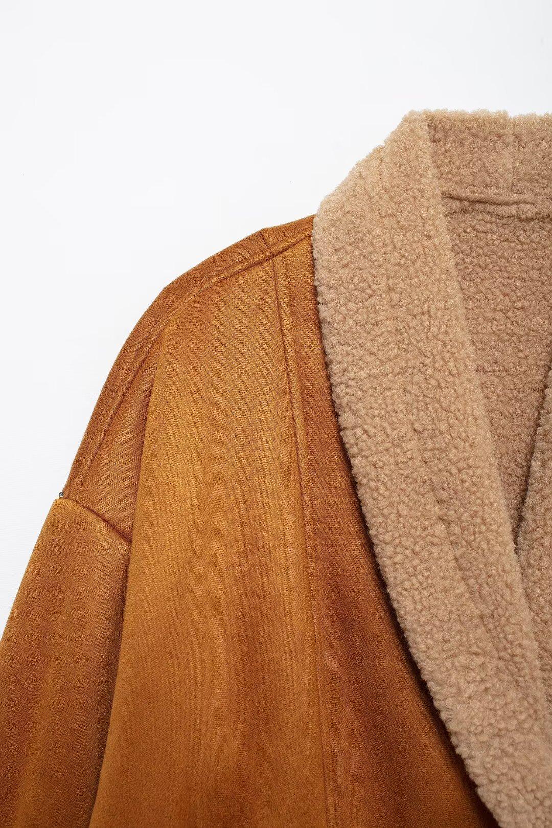 Comercio Exterior Mujer 2024 Otoño Nuevo Transfronterizo Estilo Europeo y Americano Suelto Piel Una Pieza Solapa Sentido del Diseño Chaqueta Americana