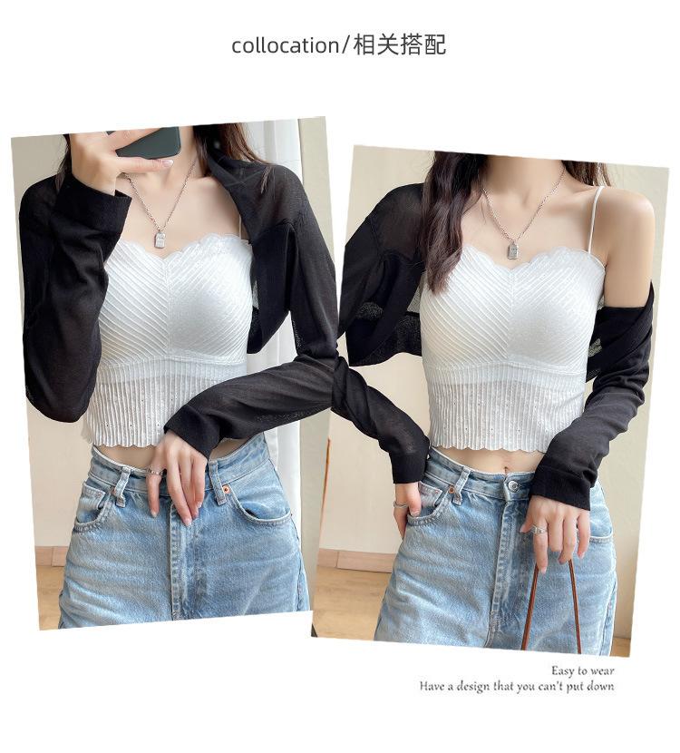 | Chaleco de punto para mujer 2024, nuevo estilo, ropa interior que cubre la carne, tirantes, cuello de encaje versátil, parte inferior, escote en U, top sin mangas, ropa exterior |