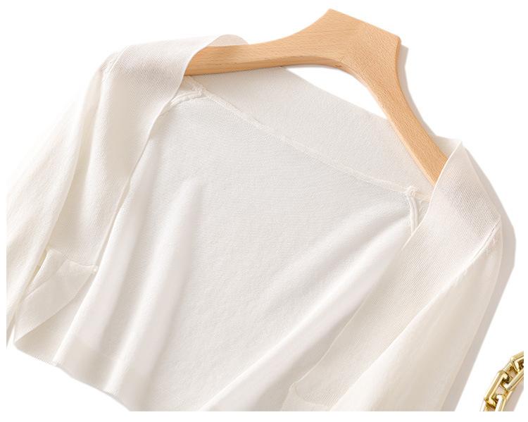| Camisa de traje para mujer, camisola de seda de hielo en blanco y negro con cuello en V, suéter de punto sin mangas de verano, ropa exterior |
