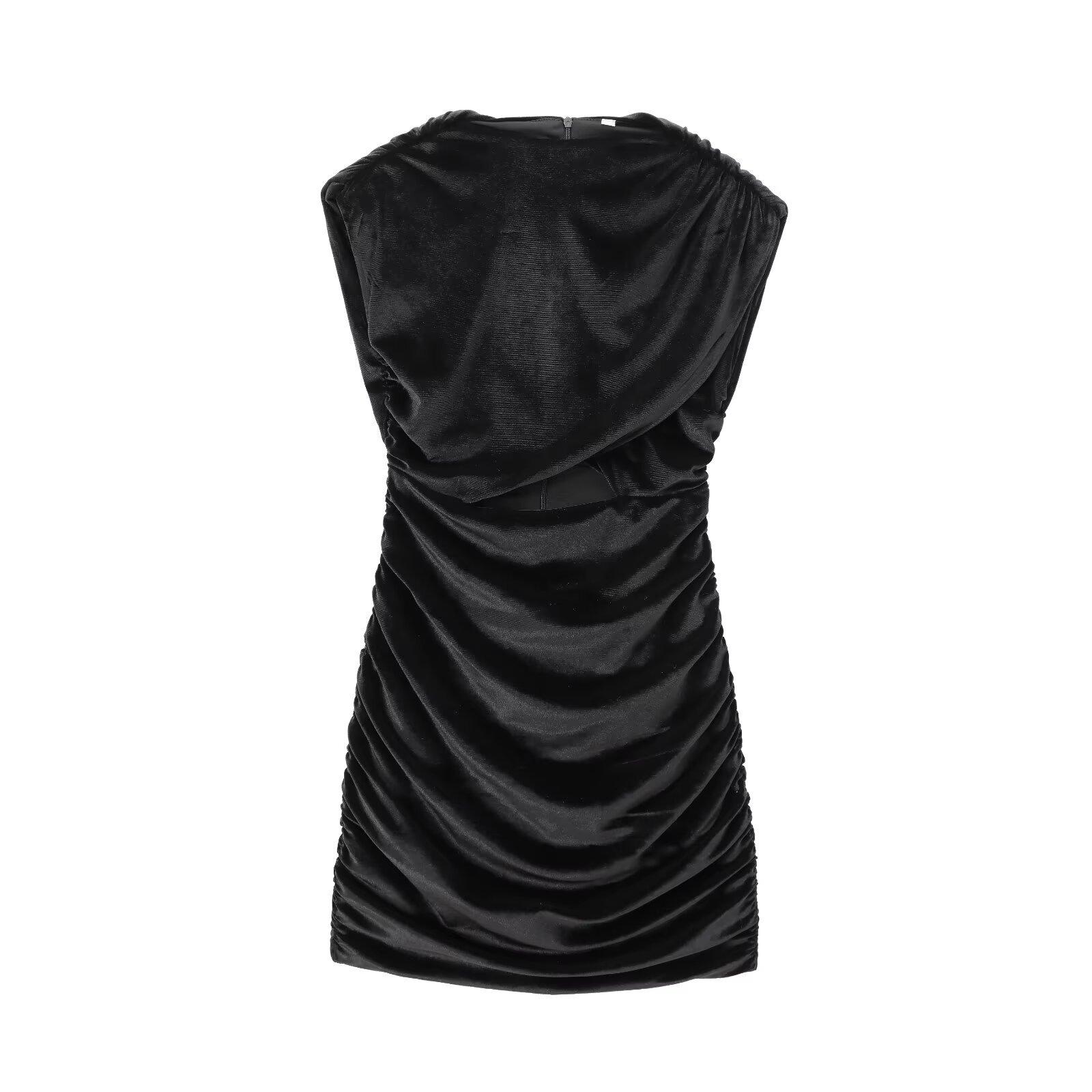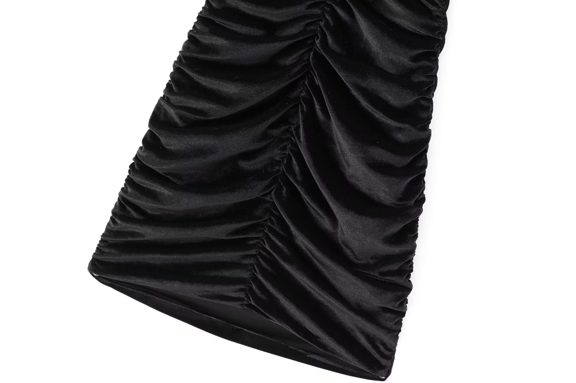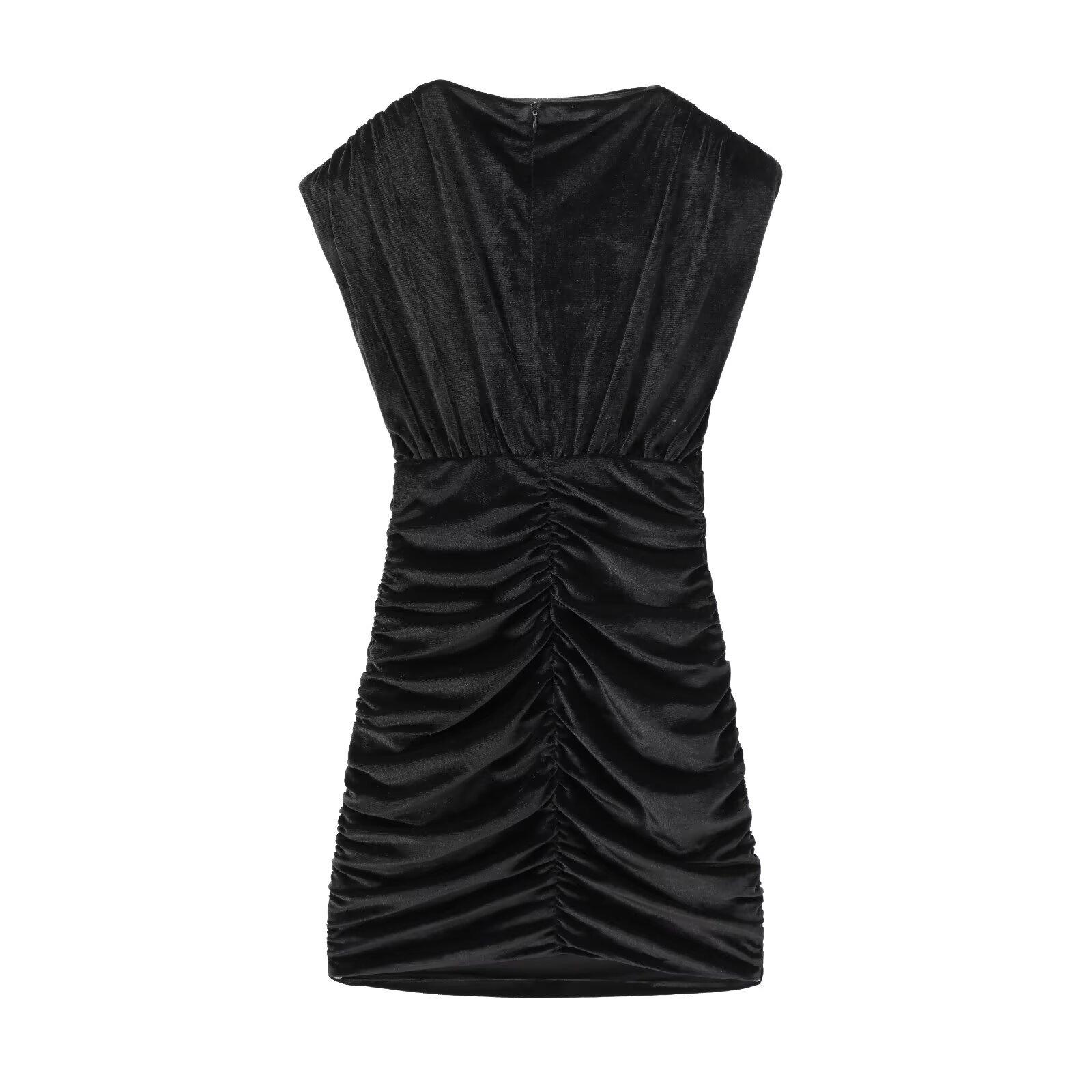 Vestido de terciopelo negro sexy con caderas ajustadas y plisadas nuevo 2024 para mujer, comercio exterior transfronterizo entre Europa y Estados Unidos