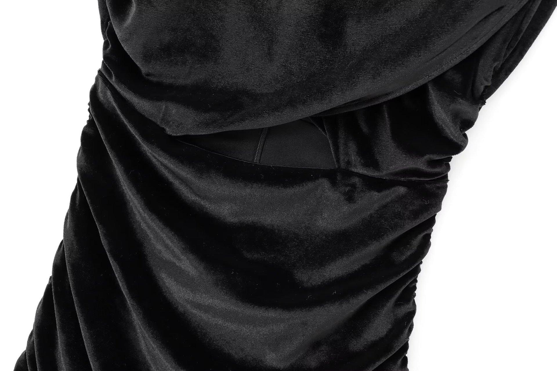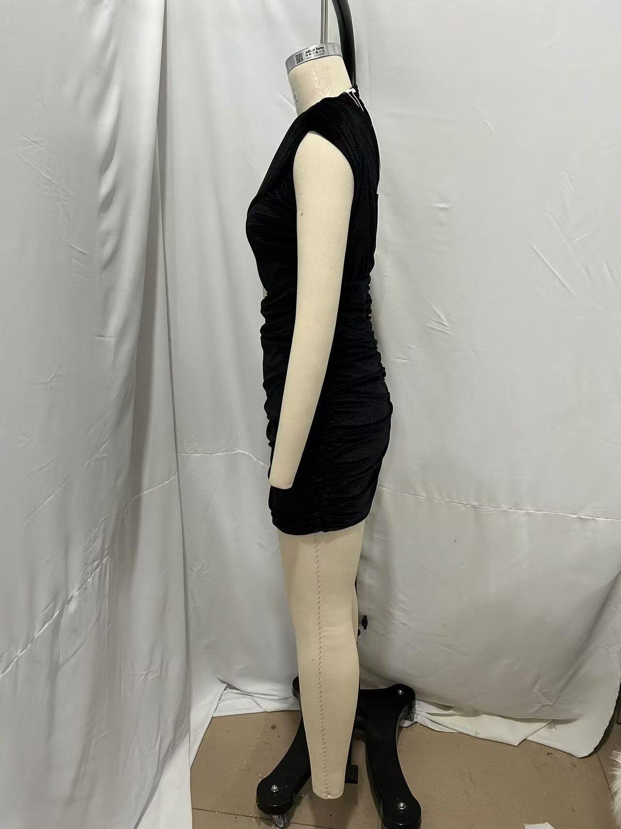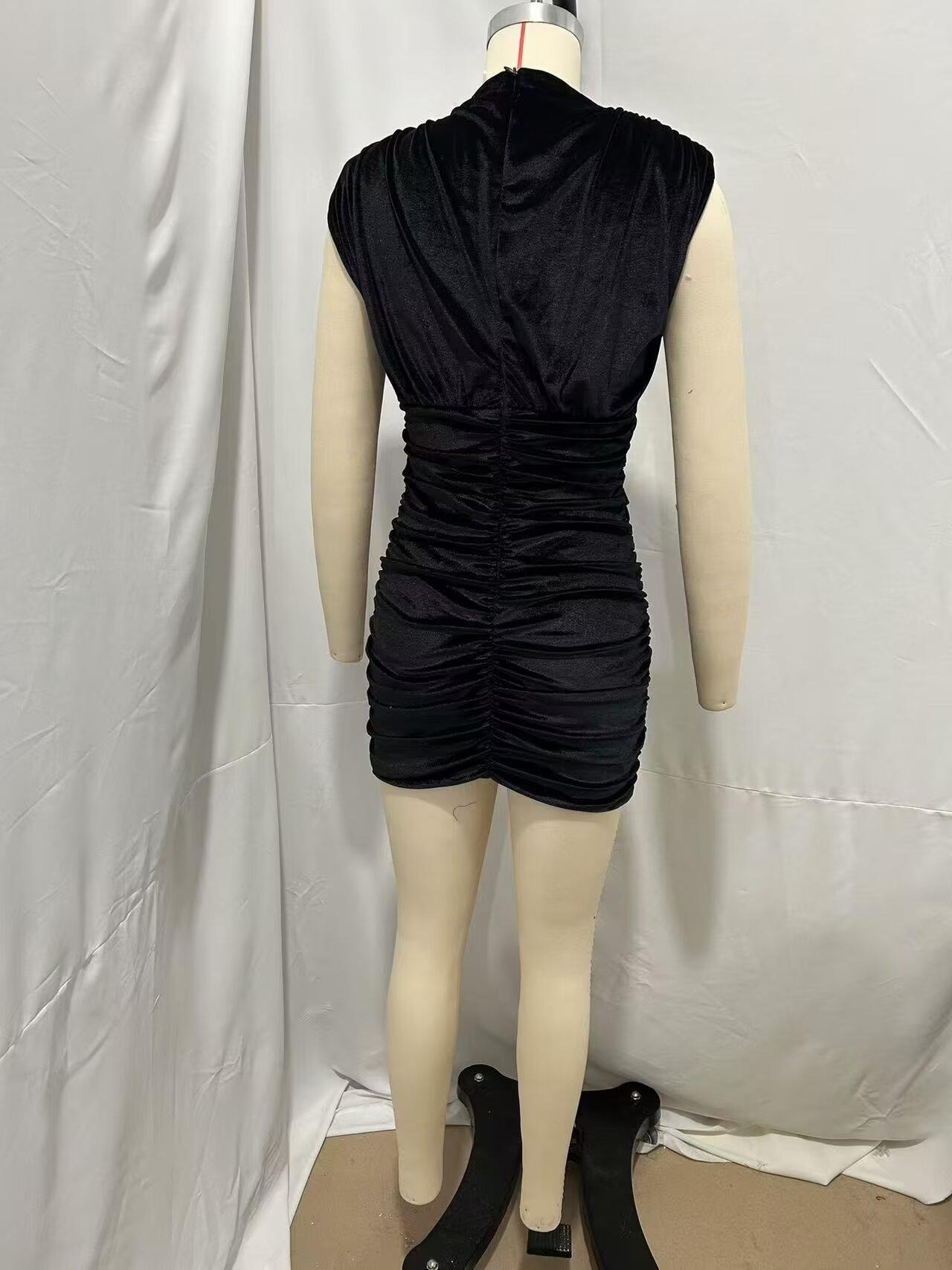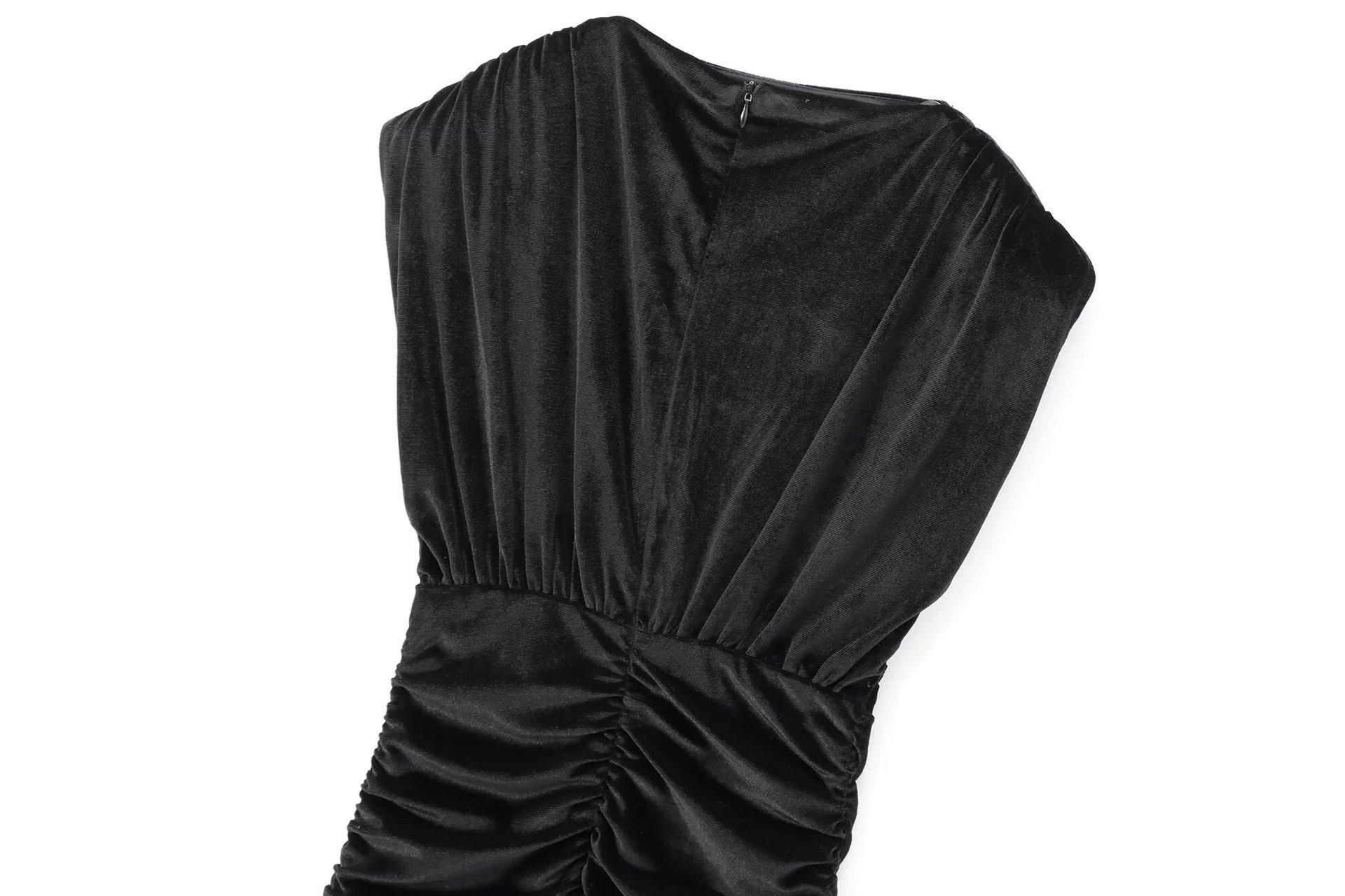 Vestido de terciopelo negro sexy con caderas ajustadas y plisadas nuevo 2024 para mujer, comercio exterior transfronterizo entre Europa y Estados Unidos