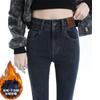 Pantalones vaqueros ajustados azul grisáceos para mujer, otoño e invierno 2024, cintura alta, ajustados, forrados de polar