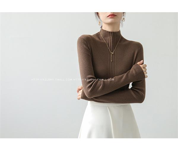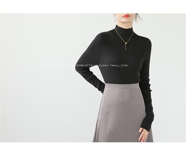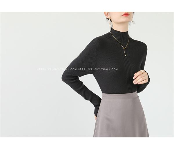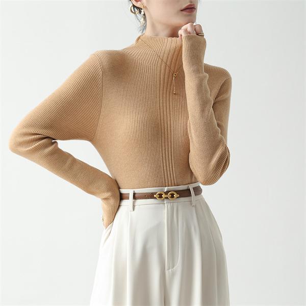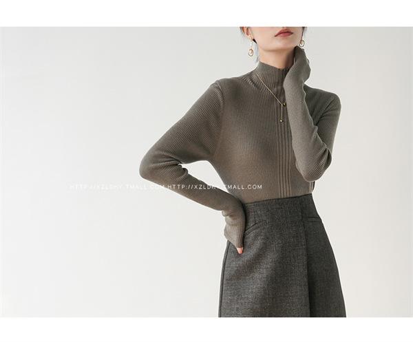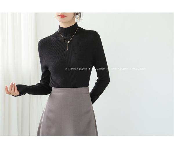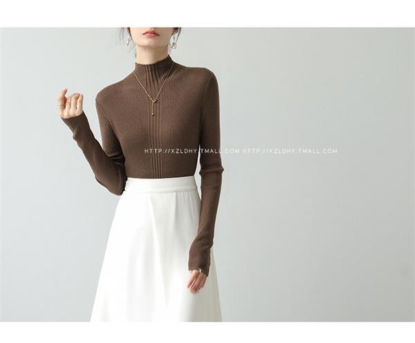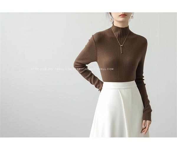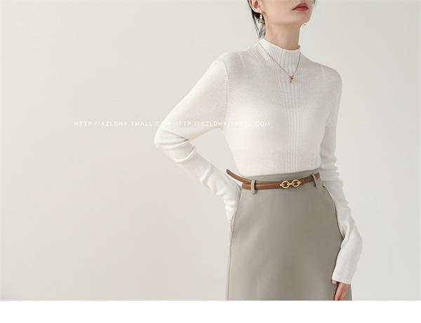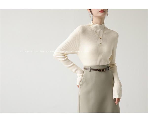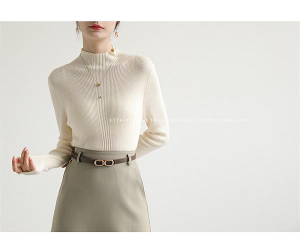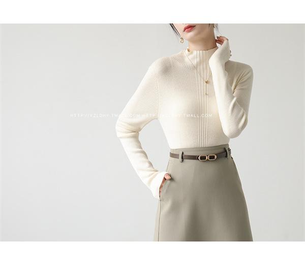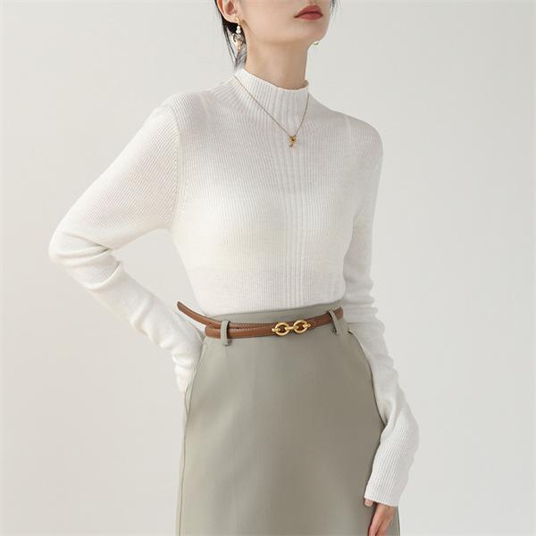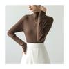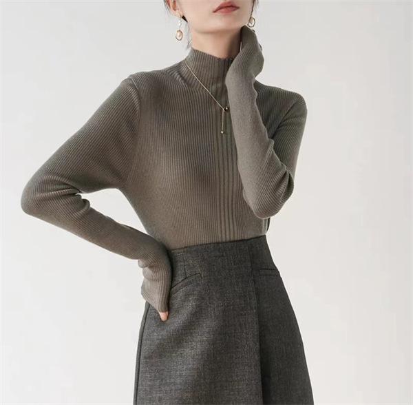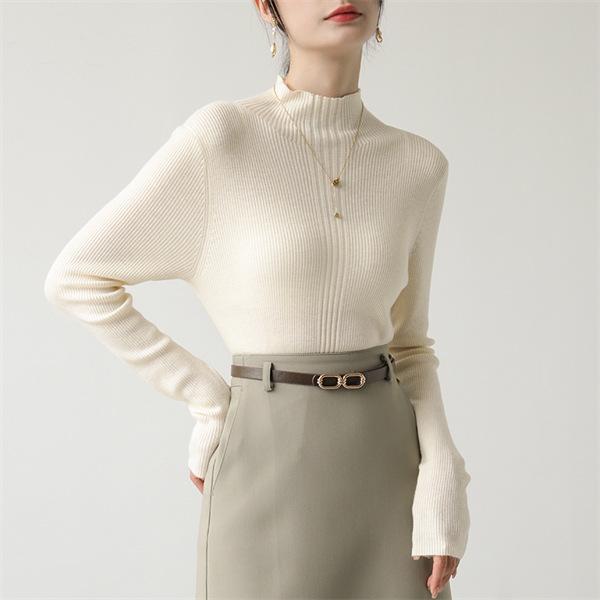 Otoño 2025 suéter francés suéter de mujer otoño e invierno nuevo albaricoque manga larga jersey cuello medio alto camisa base